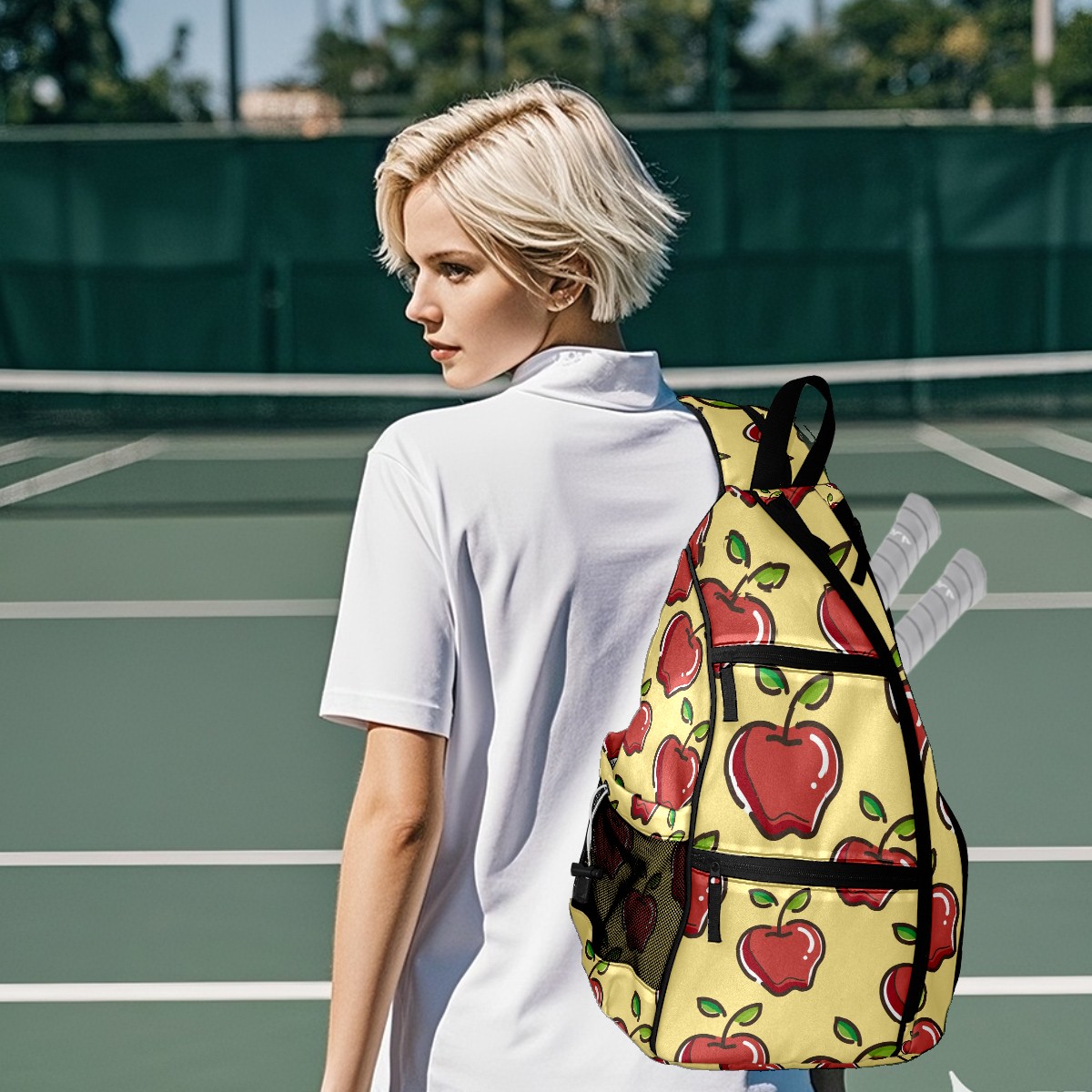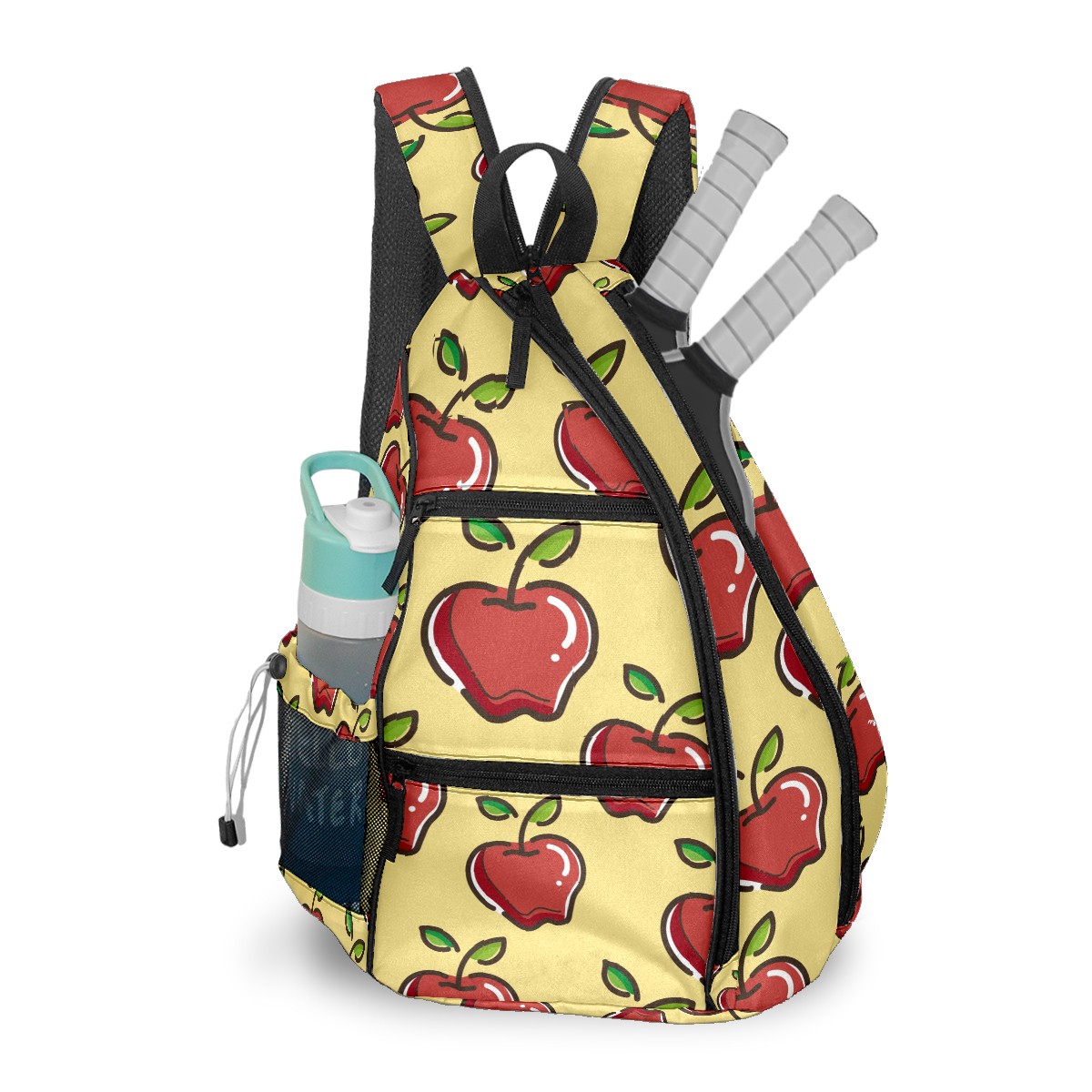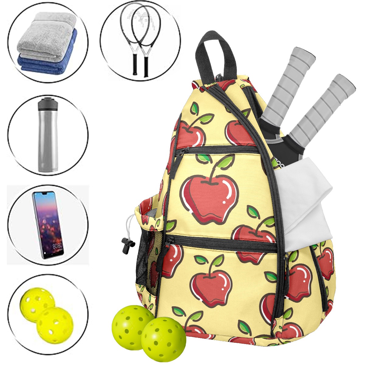 Multifunctional Pickleball Bag,Large Capacity Sports Pickleball Racket Bag, Water Bottle Holder and Fence Hook,Suitable for Both Men Women -Ripe Red Apples Fruit Pattern Yellow Background
