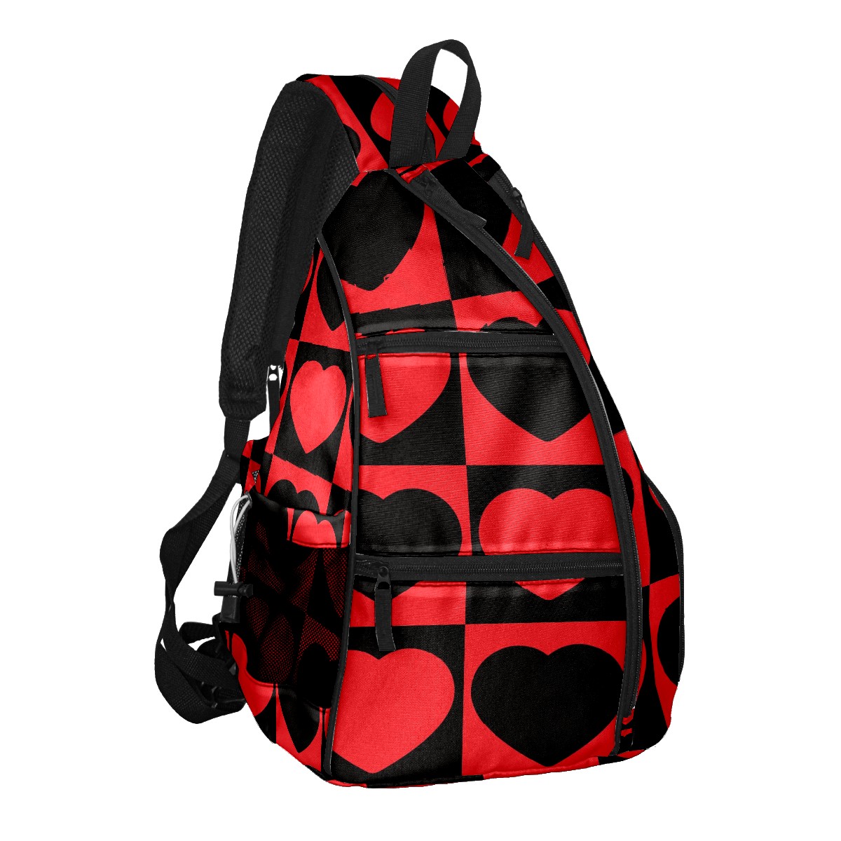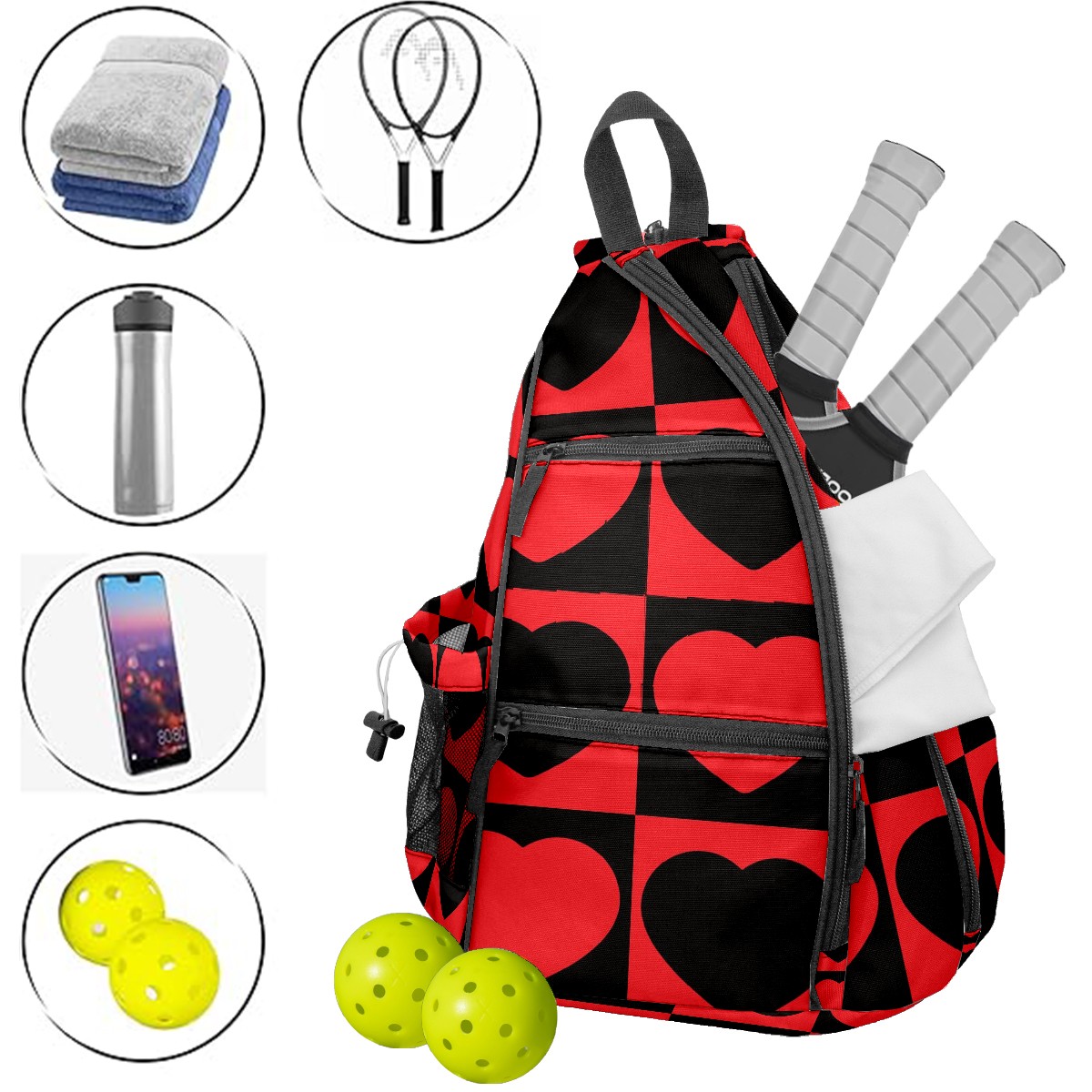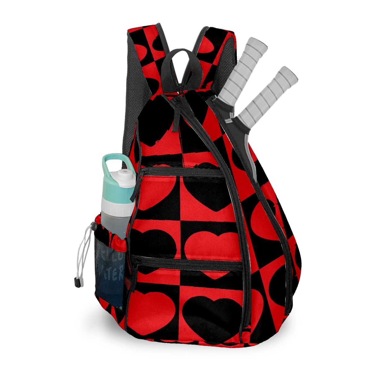 Multifunctional Pickleball Bag,Large Capacity Sports Pickleball Racket Bag, Water Bottle Holder and Fence Hook,Suitable for Both Men Women -Red Black Love Heart Mosaic Square
