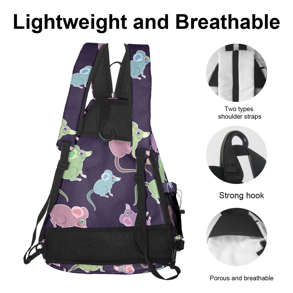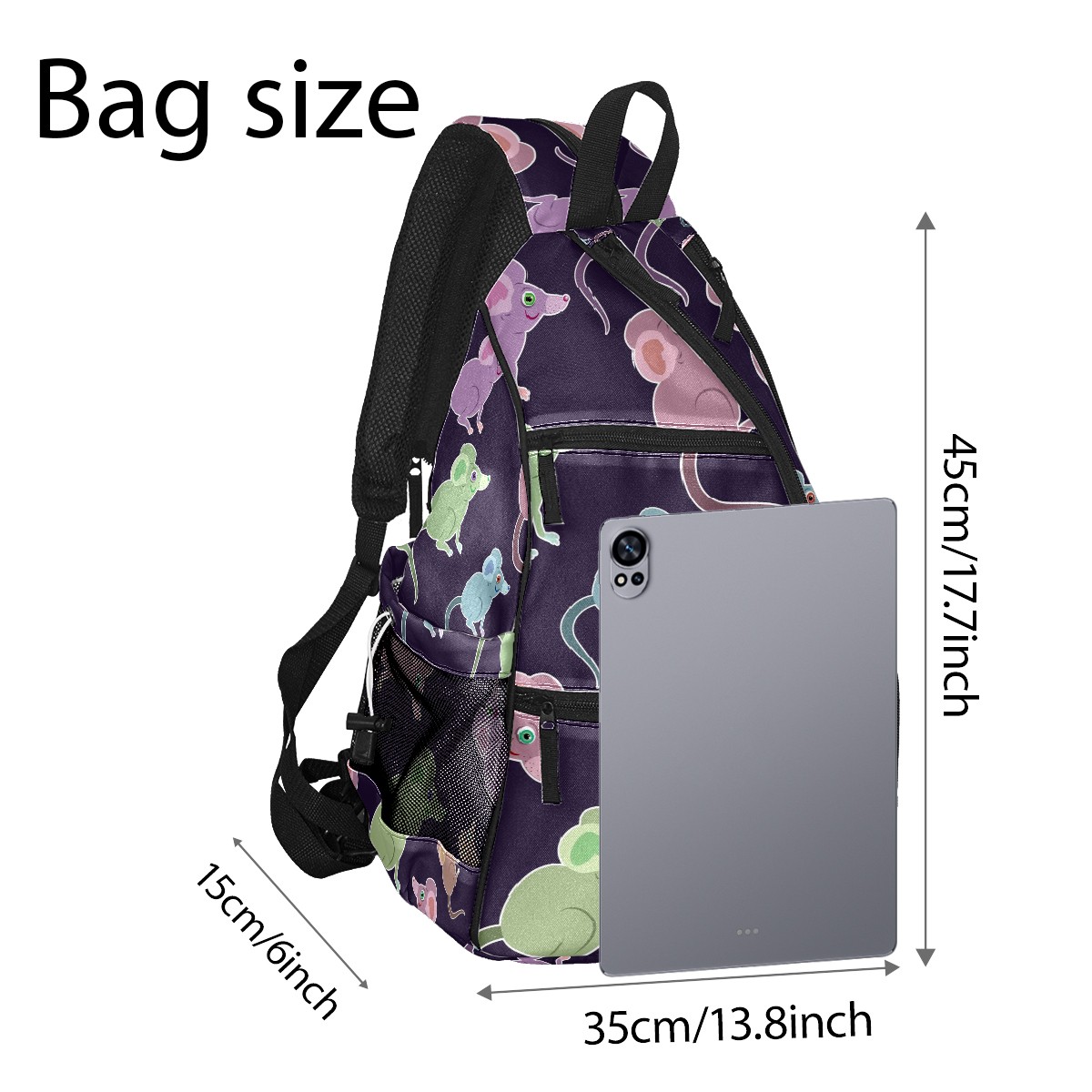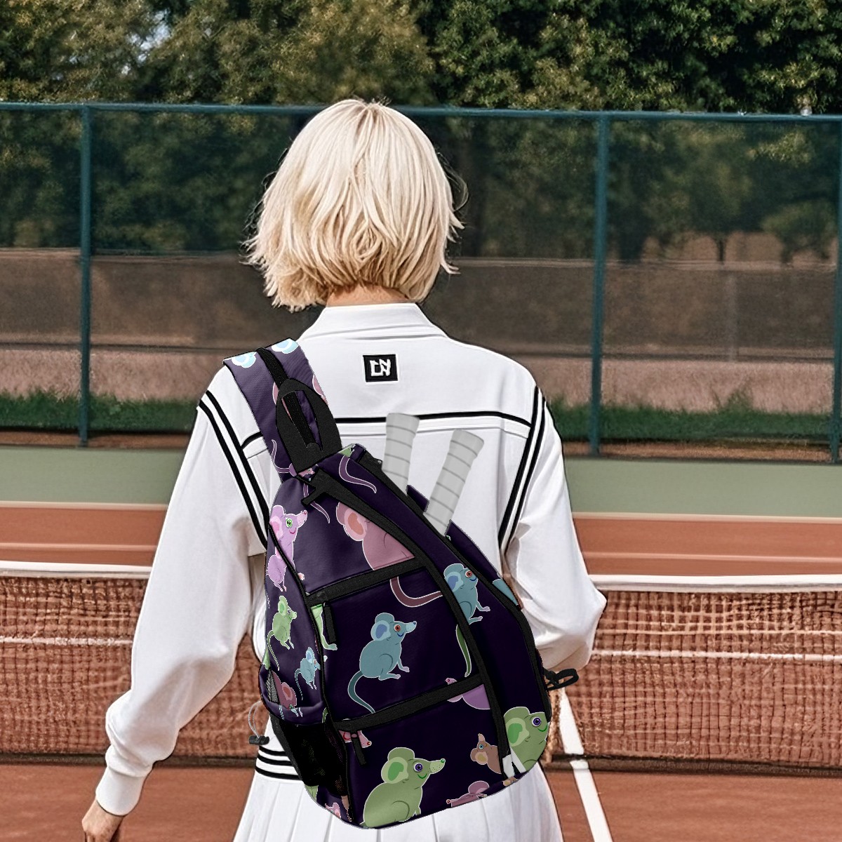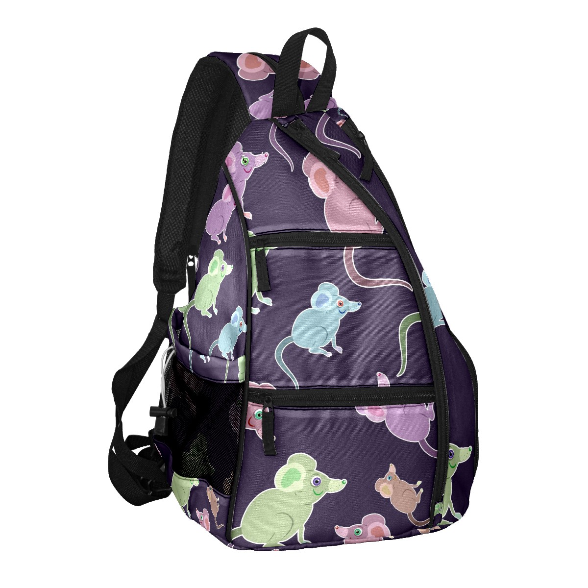 Multifunctional Pickleball Bag,Large Capacity Sports Pickleball Racket Bag, Water Bottle Holder and Fence Hook,Suitable for Both Men Women -Purple Green Blue Mice Pattern