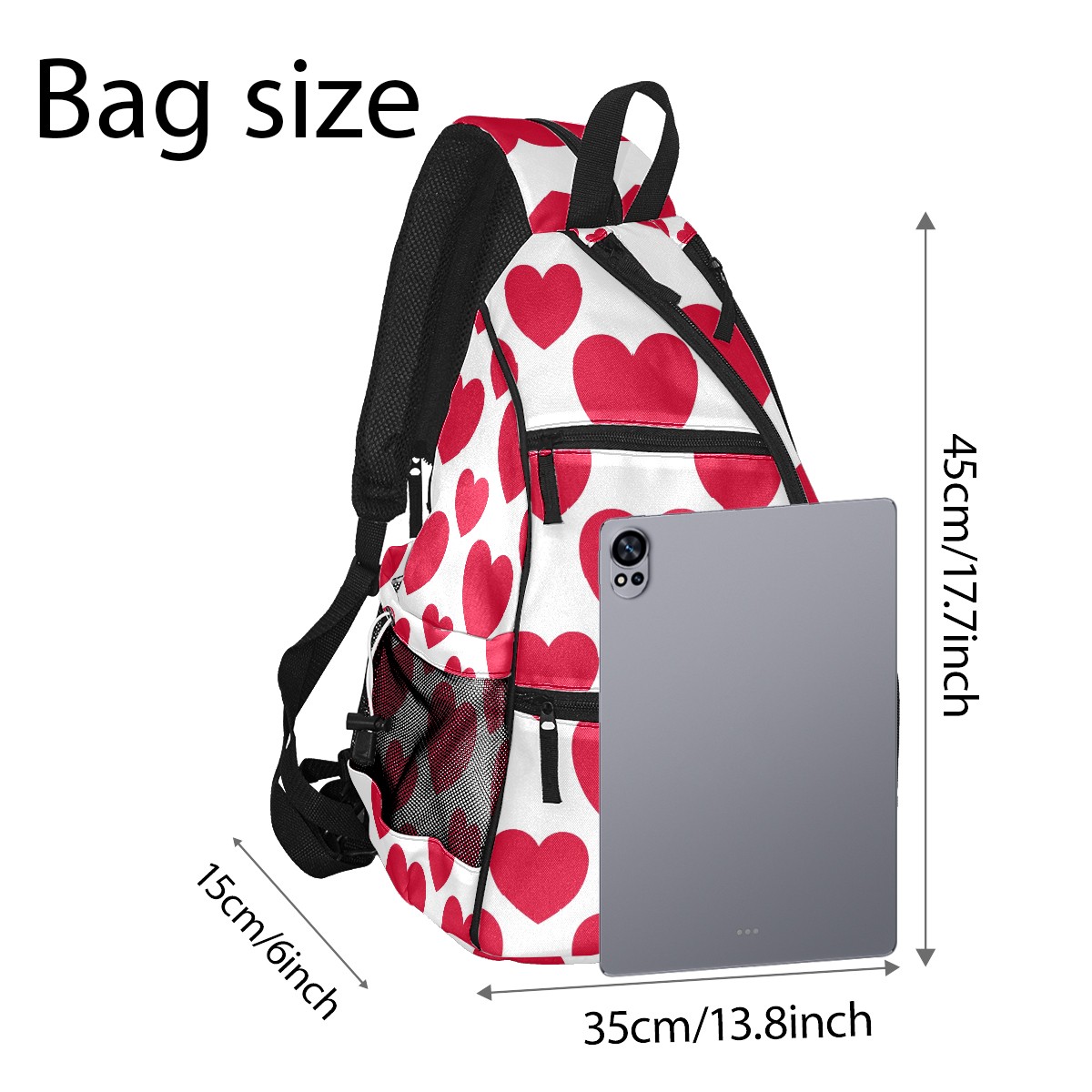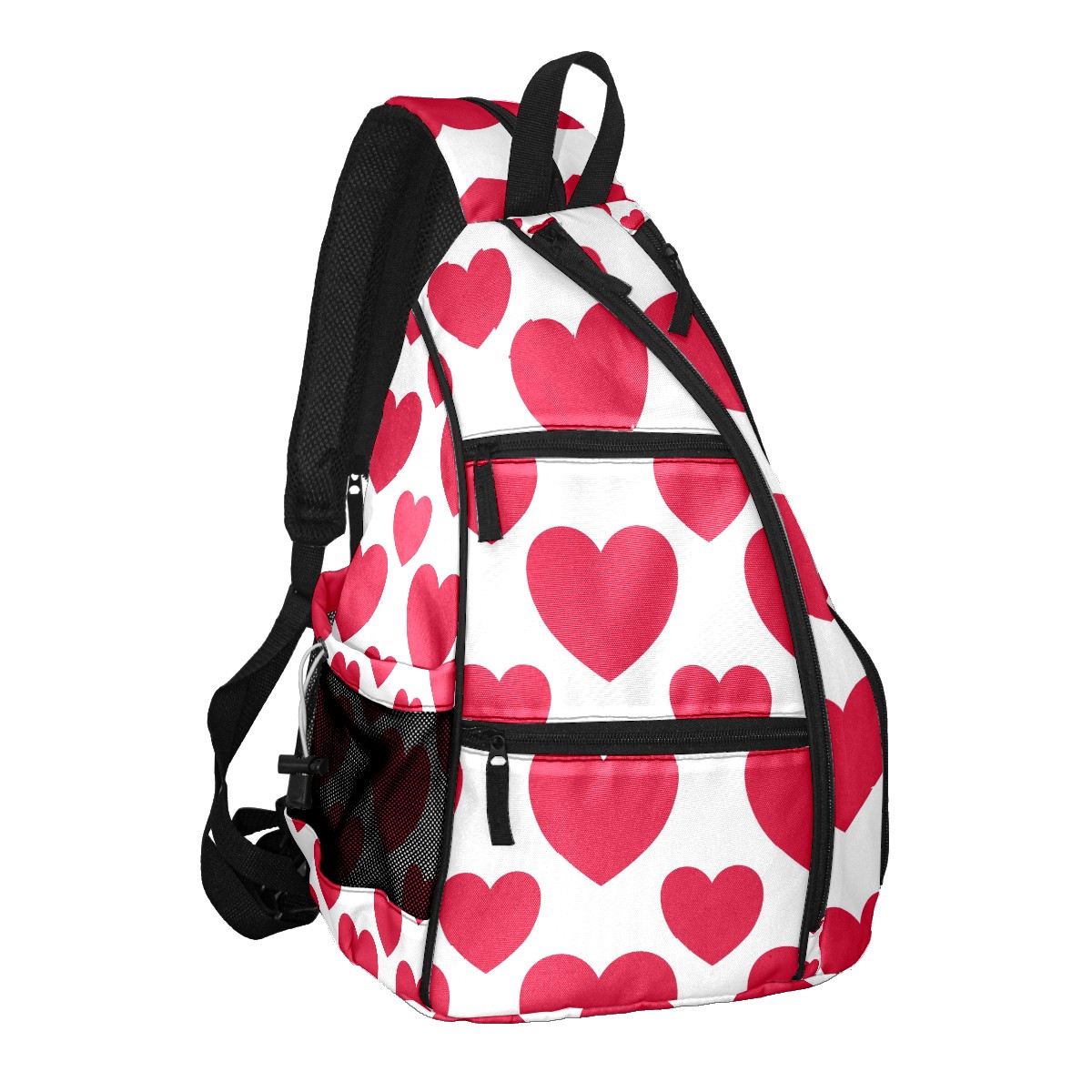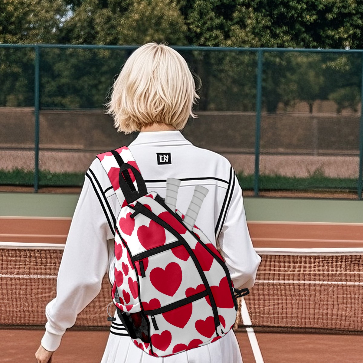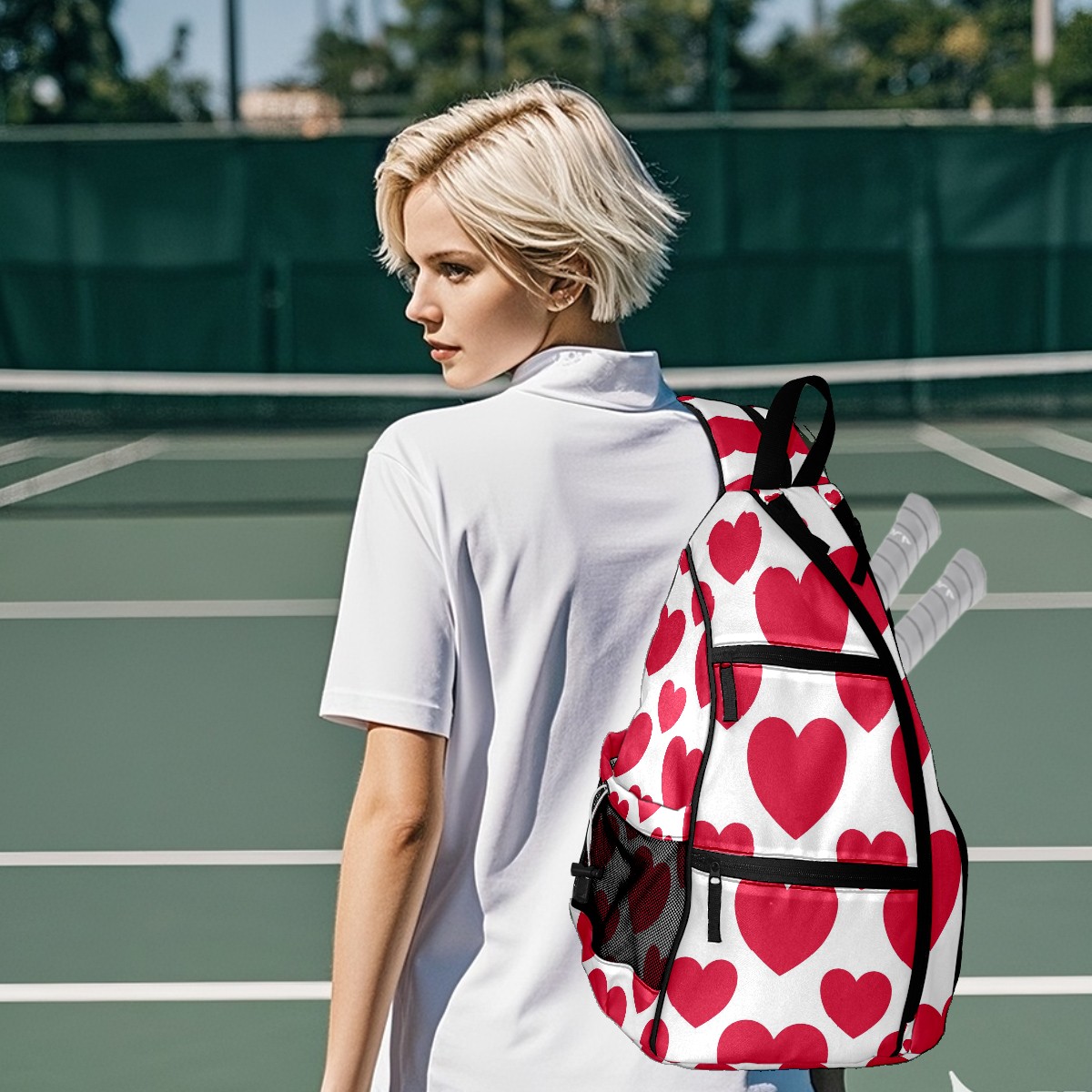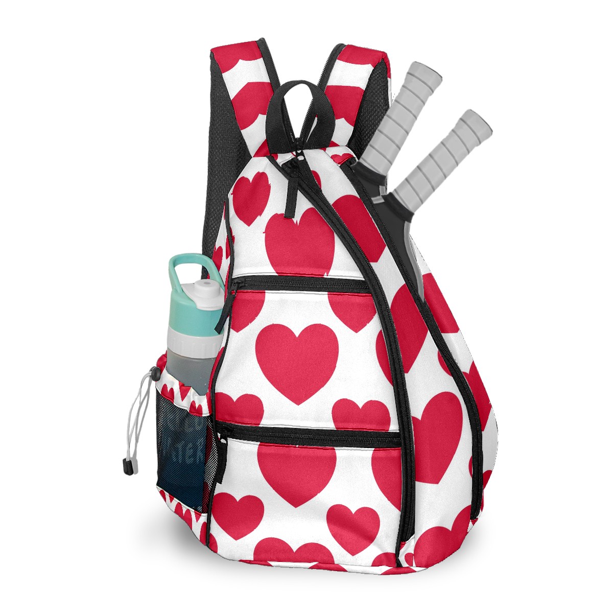 Multifunctional Pickleball Bag,Large Capacity Sports Pickleball Racket Bag, Water Bottle Holder and Fence Hook,Suitable for Both Men Women -Pink Love Hearts Valentin Pattern