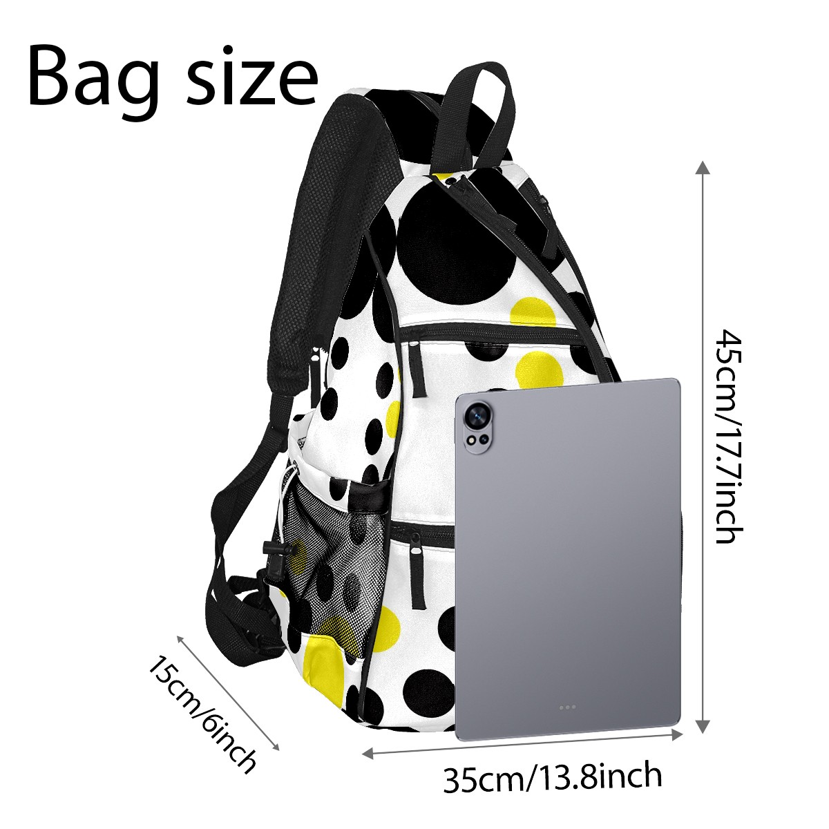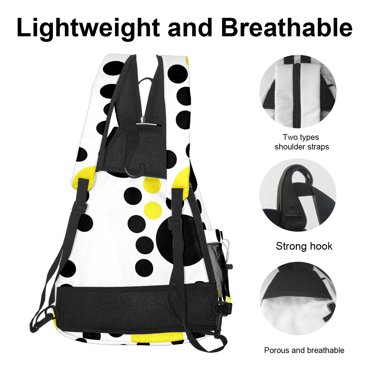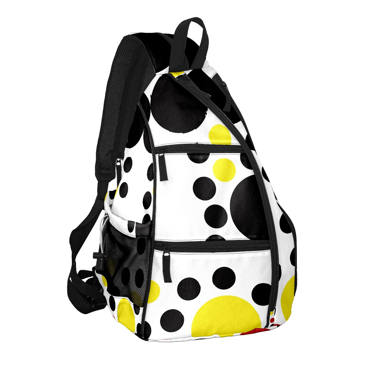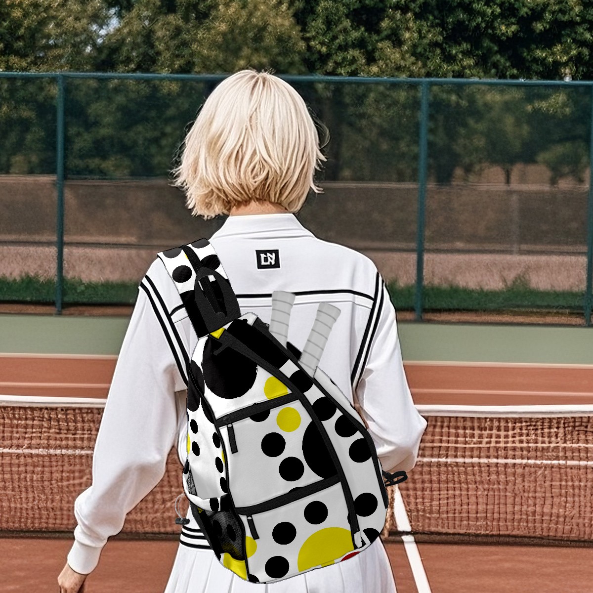 Multifunctional Pickleball Bag,Large Capacity Sports Pickleball Racket Bag, Water Bottle Holder and Fence Hook,Suitable for Both Men Women -Black Yellow Red Circle Dot Pattern
