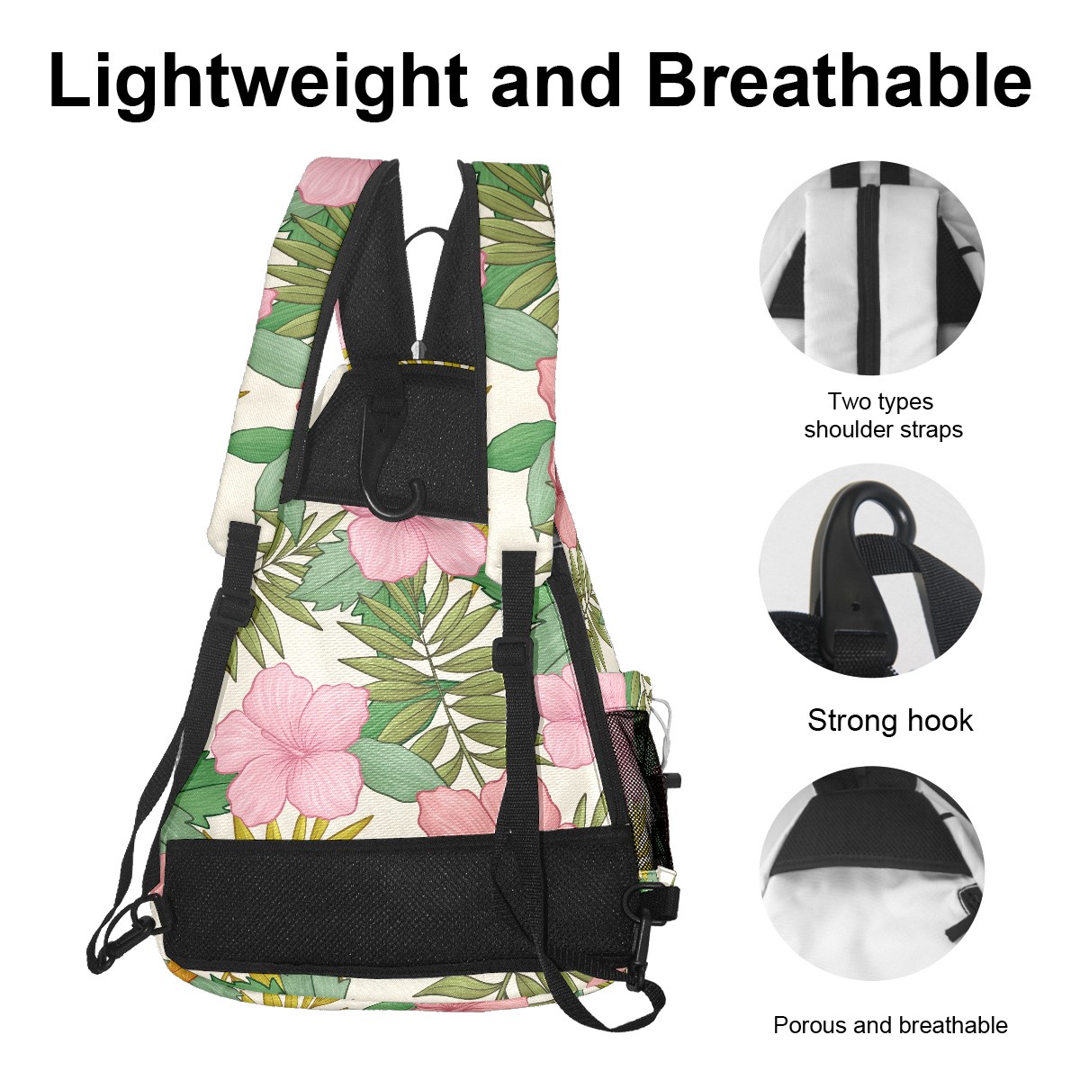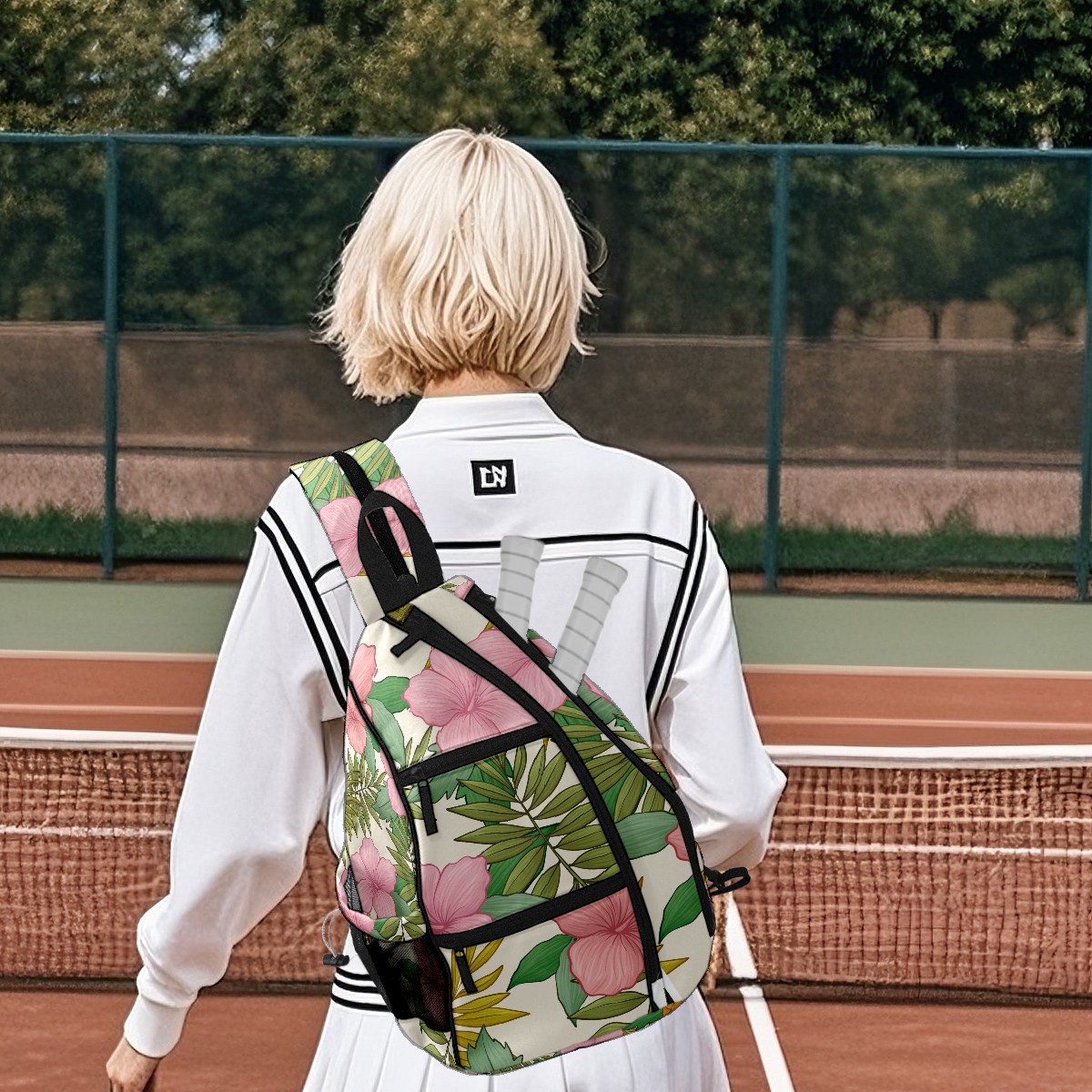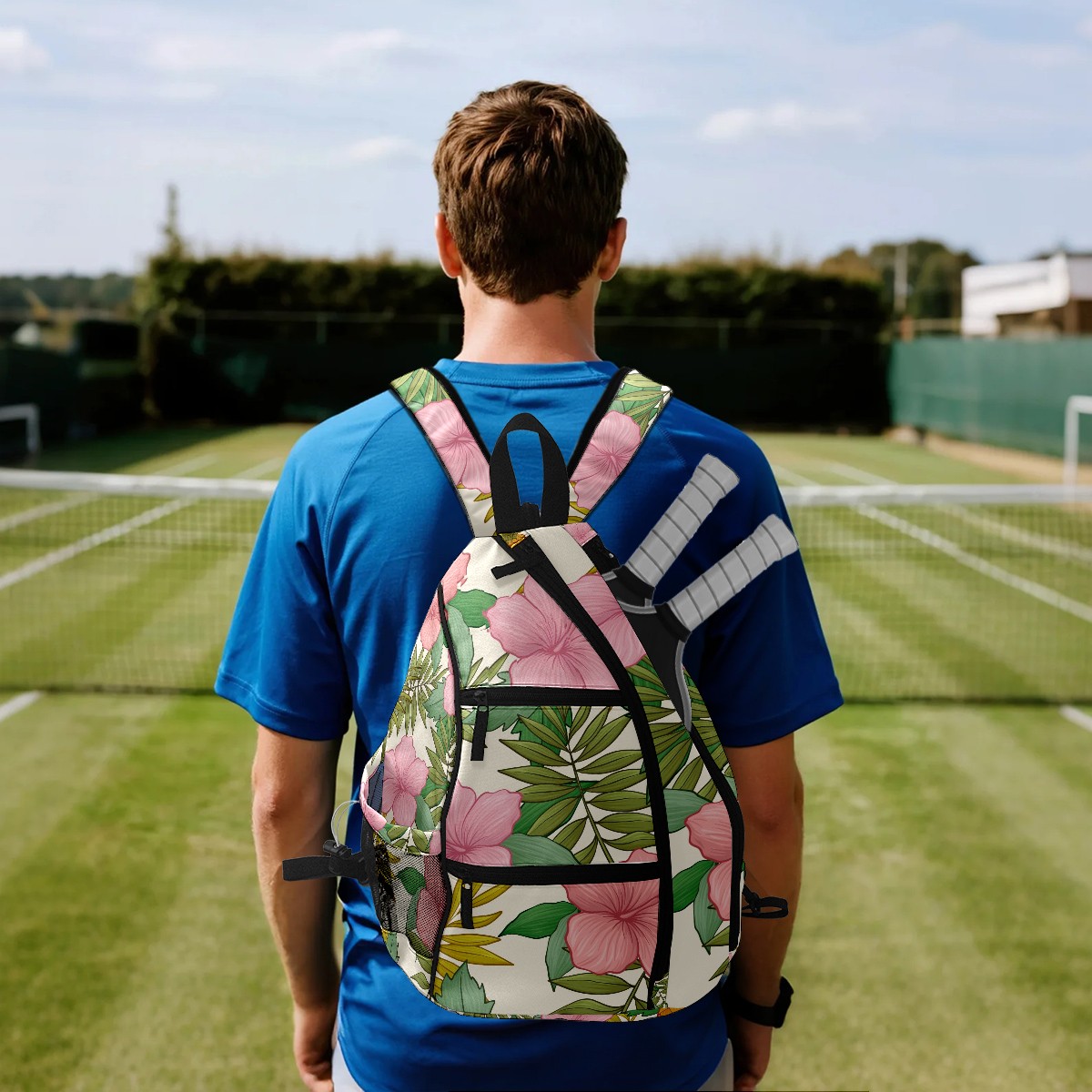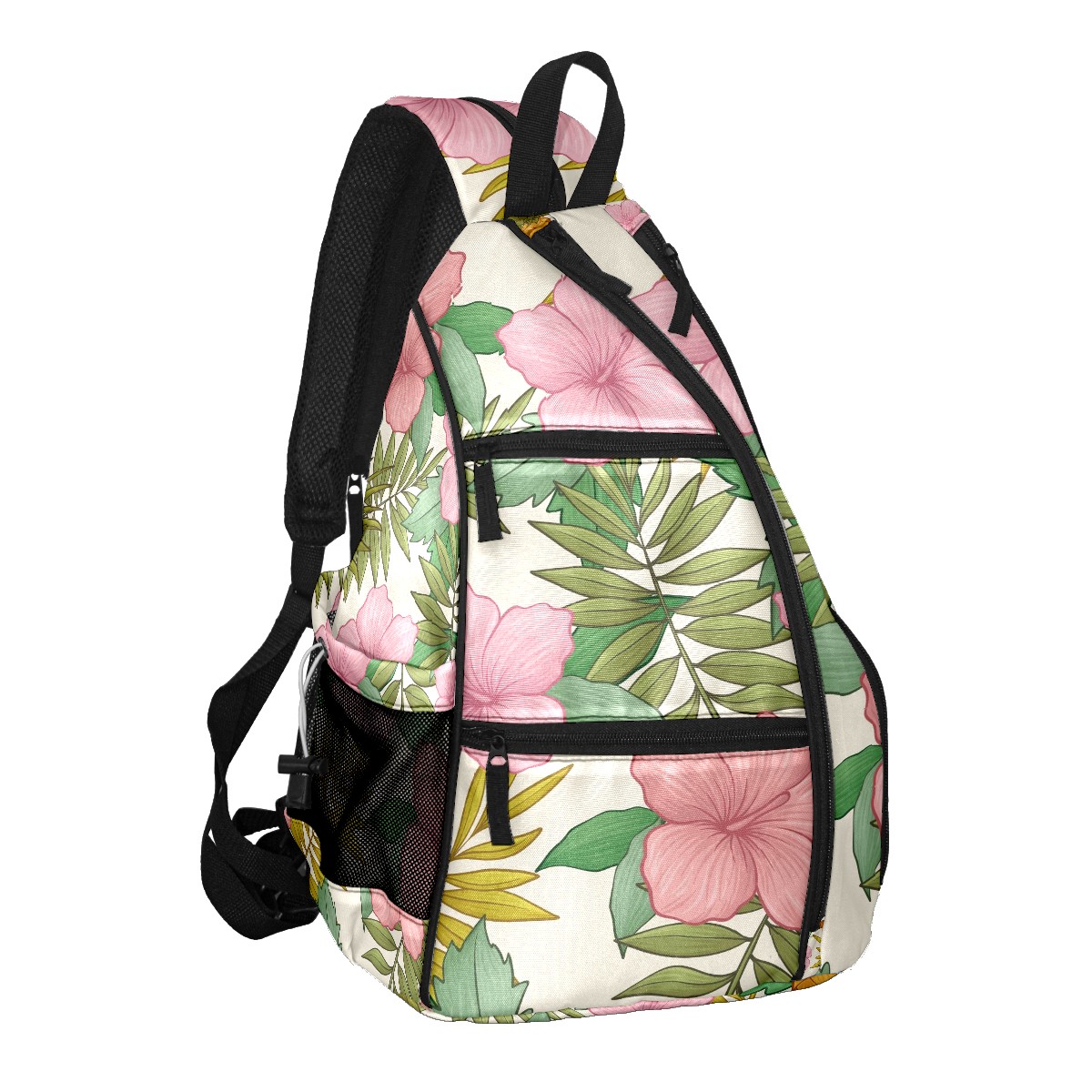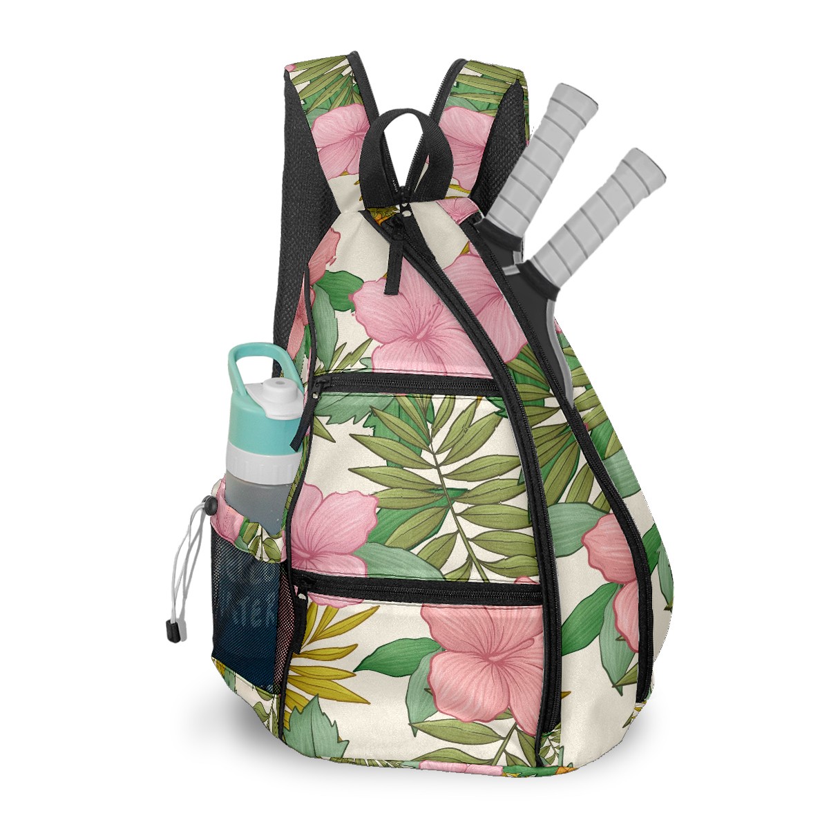 Multifunctional Pickleball Bag,Large Capacity Sports Pickleball Racket Bag, Water Bottle Holder and Fence Hook,Suitable for Both Men Women -Pink Tropical Flowers Pineapple