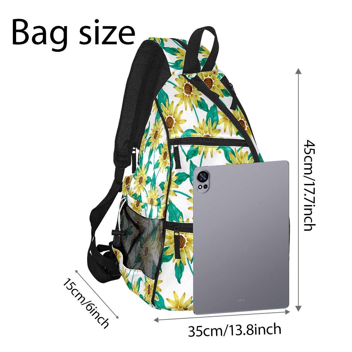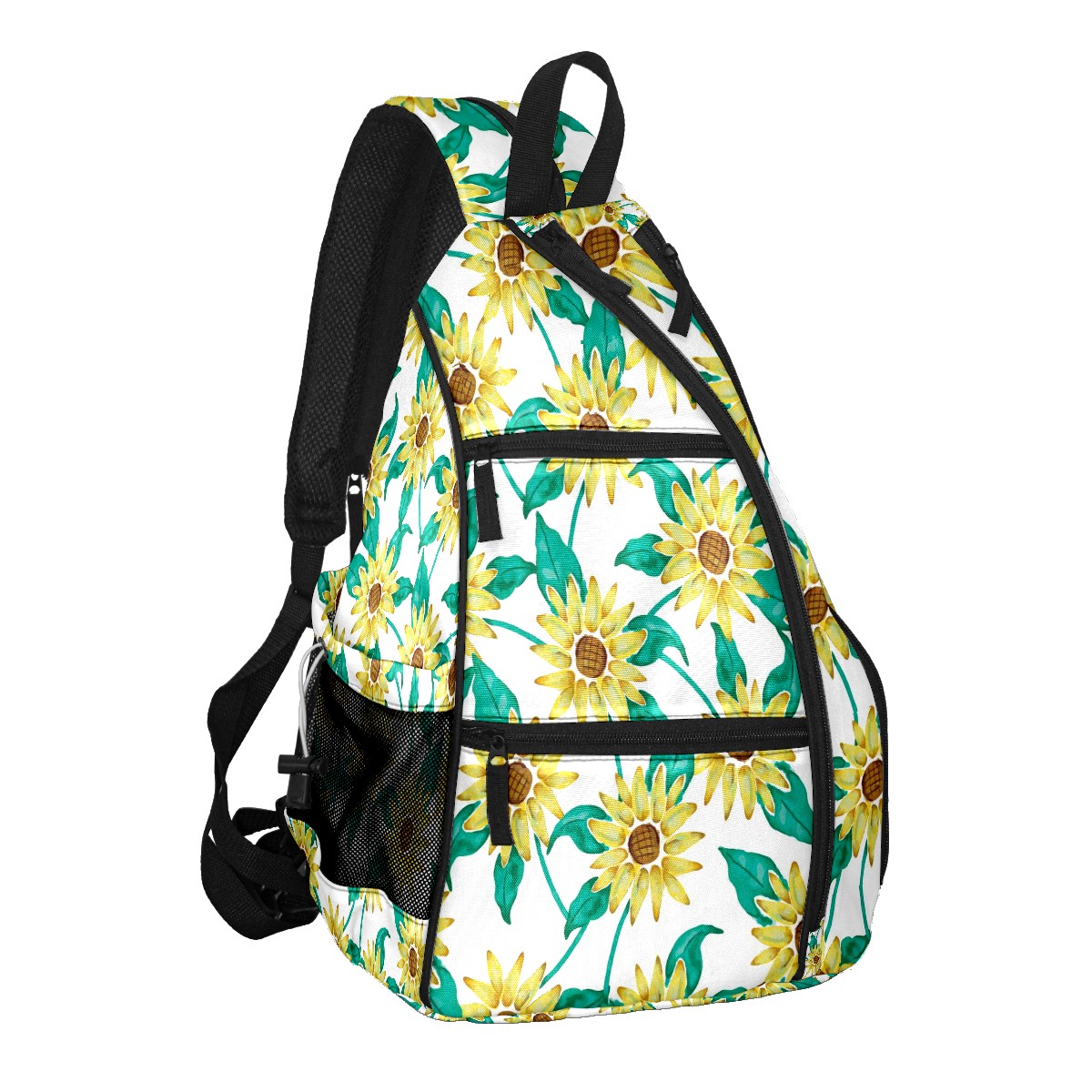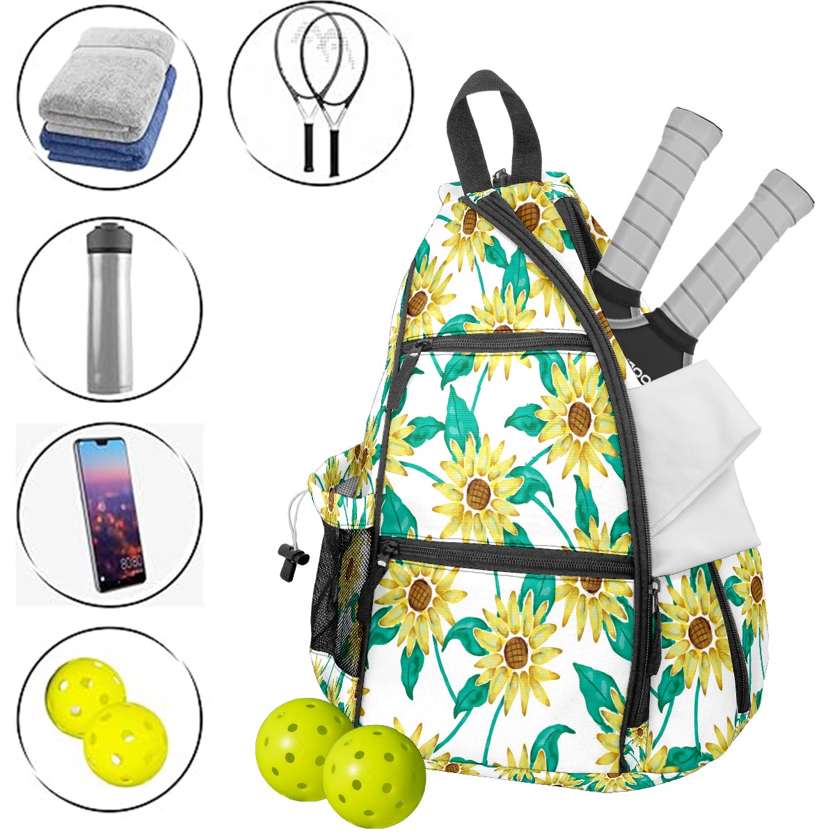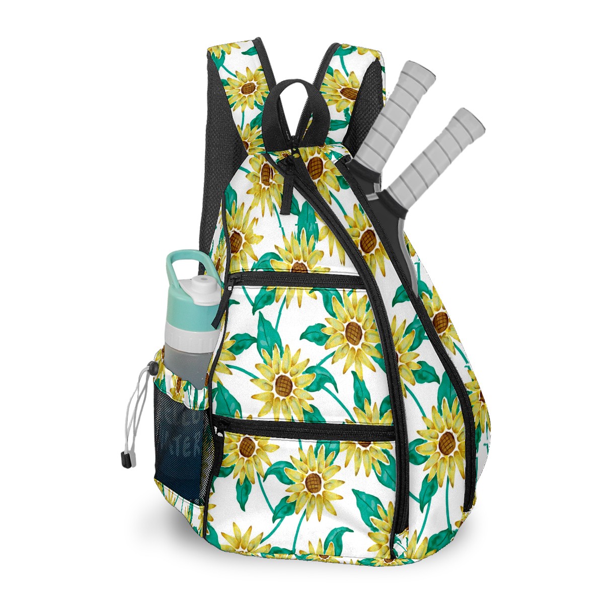 Multifunctional Pickleball Bag,Large Capacity Sports Pickleball Racket Bag, Water Bottle Holder and Fence Hook,Suitable for Both Men Women -Painted Sunflower Green Leaves Pattern