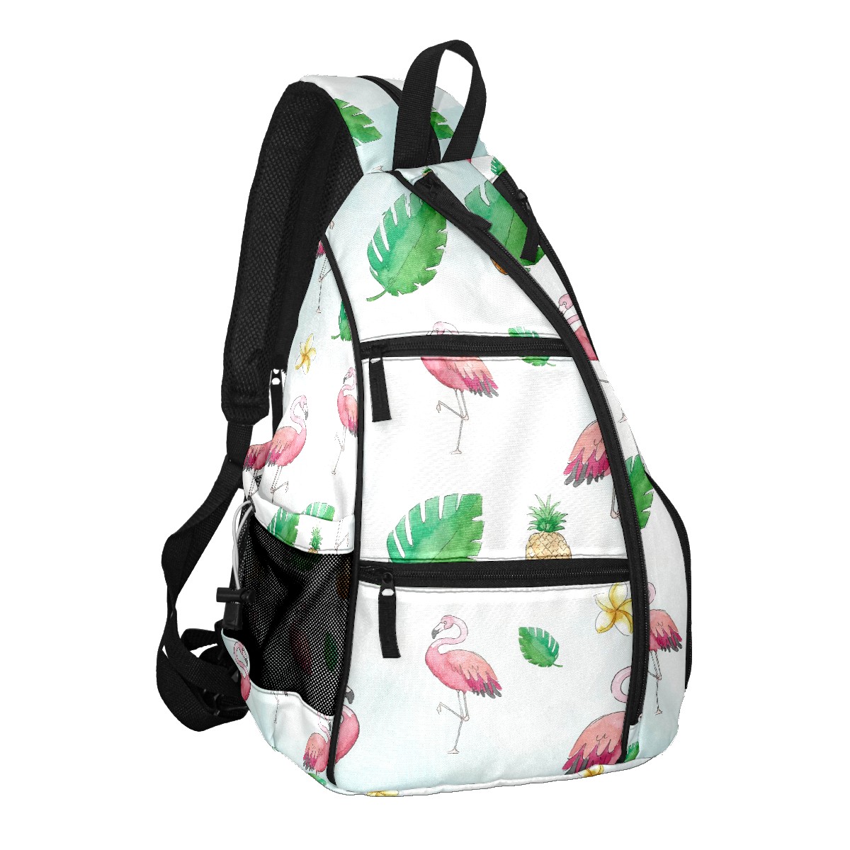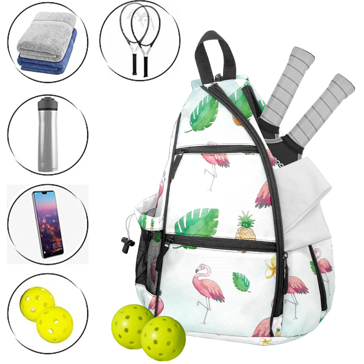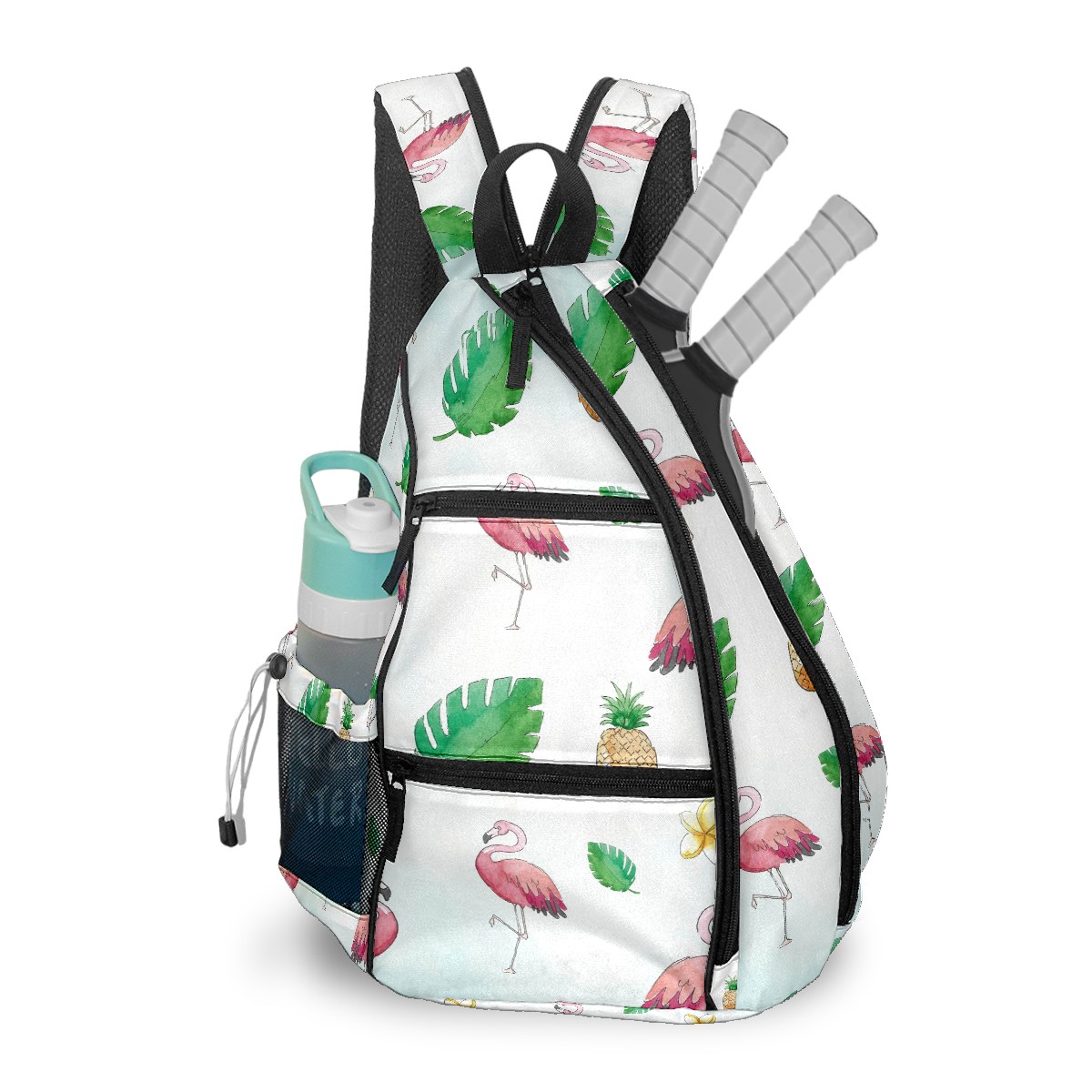 Multifunctional Pickleball Bag,Large Capacity Sports Pickleball Racket Bag, Water Bottle Holder and Fence Hook,Suitable for Both Men Women -Pink Flamingos Pineapple Tropical Leaves