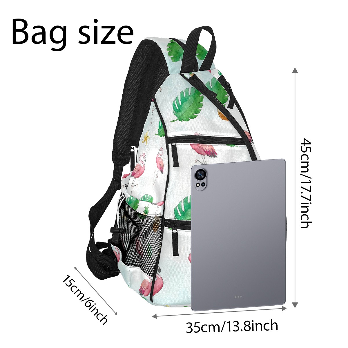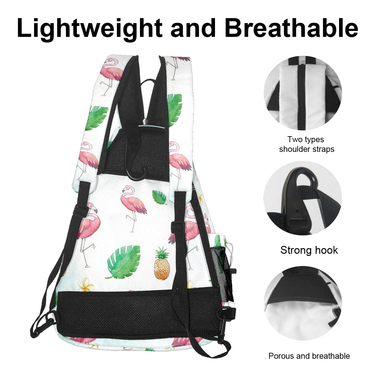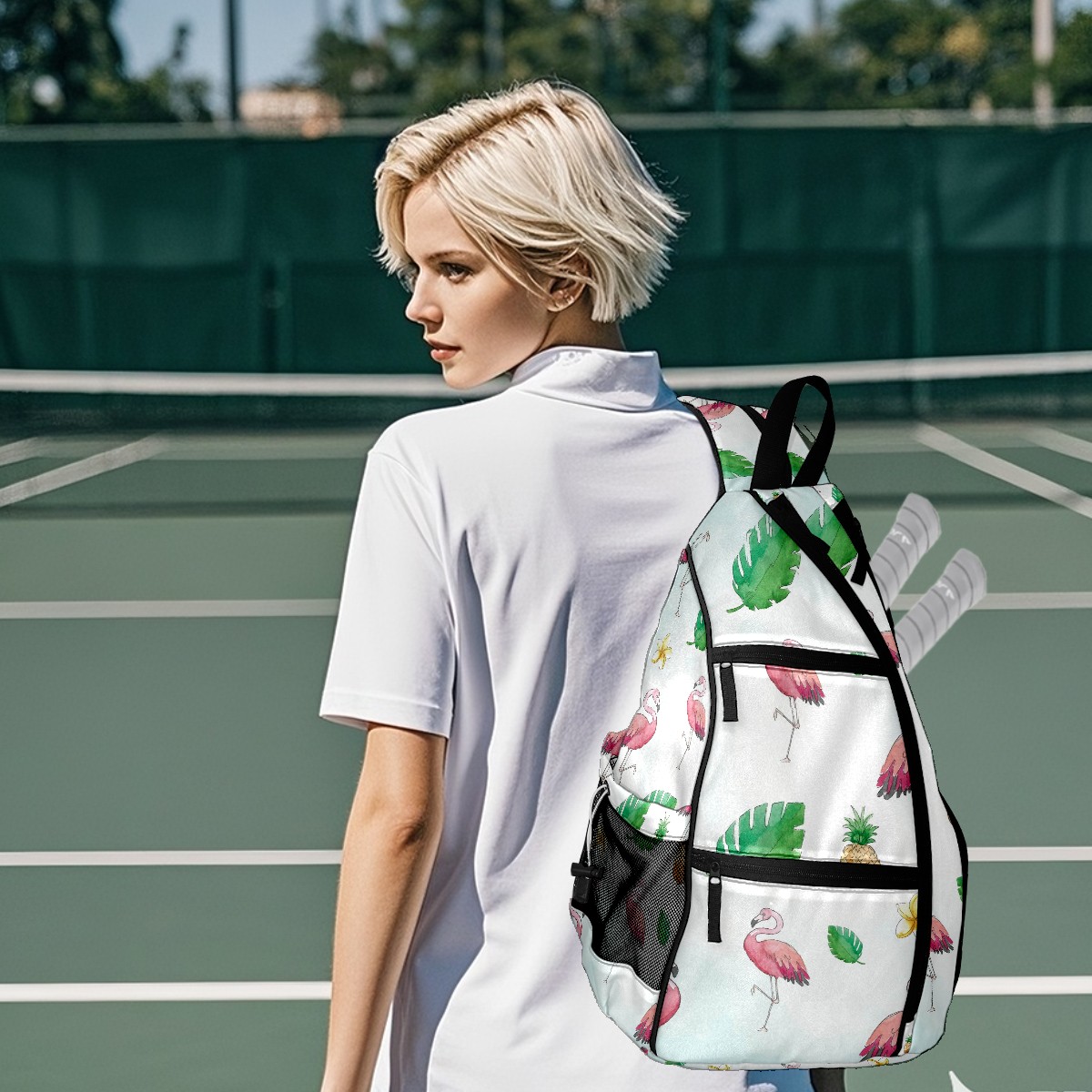 Multifunctional Pickleball Bag,Large Capacity Sports Pickleball Racket Bag, Water Bottle Holder and Fence Hook,Suitable for Both Men Women -Pink Flamingos Pineapple Tropical Leaves