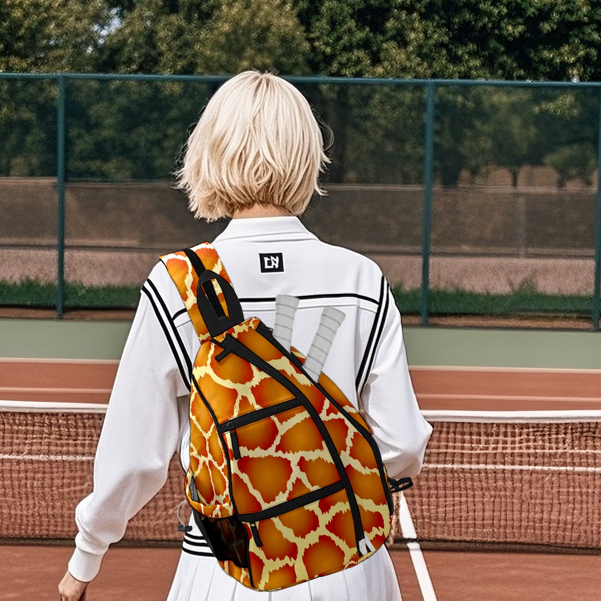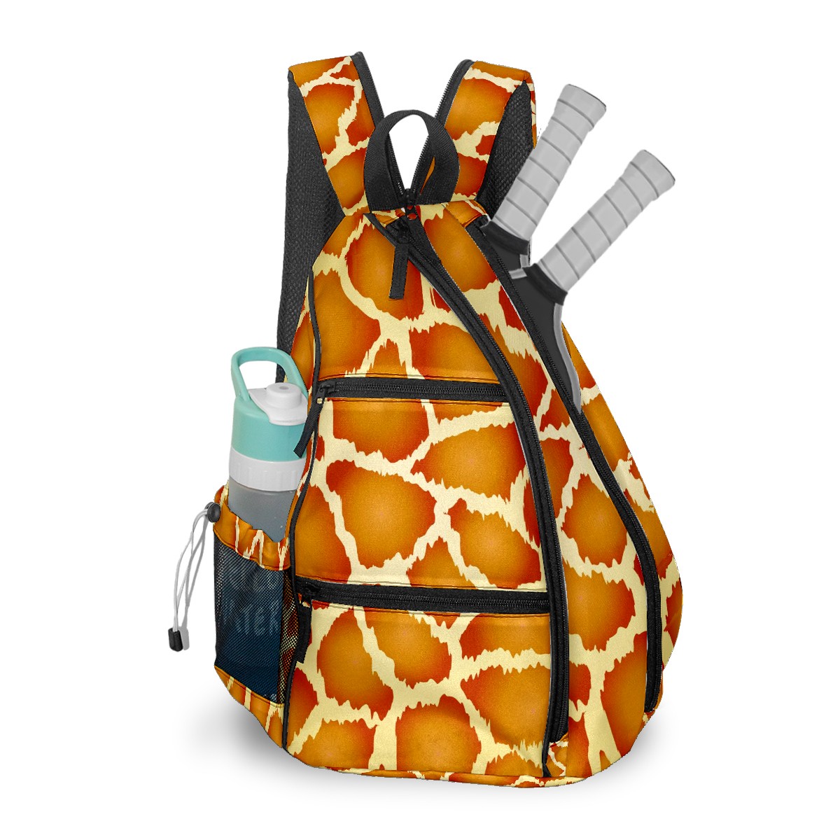 Multifunctional Pickleball Bag,Large Capacity Sports Pickleball Racket Bag, Water Bottle Holder and Fence Hook,Suitable for Both Men Women -Natural Orange Giraffe Print