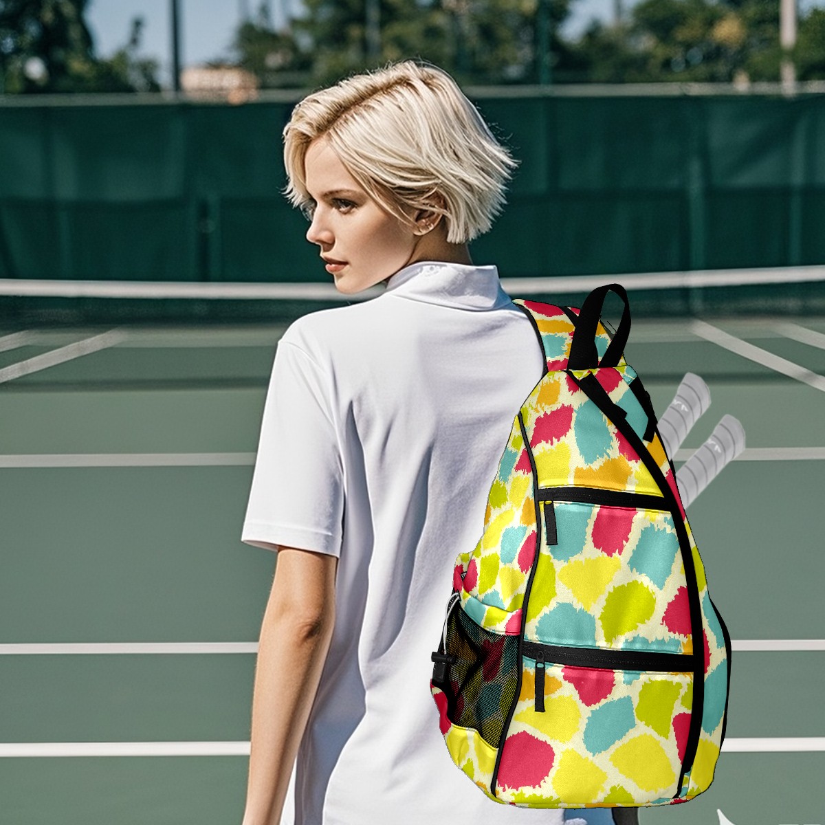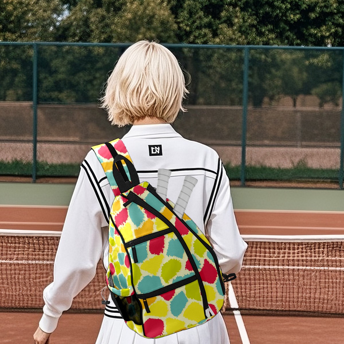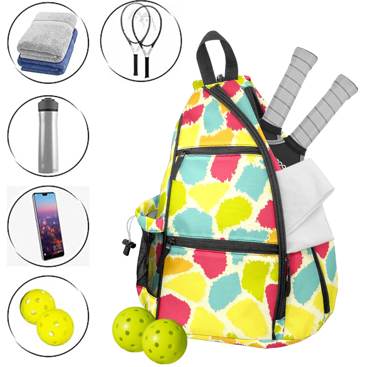 Multifunctional Pickleball Bag,Large Capacity Sports Pickleball Racket Bag, Water Bottle Holder and Fence Hook,Suitable for Both Men Women -Colorful Yellow Blue Green Pink Paint Doodle