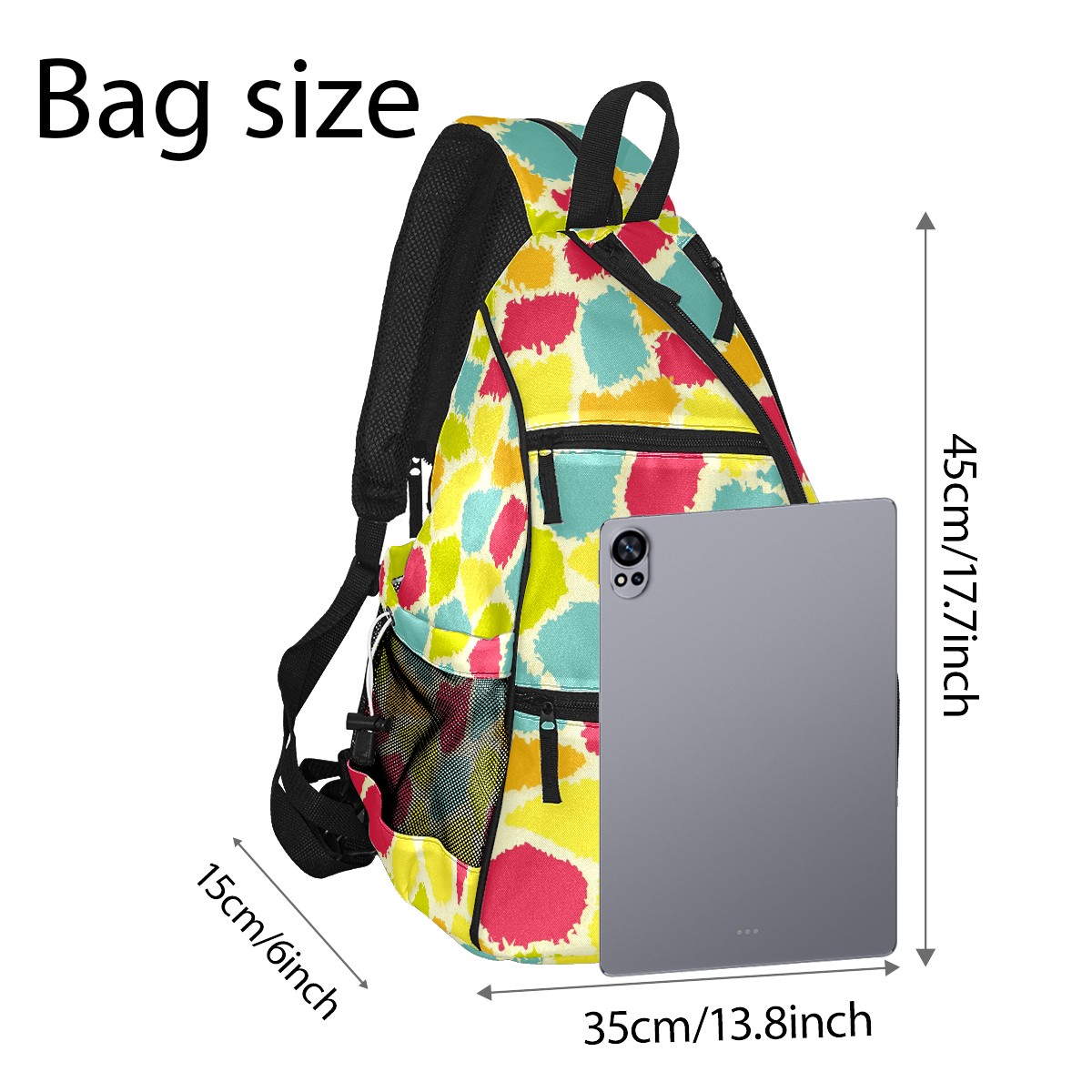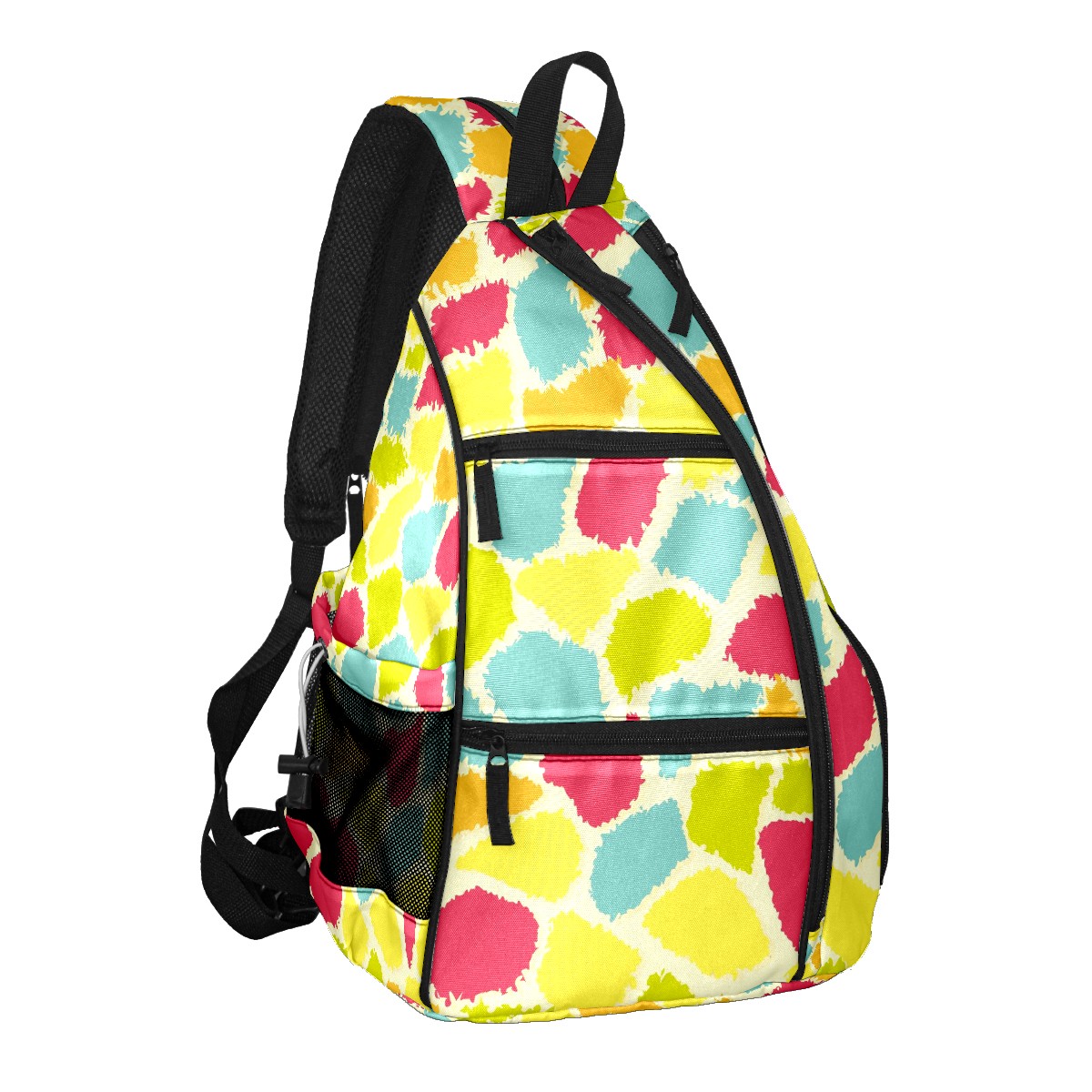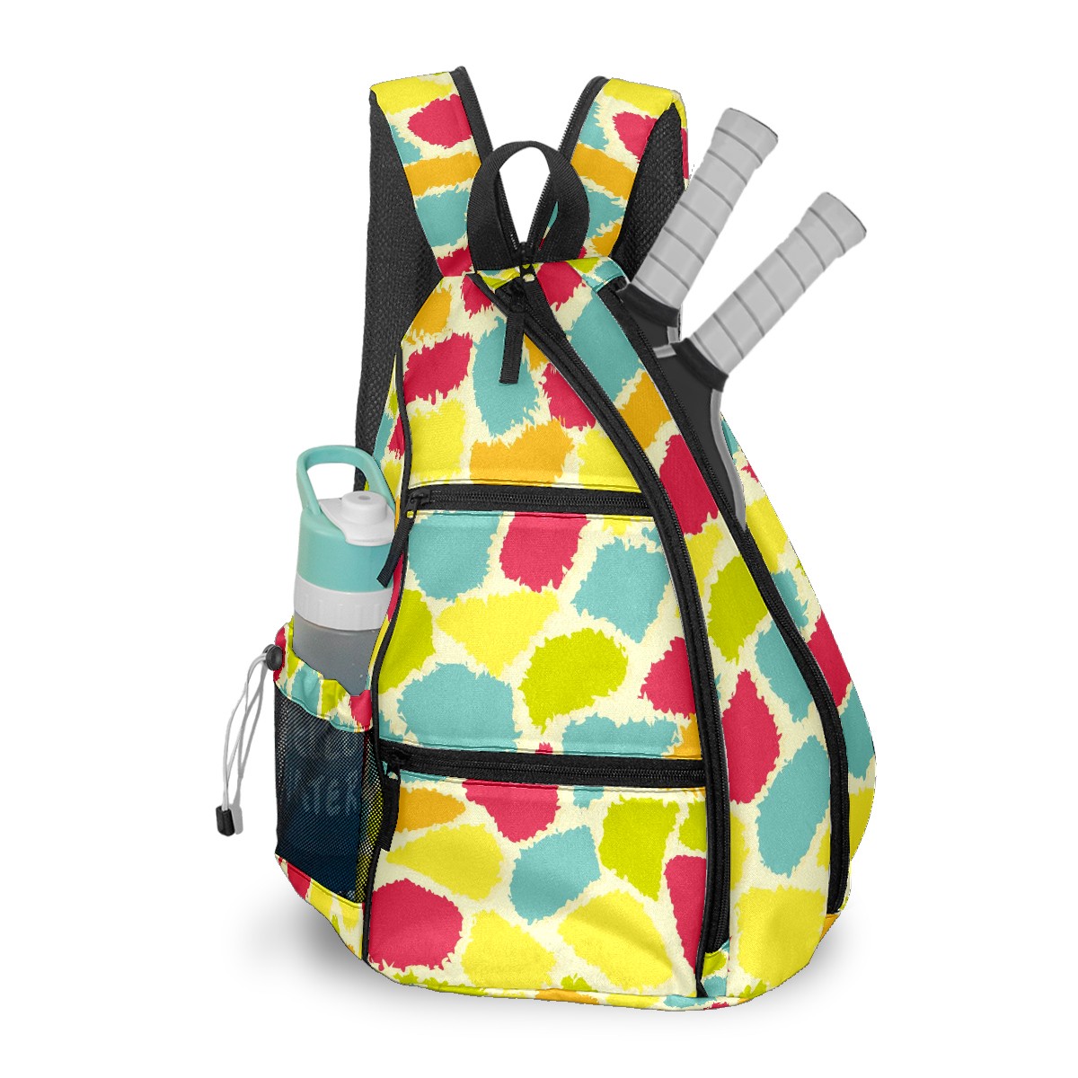Multifunctional Pickleball Bag,Large Capacity Sports Pickleball Racket Bag, Water Bottle Holder and Fence Hook,Suitable for Both Men Women -Colorful Yellow Blue Green Pink Paint Doodle