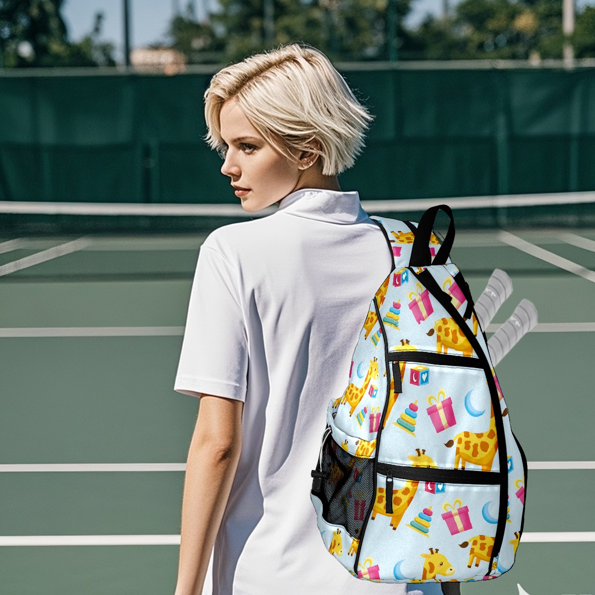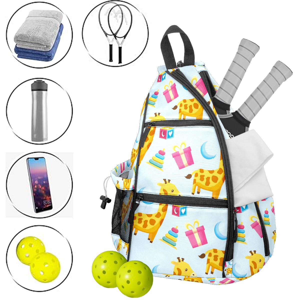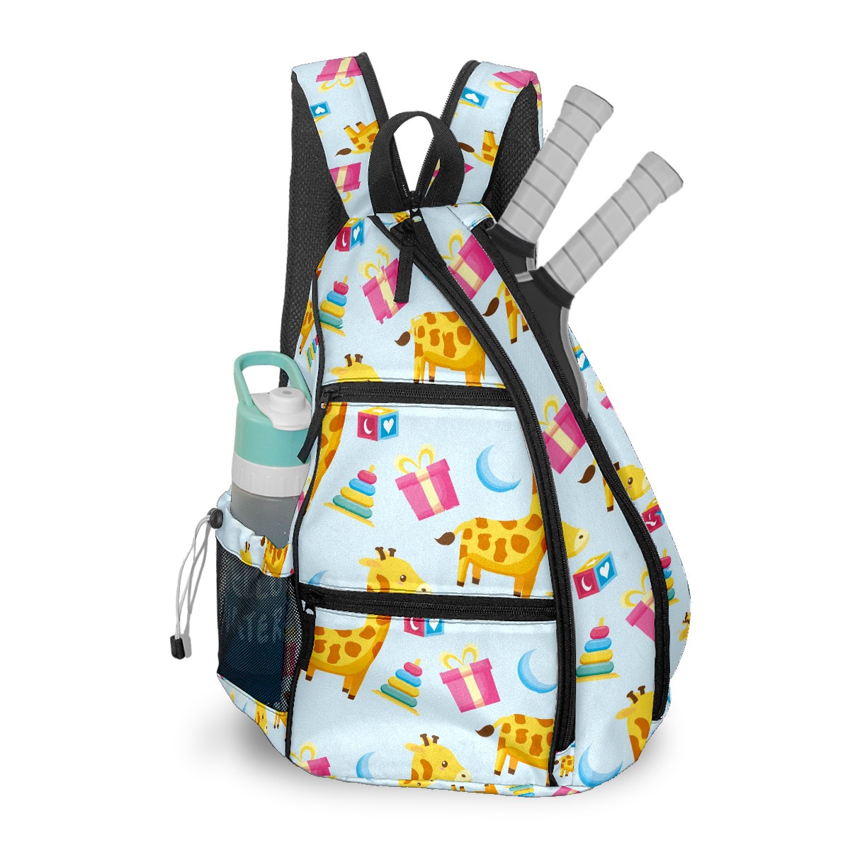 Multifunctional Pickleball Bag,Large Capacity Sports Pickleball Racket Bag, Water Bottle Holder and Fence Hook,Suitable for Both Men Women -Cartoon Giraffe Gift Moon Cake Pattern