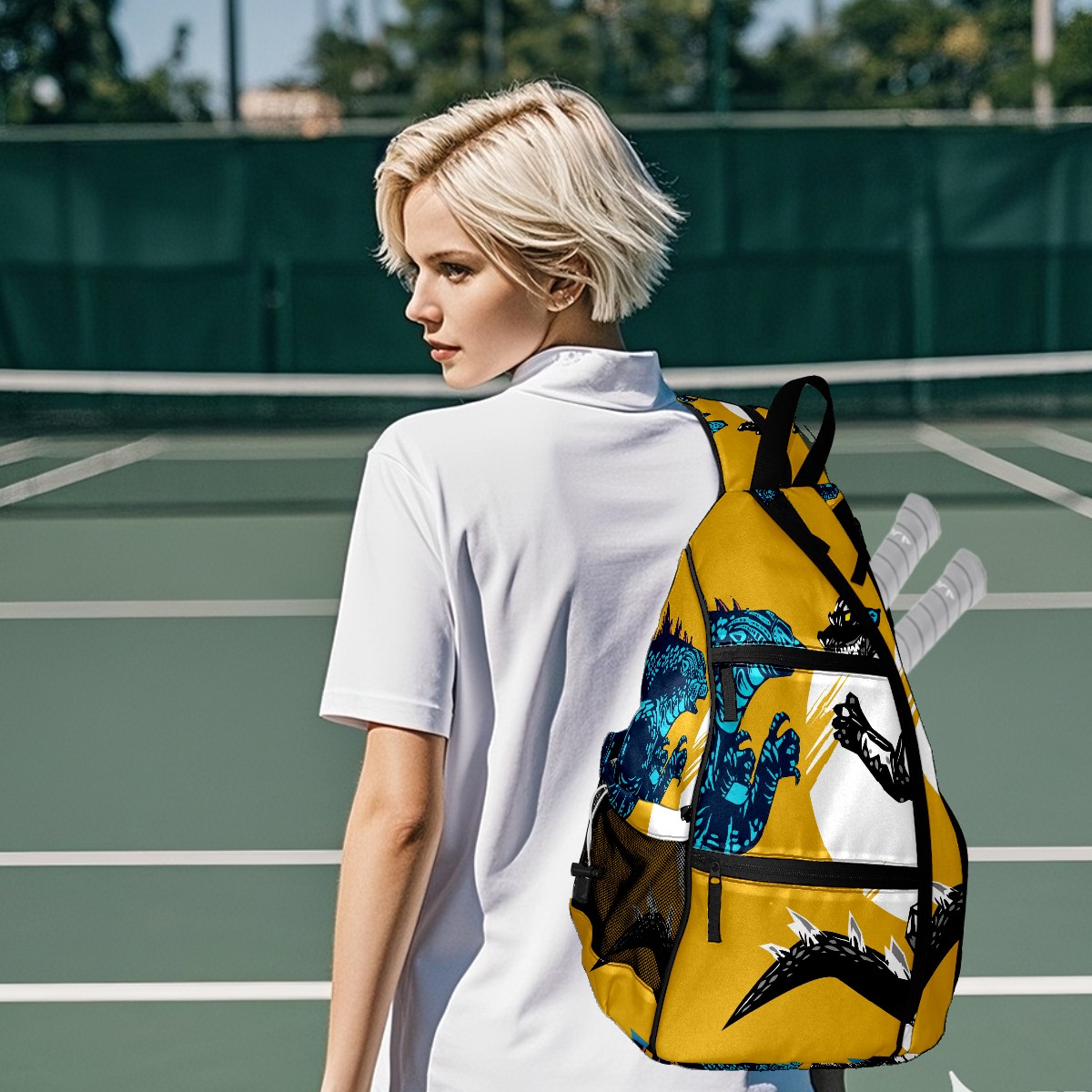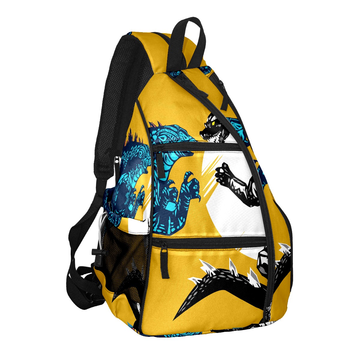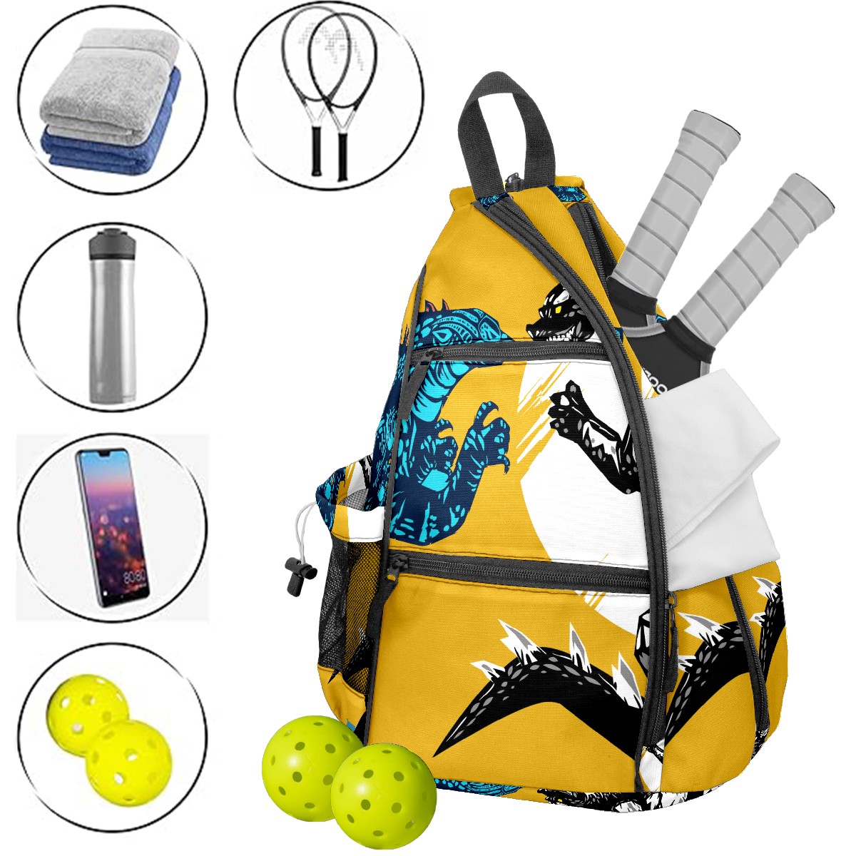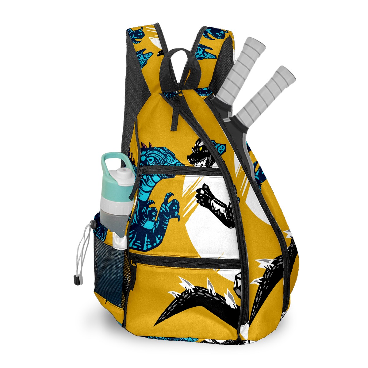 Multifunctional Pickleball Bag,Large Capacity Sports Pickleball Racket Bag, Water Bottle Holder and Fence Hook,Suitable for Both Men Women -Two Godzilla Dinosaur Fight