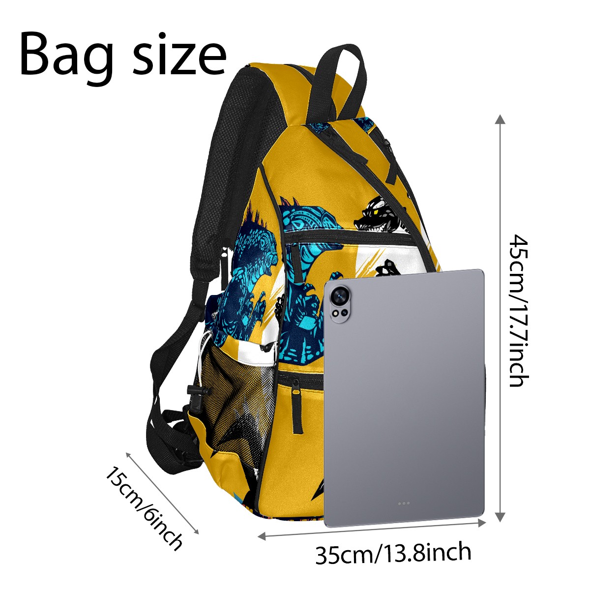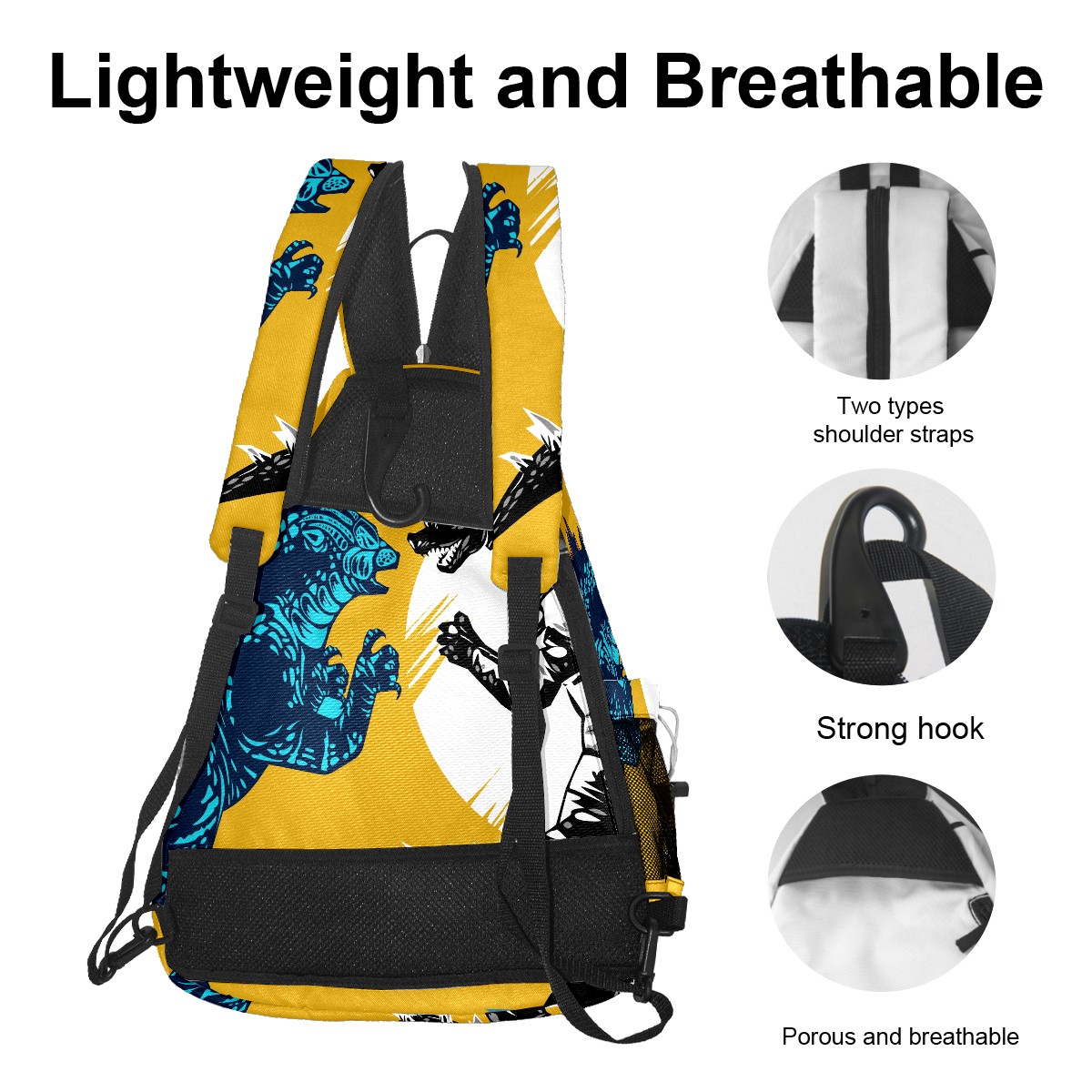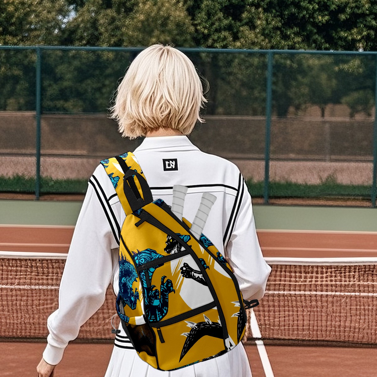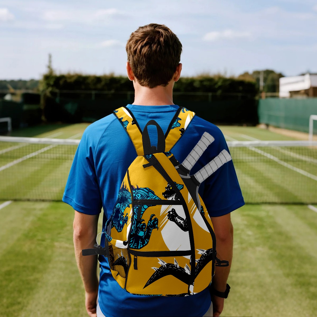 Multifunctional Pickleball Bag,Large Capacity Sports Pickleball Racket Bag, Water Bottle Holder and Fence Hook,Suitable for Both Men Women -Two Godzilla Dinosaur Fight
