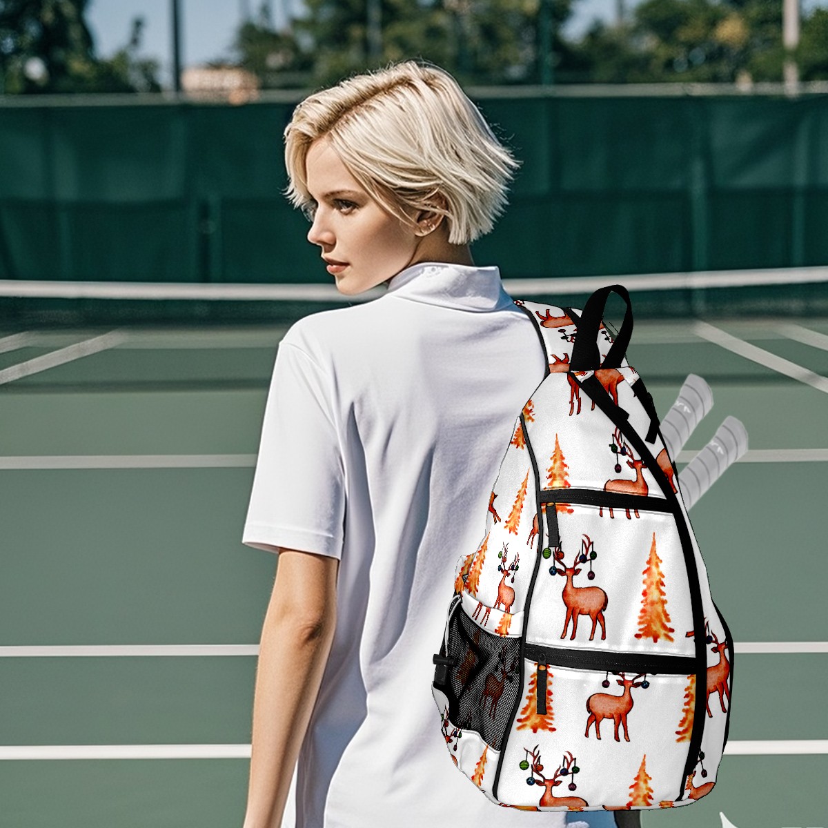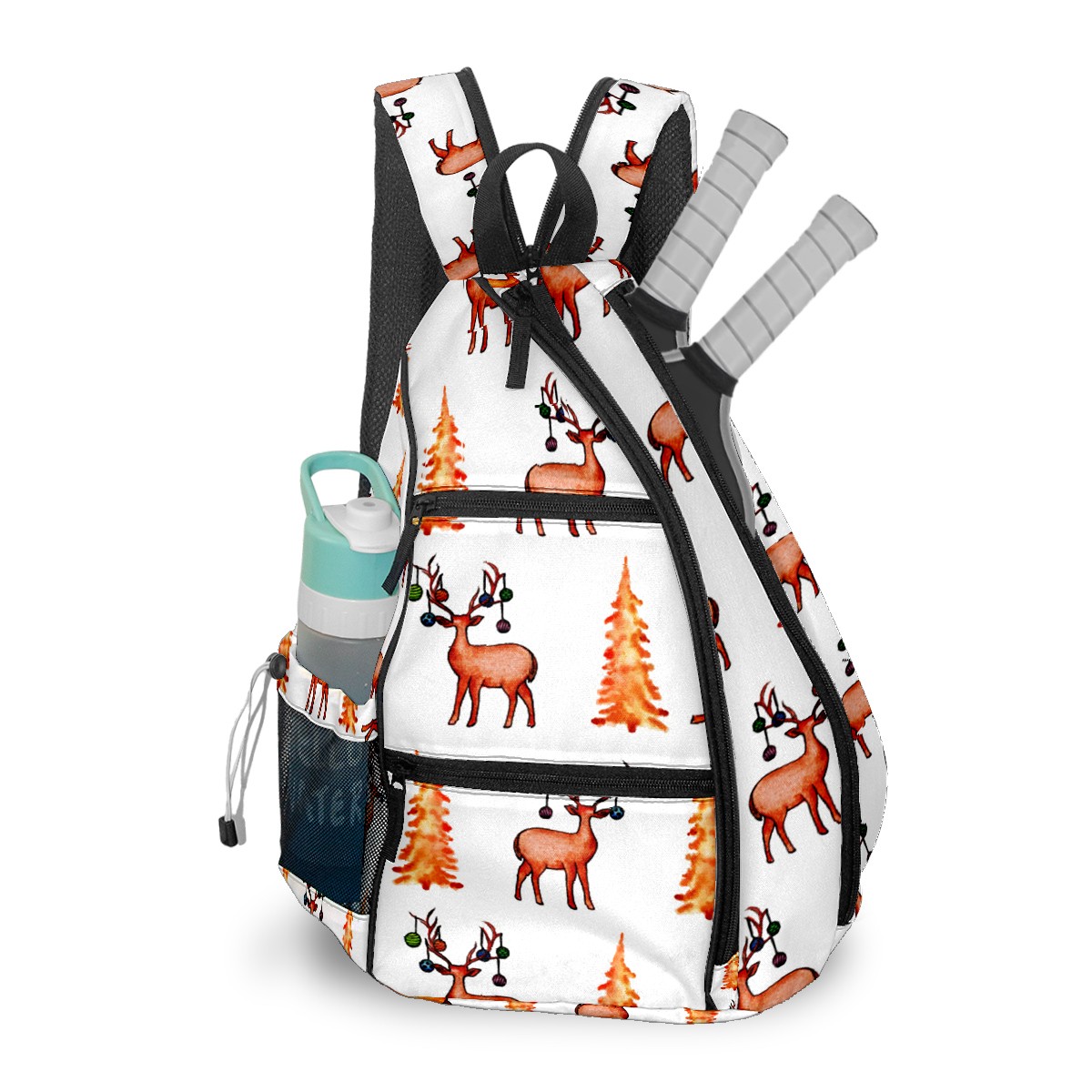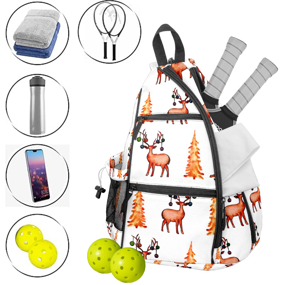Multifunctional Pickleball Bag,Large Capacity Sports Pickleball Racket Bag, Water Bottle Holder and Fence Hook,Suitable for Both Men Women -Vintage Reindeer Elk Christmas