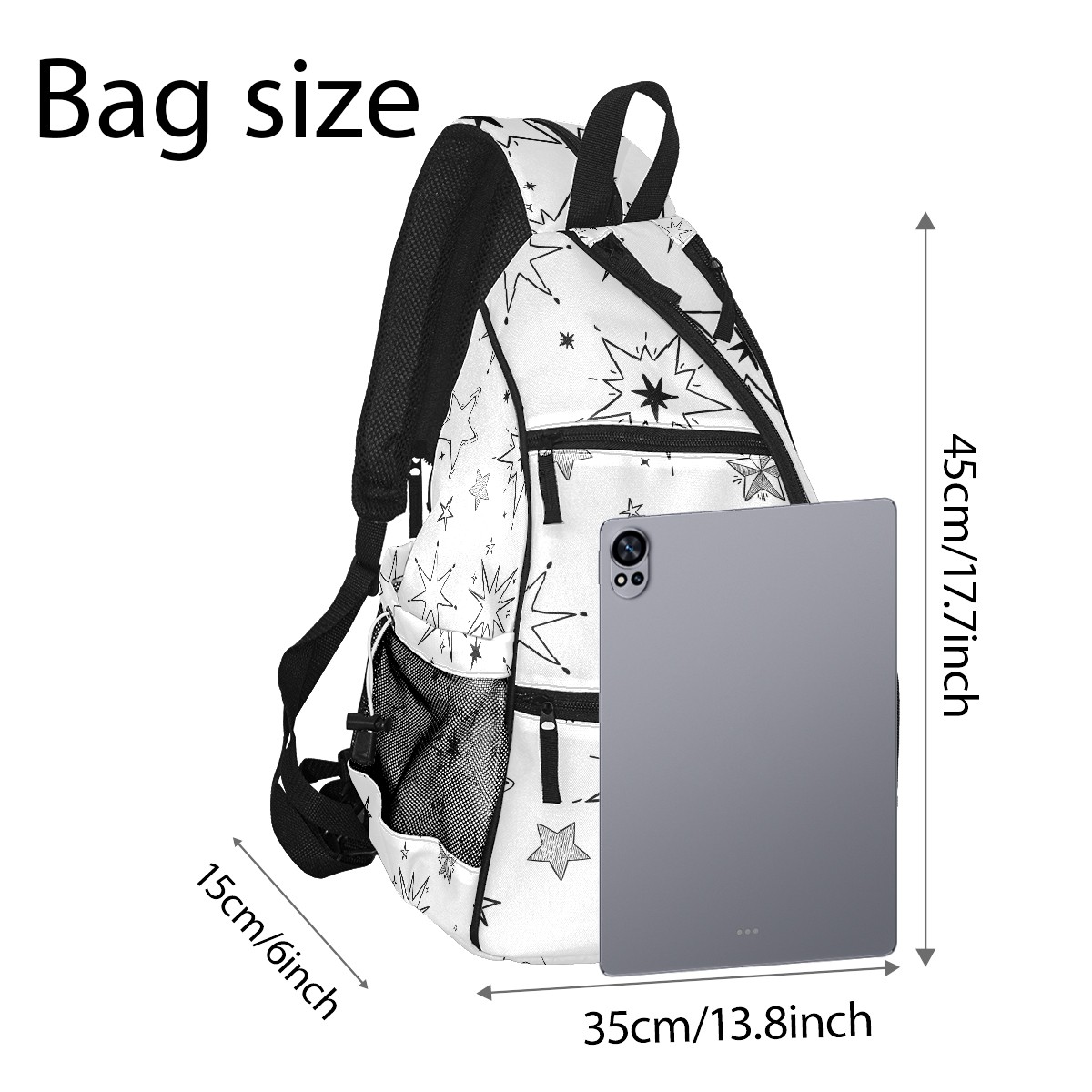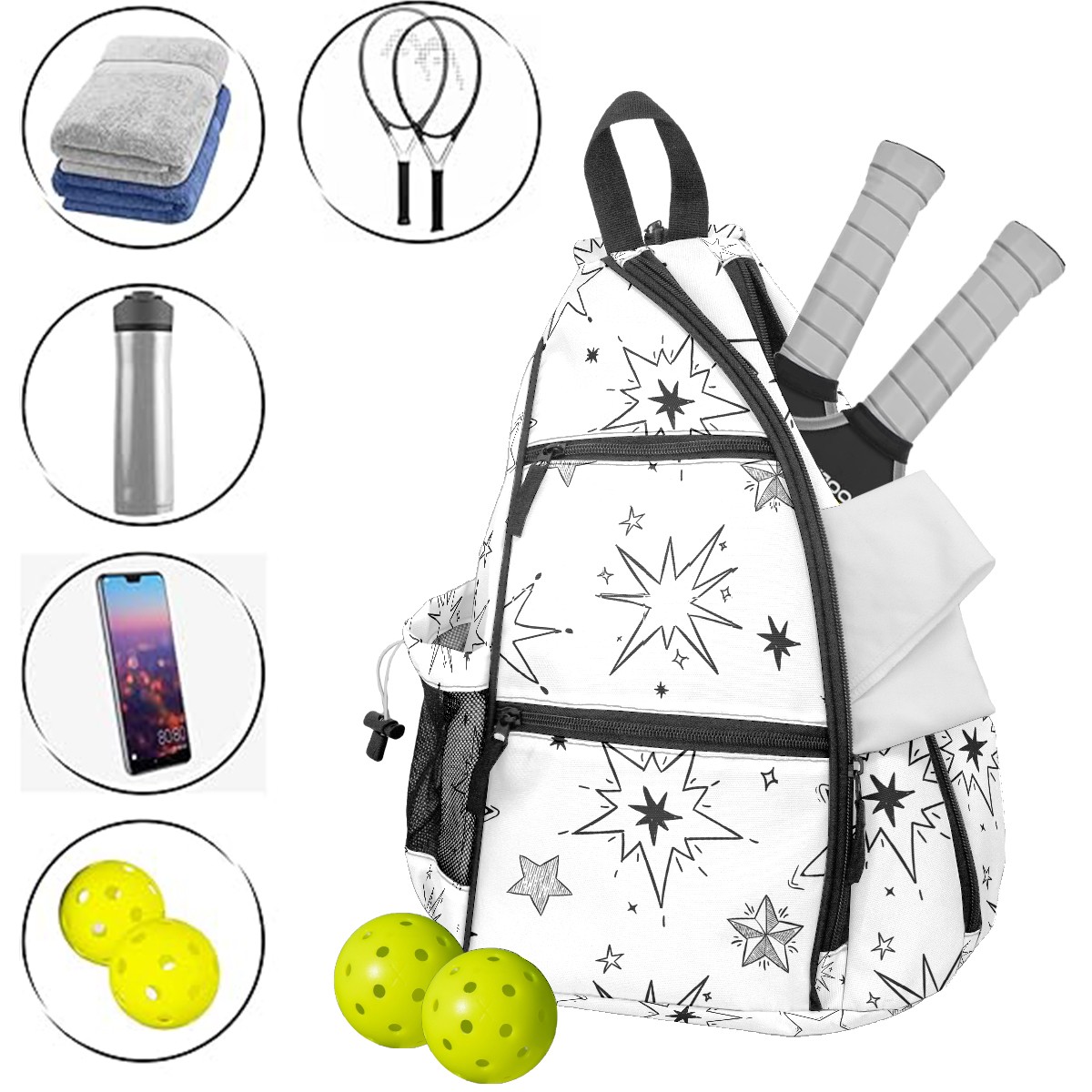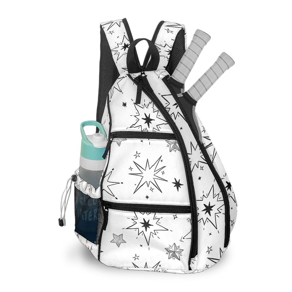 Multifunctional Pickleball Bag,Large Capacity Sports Pickleball Racket Bag, Water Bottle Holder and Fence Hook,Suitable for Both Men Women -Hand Drawn Stars