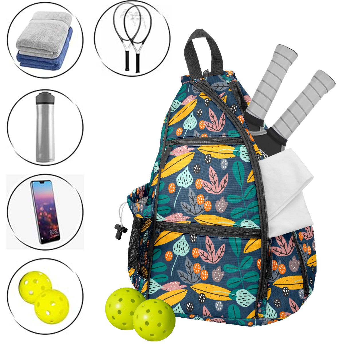 Multifunctional Pickleball Bag,Large Capacity Sports Pickleball Racket Bag, Water Bottle Holder and Fence Hook,Suitable for Both Men Women -Floral