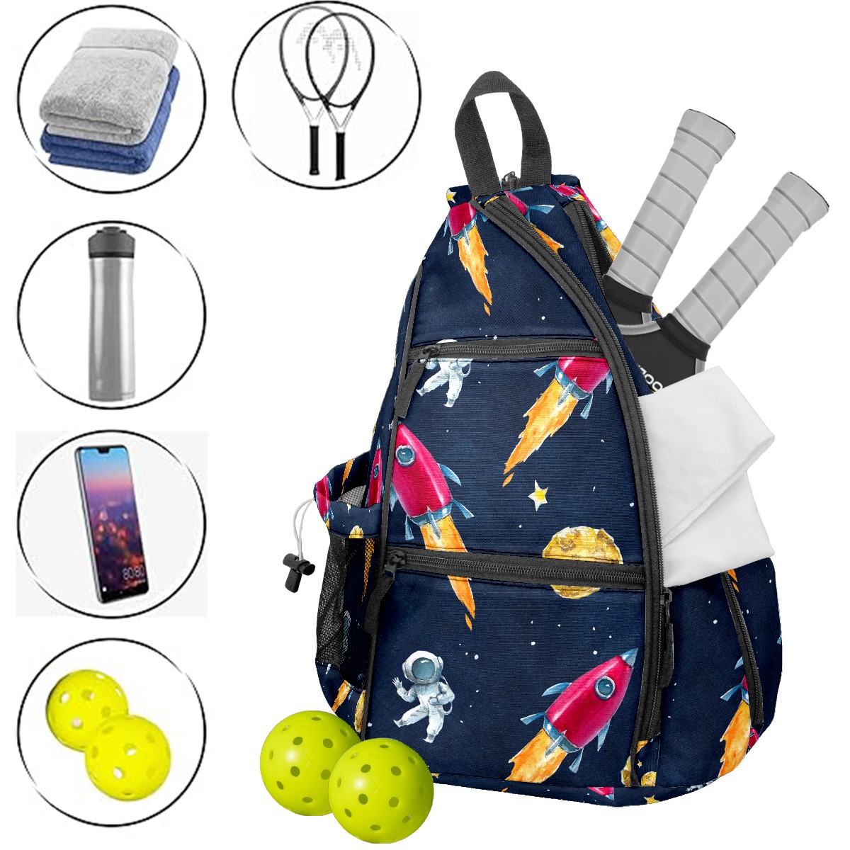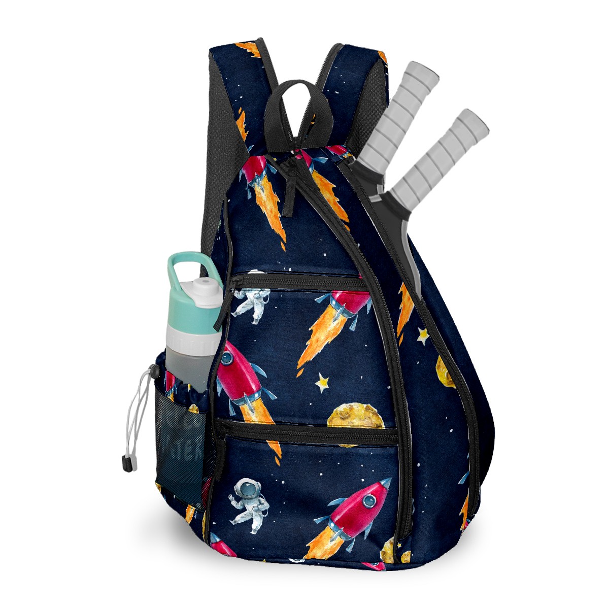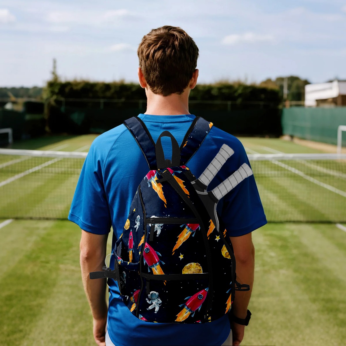 Multifunctional Pickleball Bag,Large Capacity Sports Pickleball Racket Bag, Water Bottle Holder and Fence Hook,Suitable for Both Men Women -Spaceman Rocket Moon