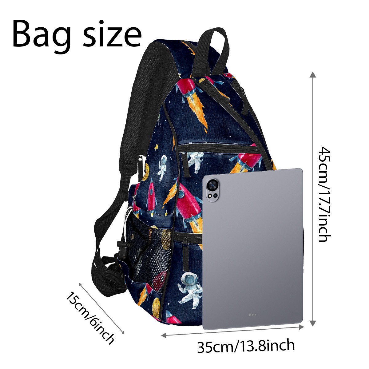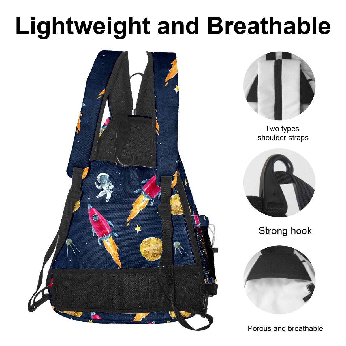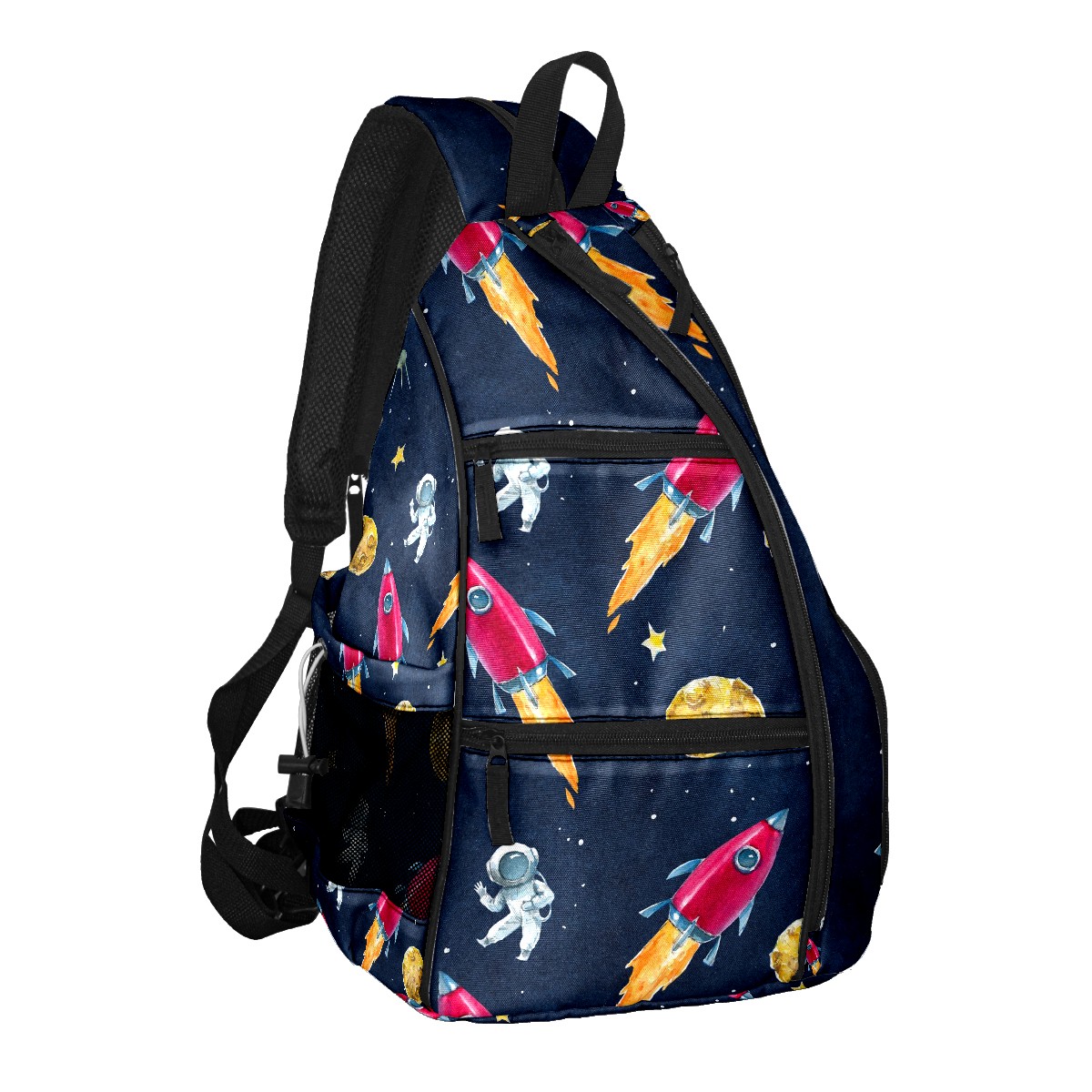 Multifunctional Pickleball Bag,Large Capacity Sports Pickleball Racket Bag, Water Bottle Holder and Fence Hook,Suitable for Both Men Women -Spaceman Rocket Moon