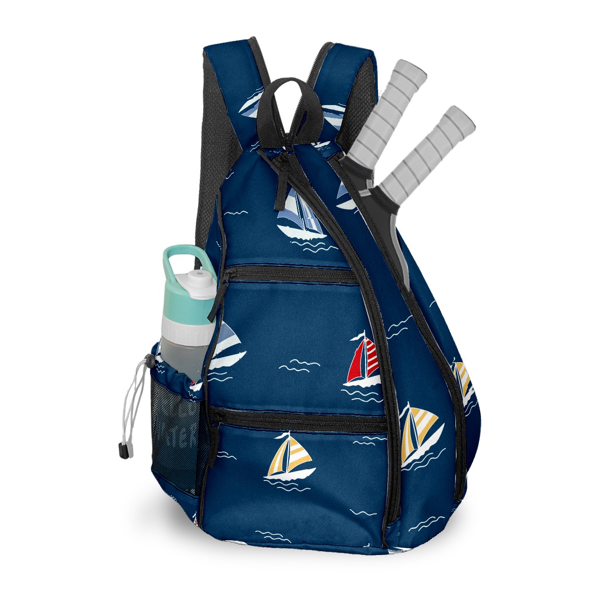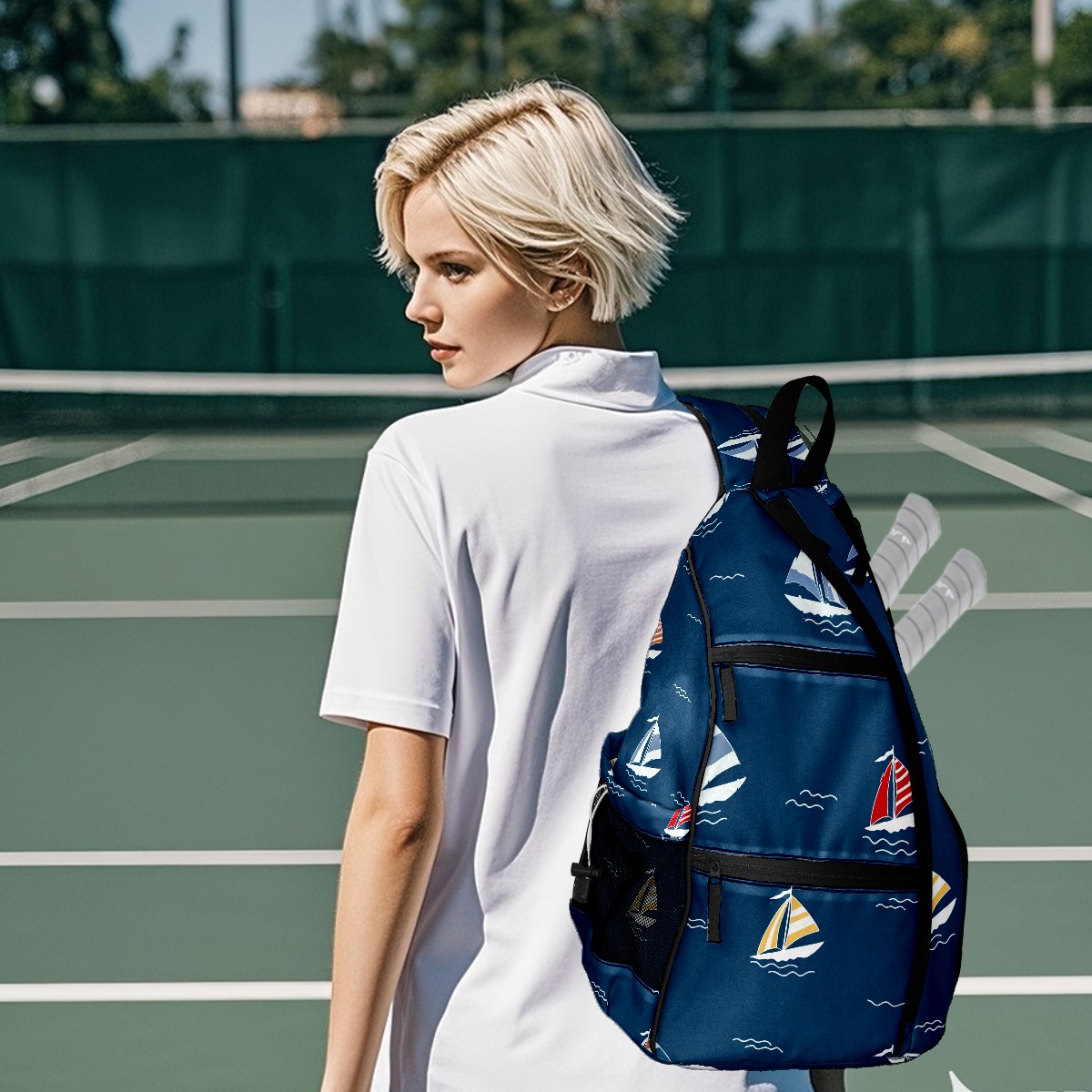 Multifunctional Pickleball Bag,Large Capacity Sports Pickleball Racket Bag, Water Bottle Holder and Fence Hook,Suitable for Both Men Women -Sailing On Sea