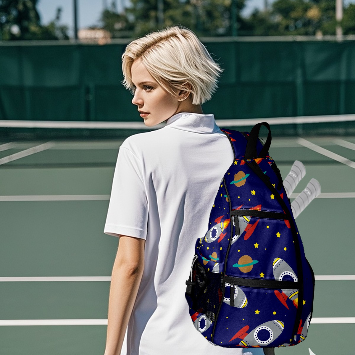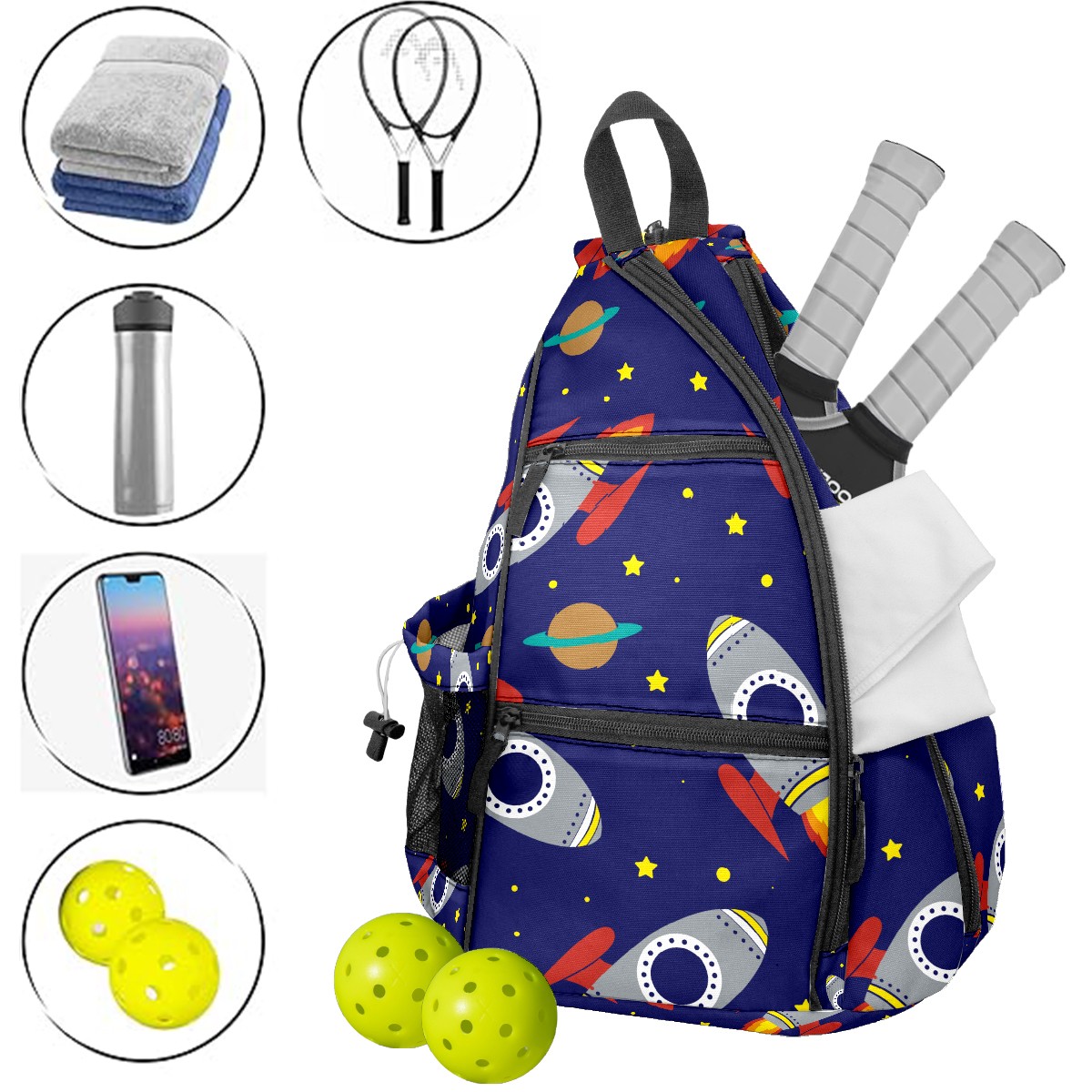 Multifunctional Pickleball Bag,Large Capacity Sports Pickleball Racket Bag, Water Bottle Holder and Fence Hook,Suitable for Both Men Women -Rocket