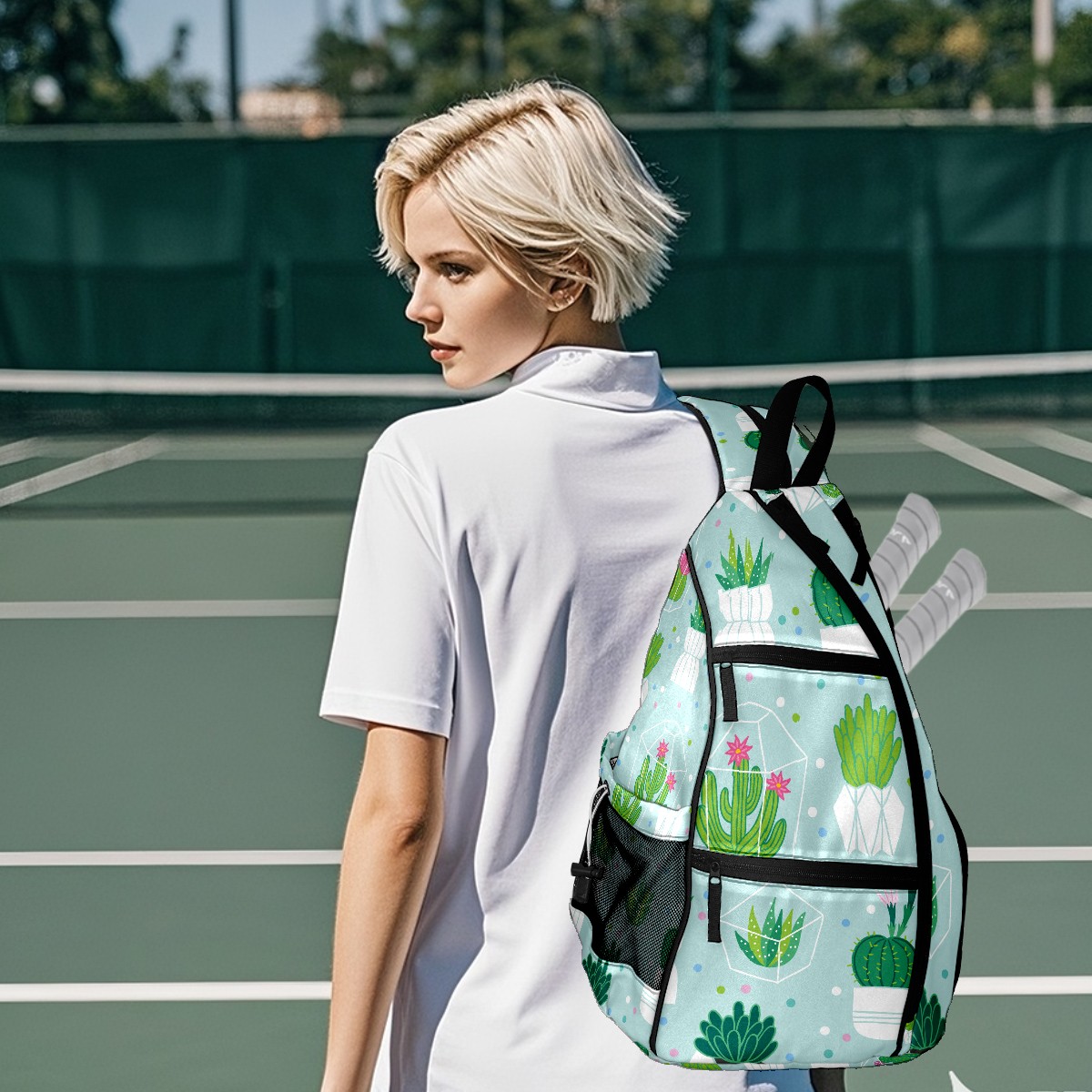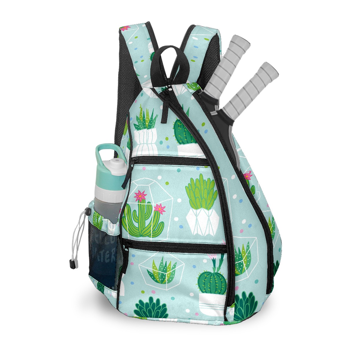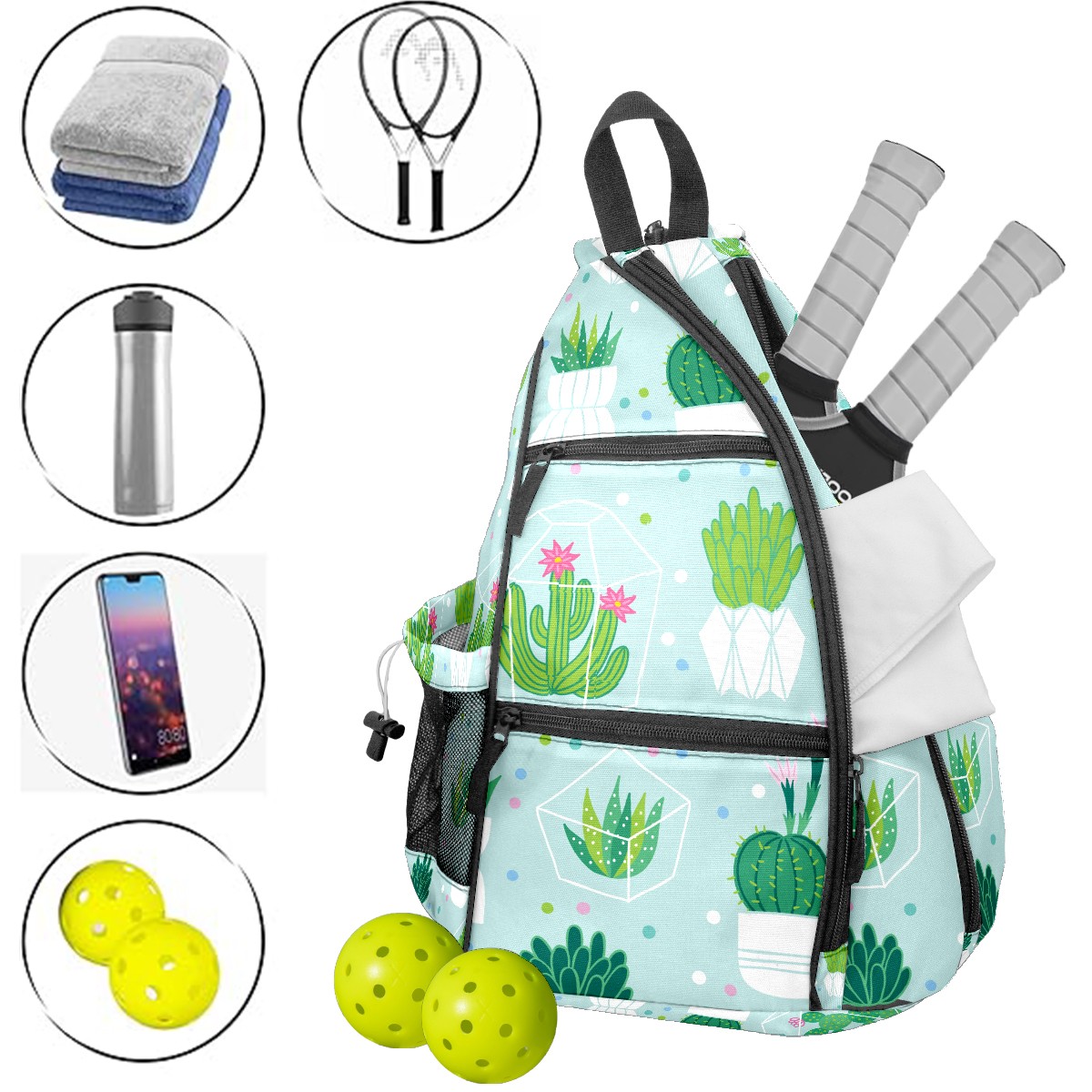 Multifunctional Pickleball Bag,Large Capacity Sports Pickleball Racket Bag, Water Bottle Holder and Fence Hook,Suitable for Both Men Women -Cacti