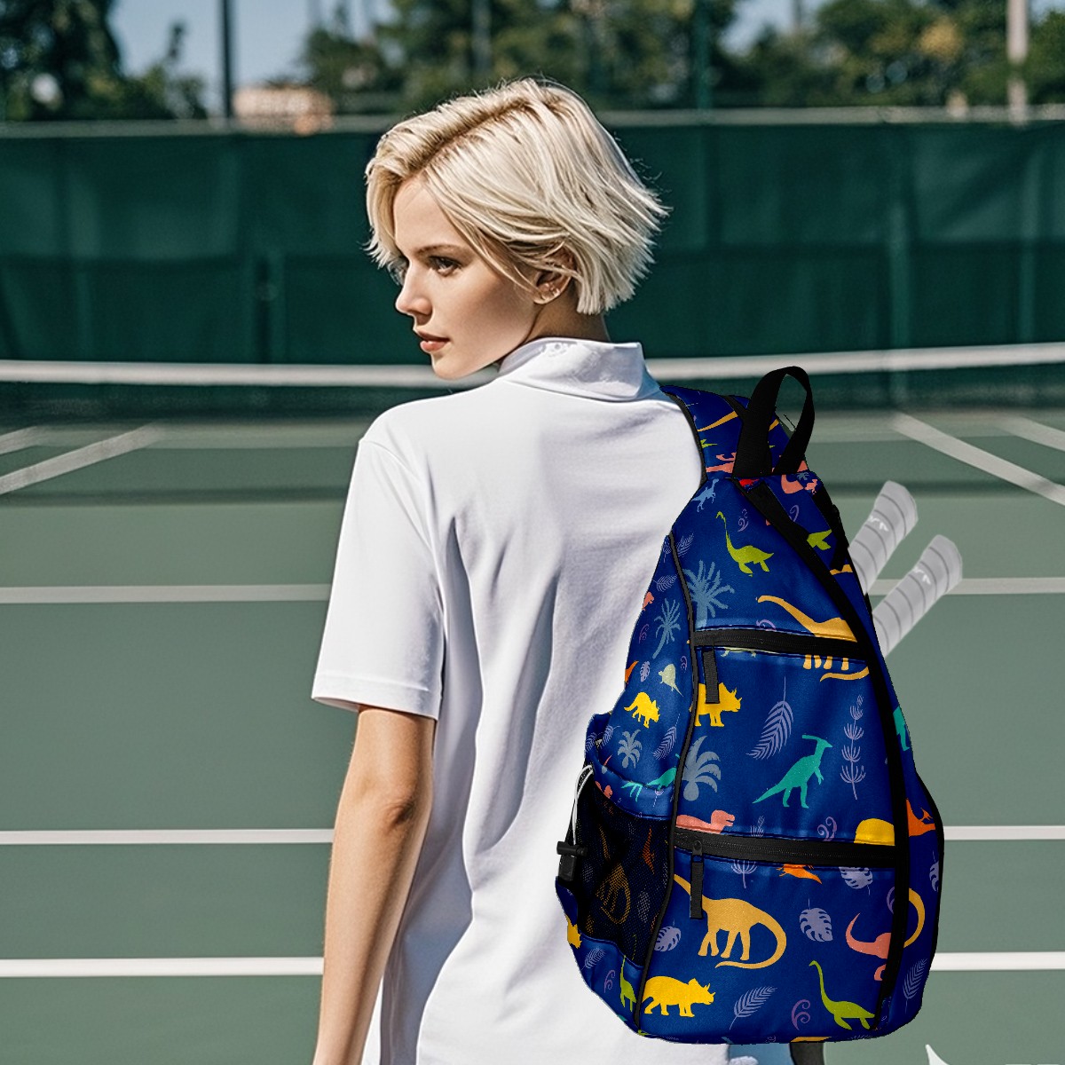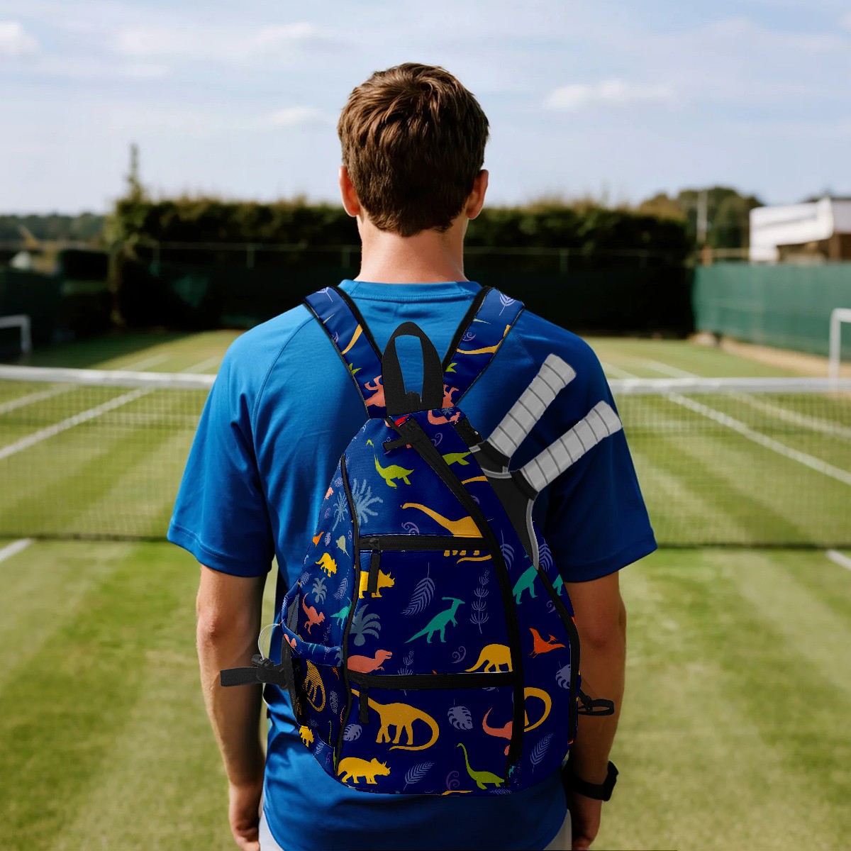 Multifunctional Pickleball Bag,Large Capacity Sports Pickleball Racket Bag, Water Bottle Holder and Fence Hook,Suitable for Both Men Women -Dinosaur