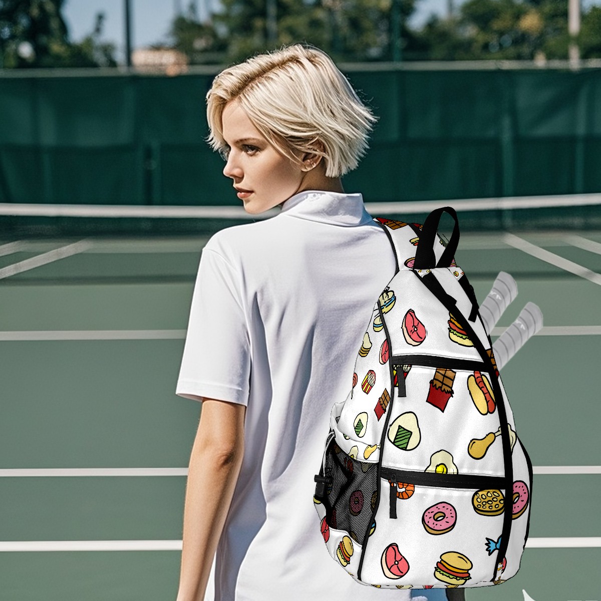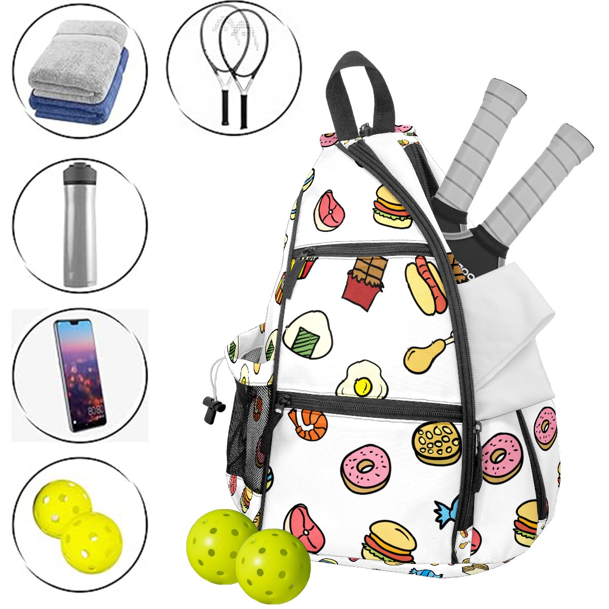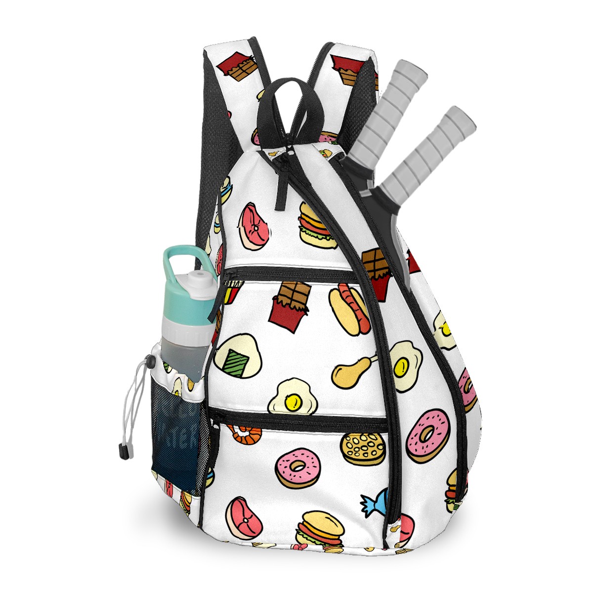 Multifunctional Pickleball Bag,Large Capacity Sports Pickleball Racket Bag, Water Bottle Holder and Fence Hook,Suitable for Both Men Women -Cartoon Food Pattern