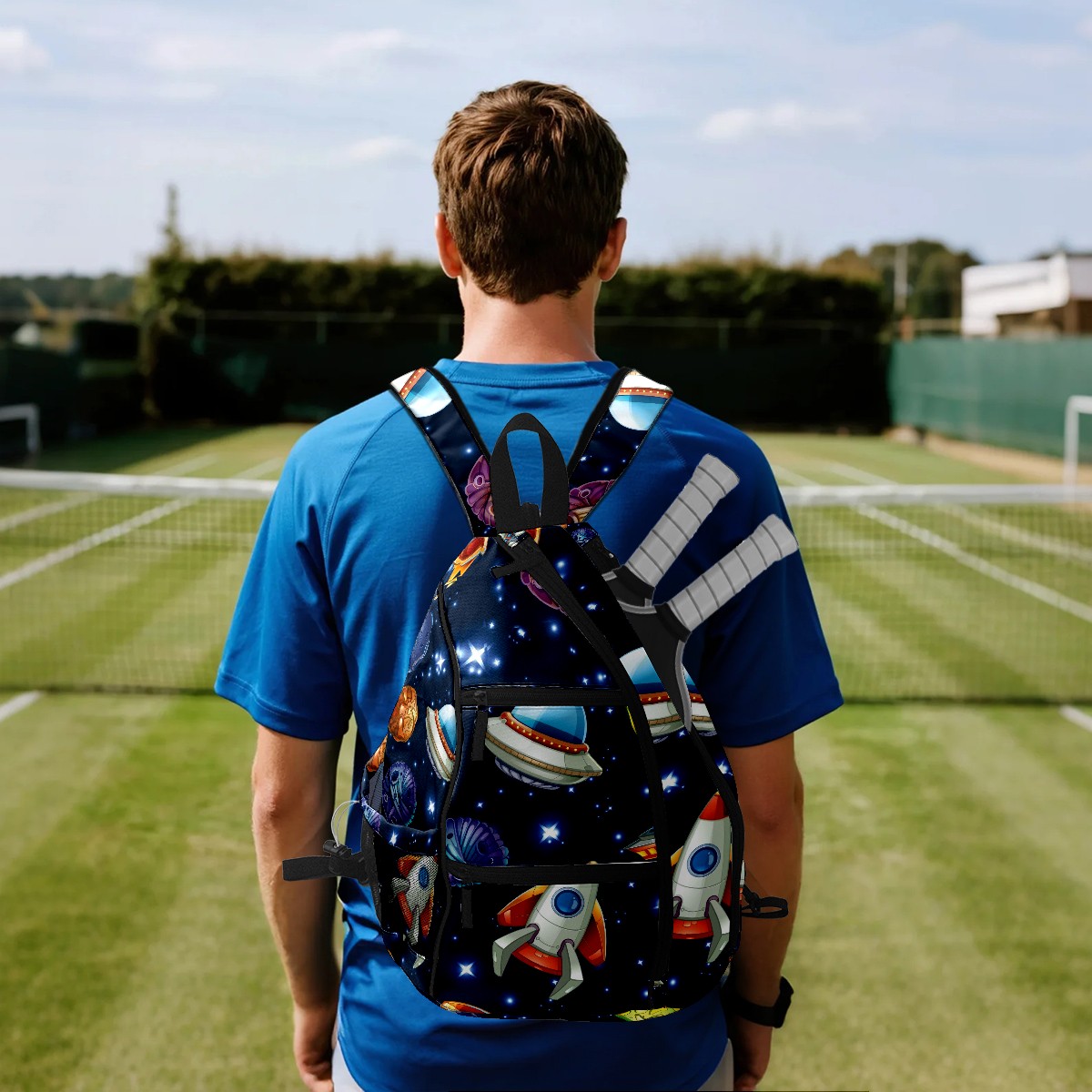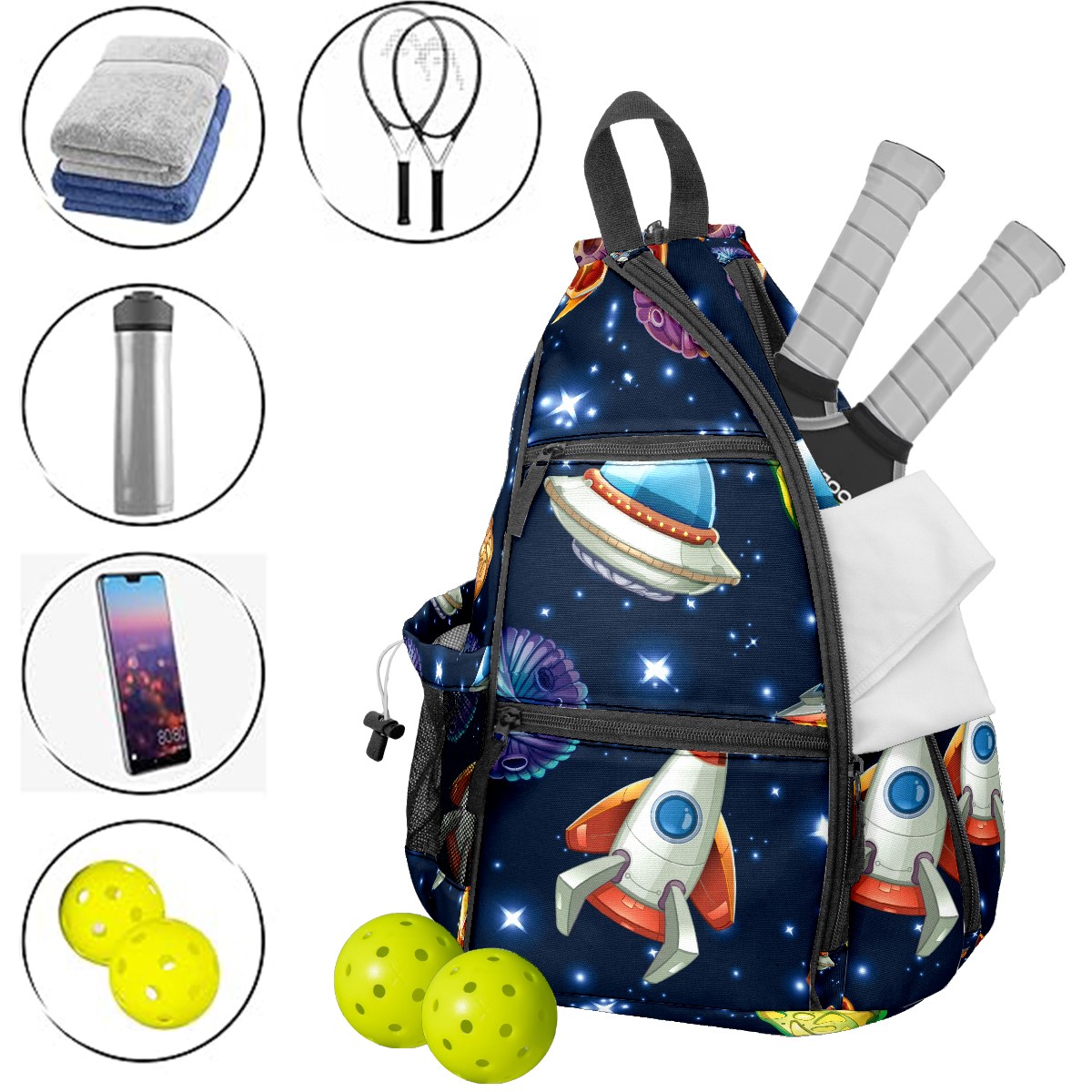 Multifunctional Pickleball Bag,Large Capacity Sports Pickleball Racket Bag, Water Bottle Holder and Fence Hook,Suitable for Both Men Women -Outer Space