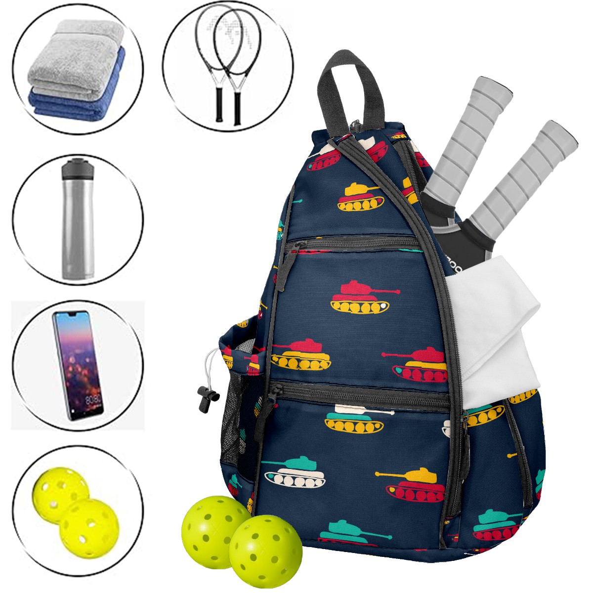 Multifunctional Pickleball Bag,Large Capacity Sports Pickleball Racket Bag, Water Bottle Holder and Fence Hook,Suitable for Both Men Women -Cartoon Helicopter