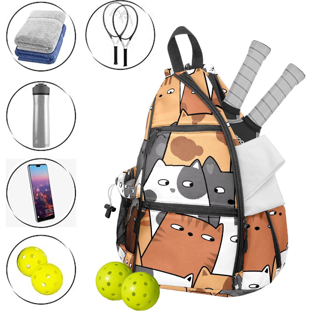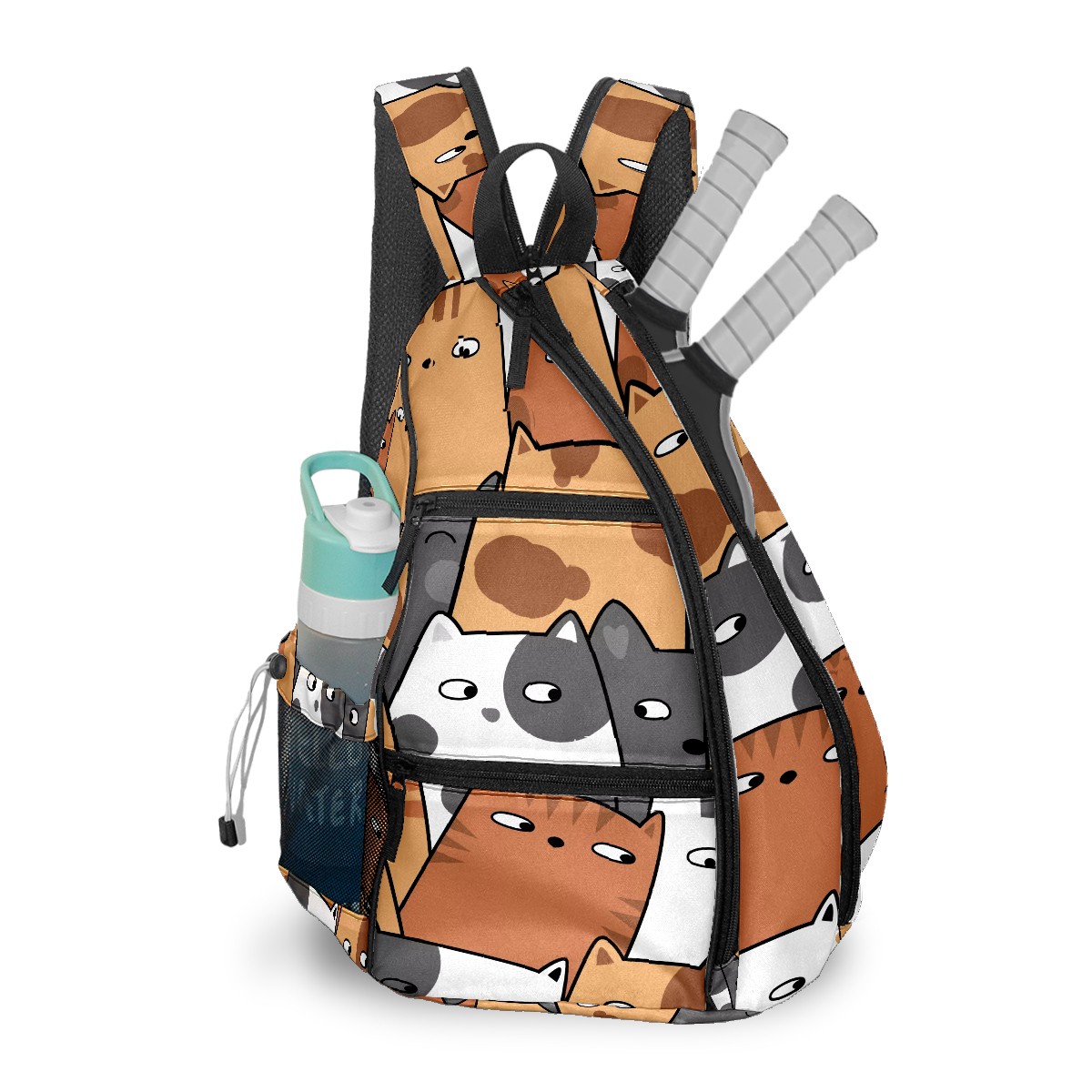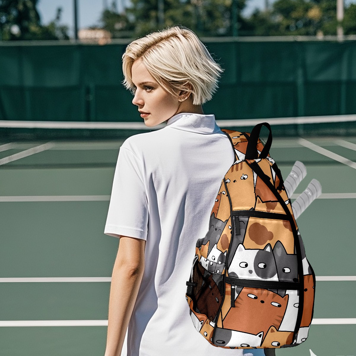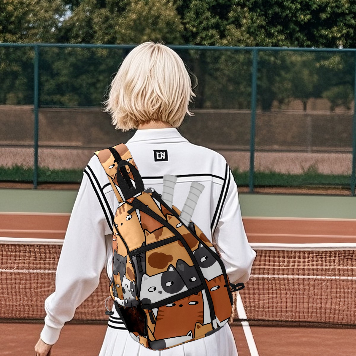 Multifunctional Pickleball Bag,Large Capacity Sports Pickleball Racket Bag, Water Bottle Holder and Fence Hook,Suitable for Both Men Women -Cute Cat Pattern