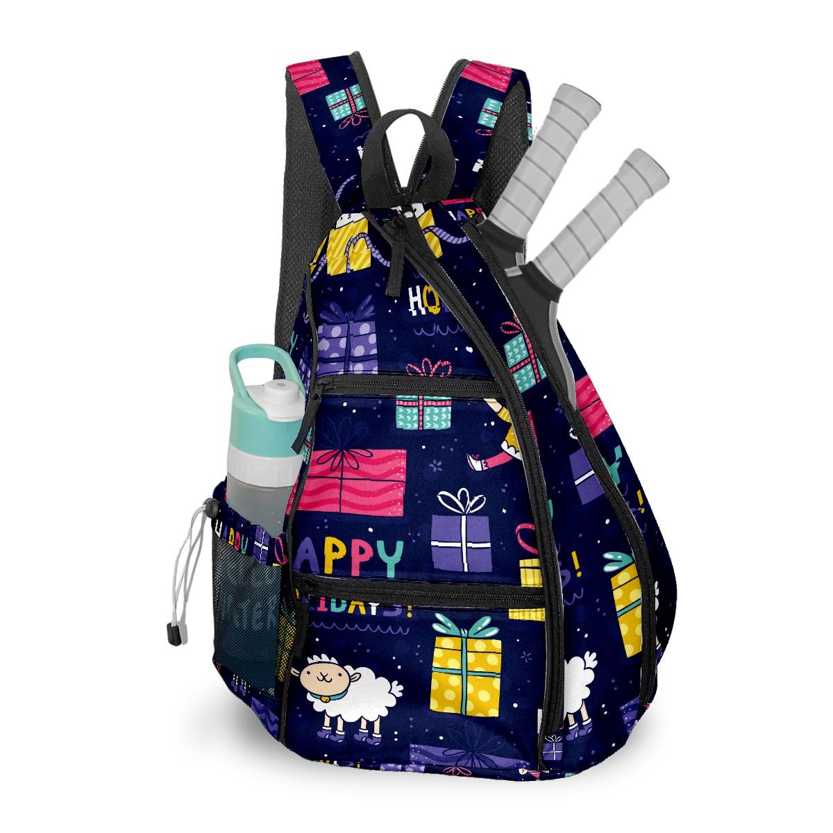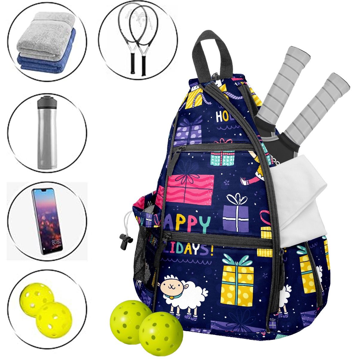 Multifunctional Pickleball Bag,Large Capacity Sports Pickleball Racket Bag, Water Bottle Holder and Fence Hook,Suitable for Both Men Women -Merry Christmas Happy Holidays