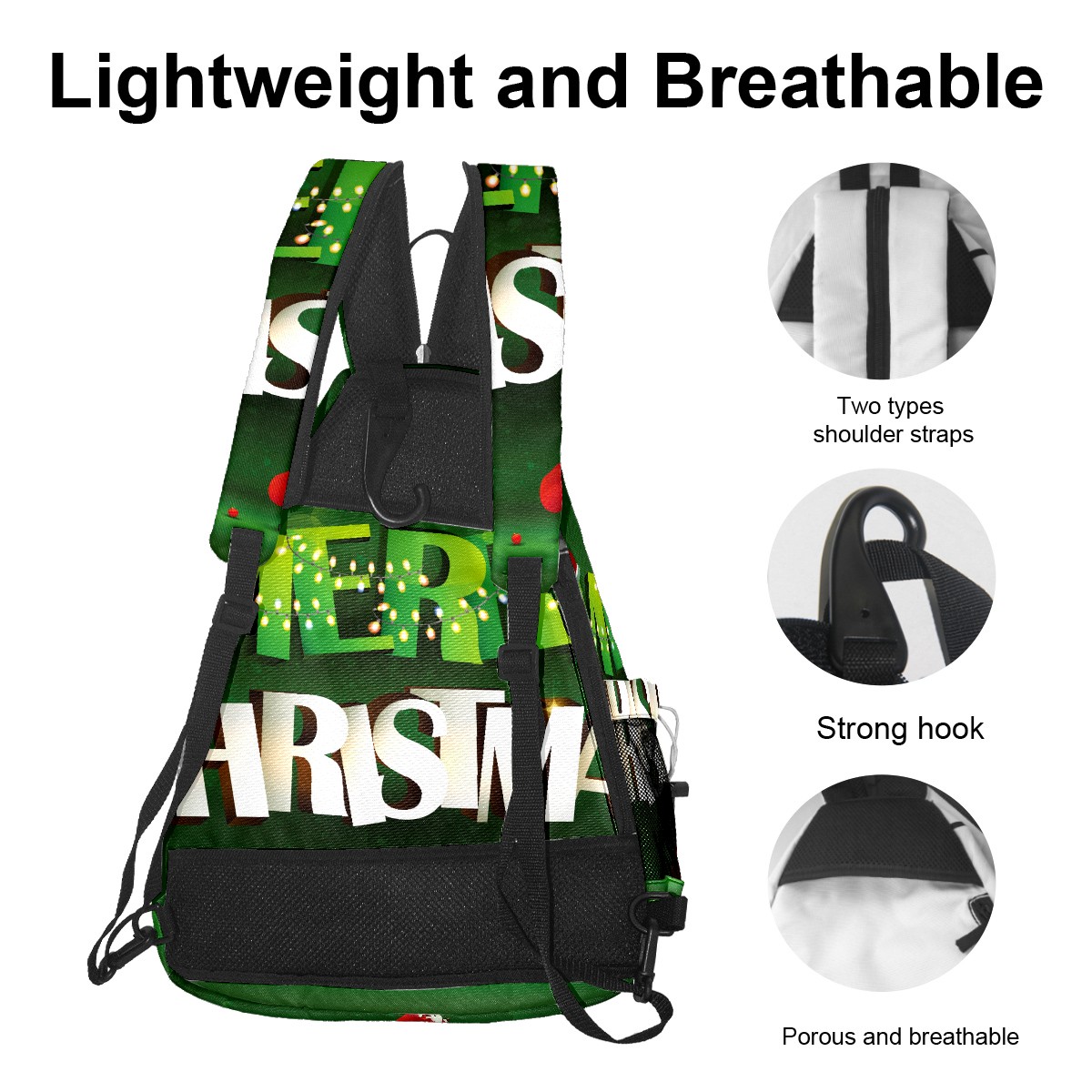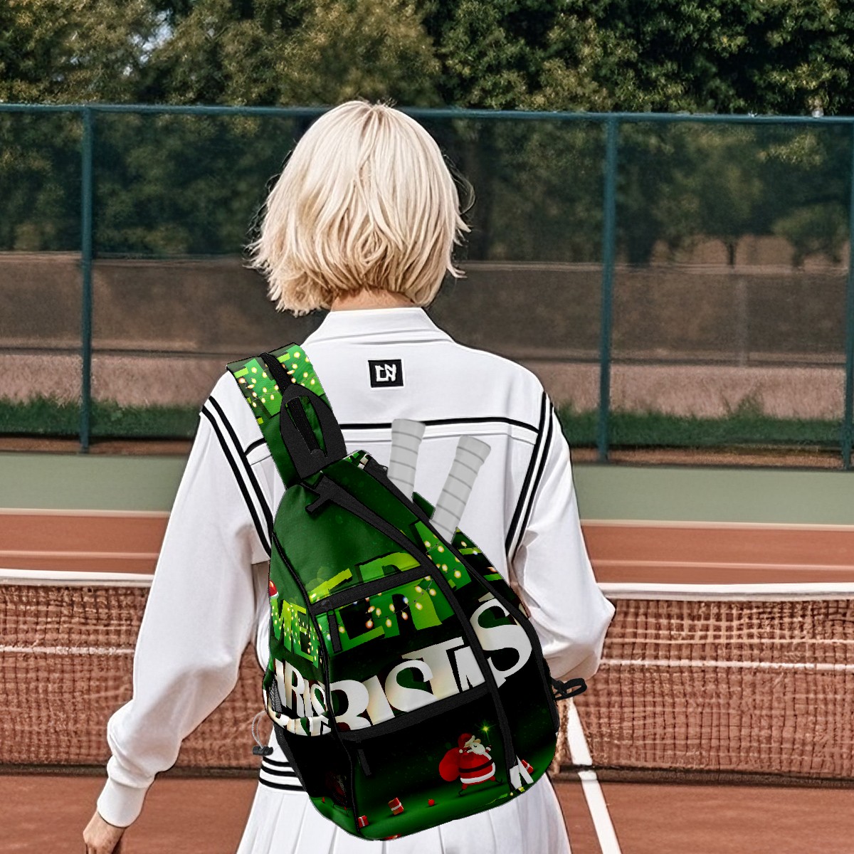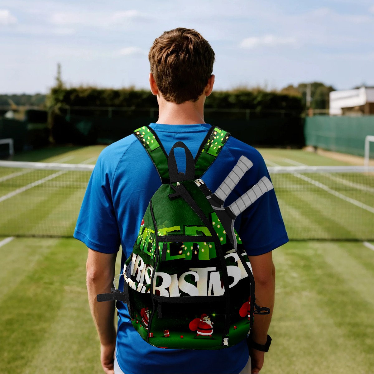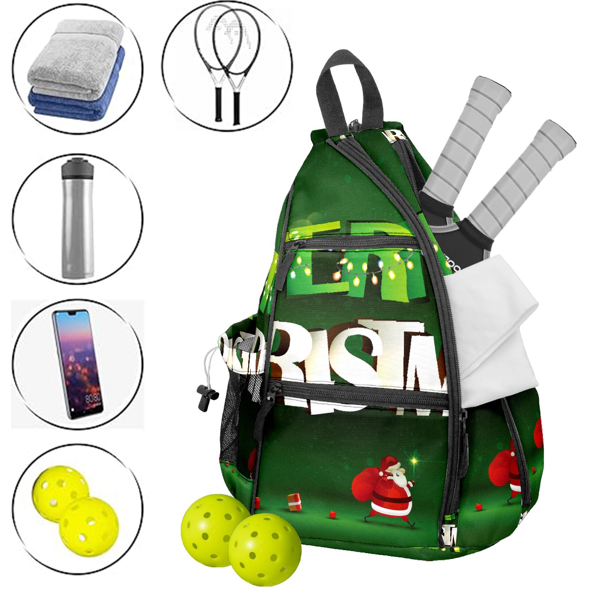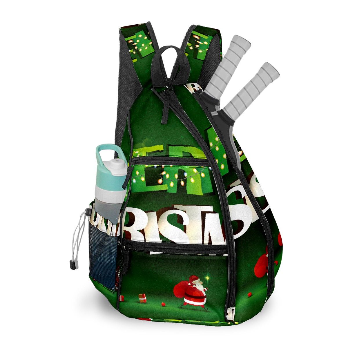 Multifunctional Pickleball Bag,Large Capacity Sports Pickleball Racket Bag, Water Bottle Holder and Fence Hook,Suitable for Both Men Women -Green Merry Christmas