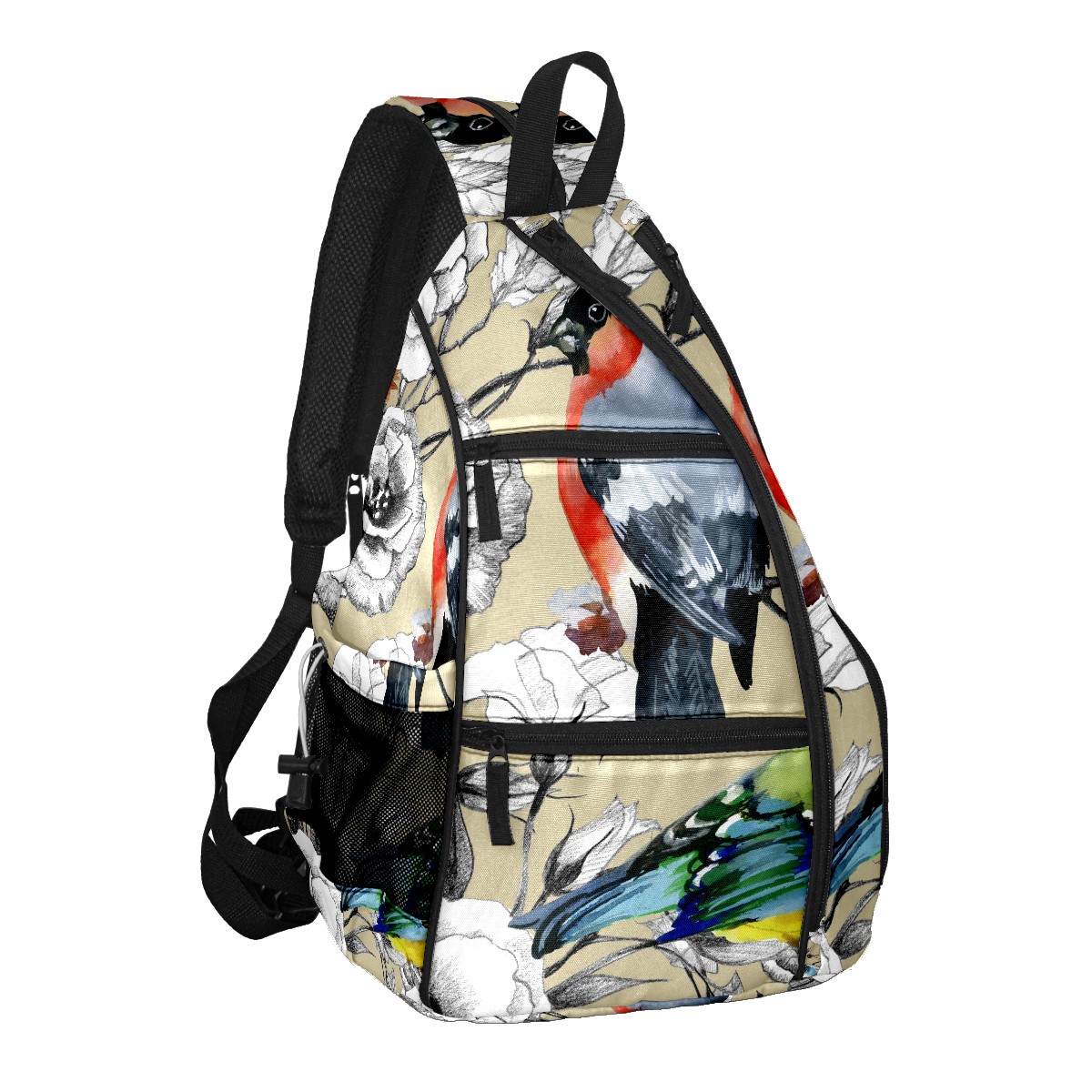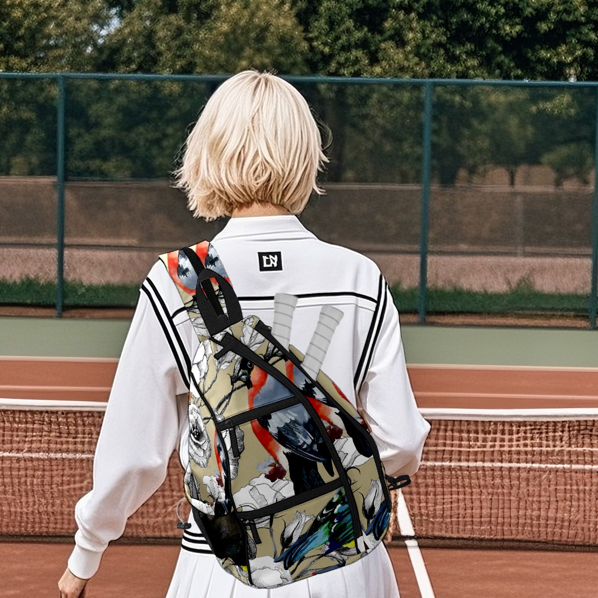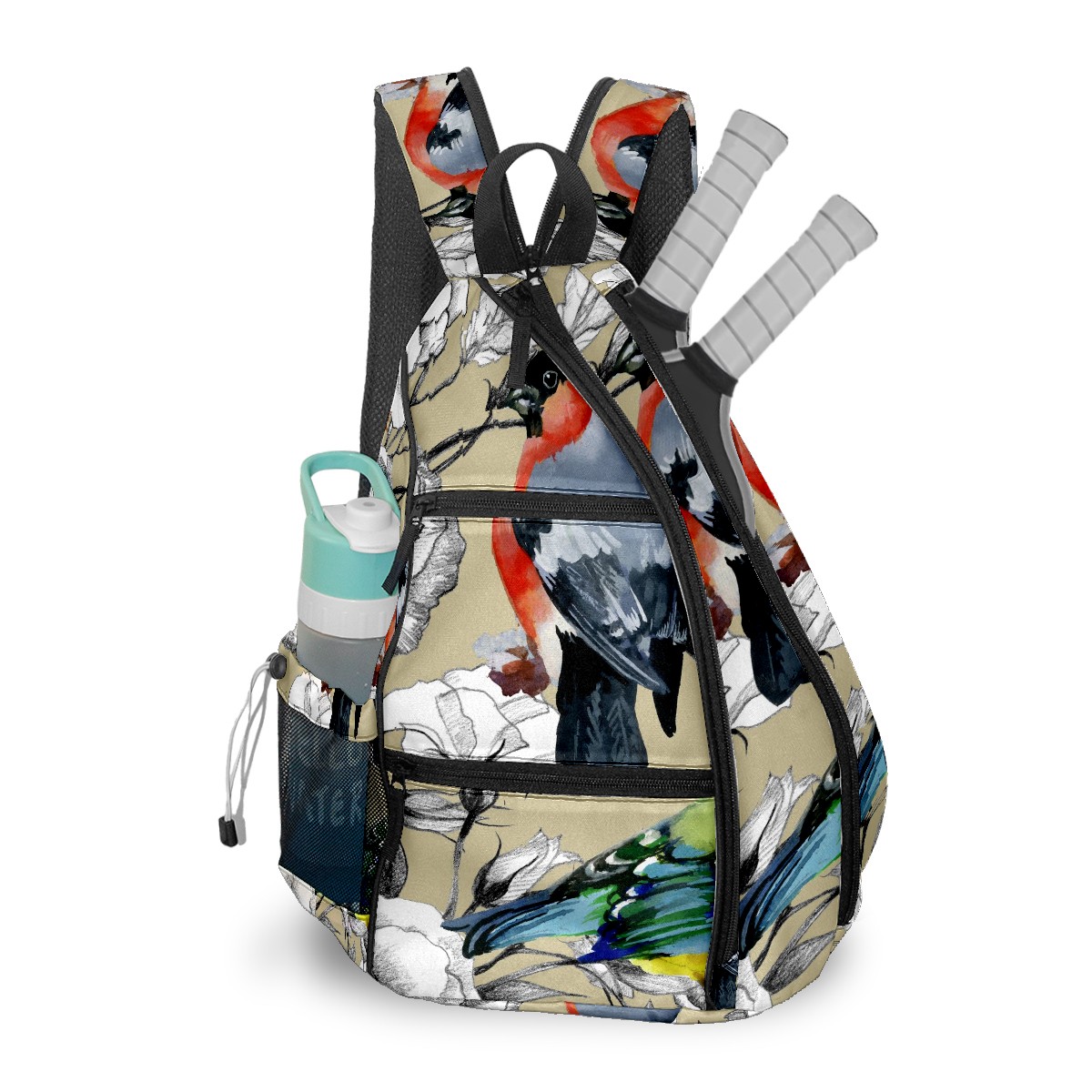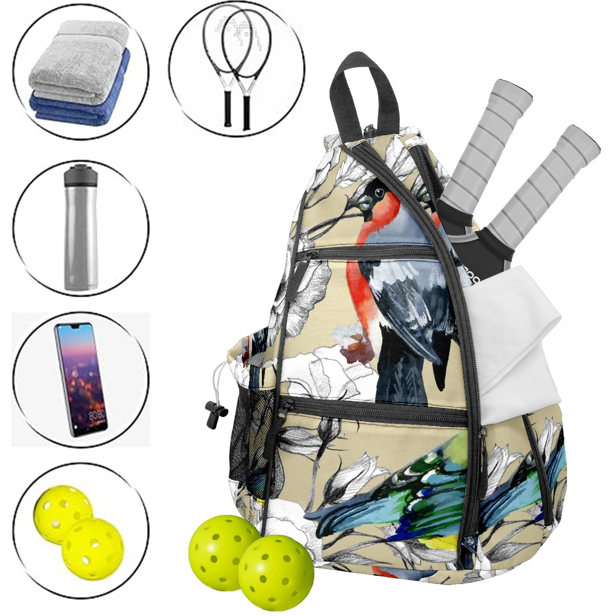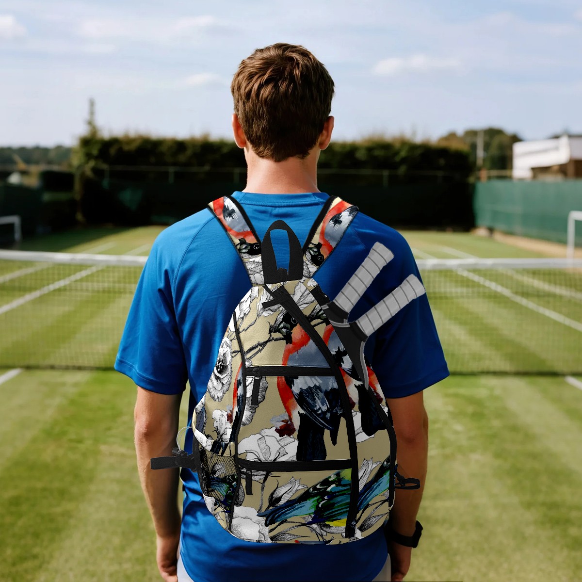 Multifunctional Pickleball Bag,Large Capacity Sports Pickleball Racket Bag, Water Bottle Holder and Fence Hook,Suitable for Both Men Women -Parrot And Flower