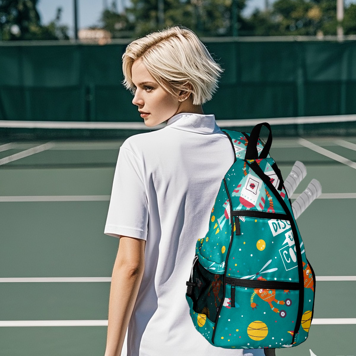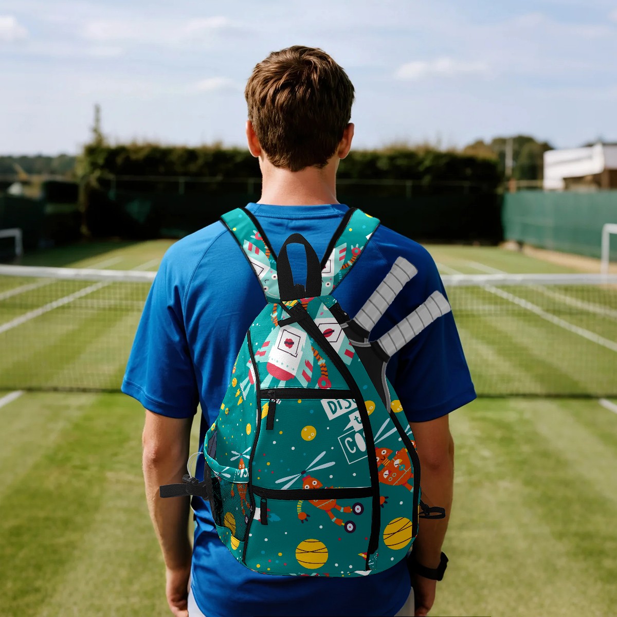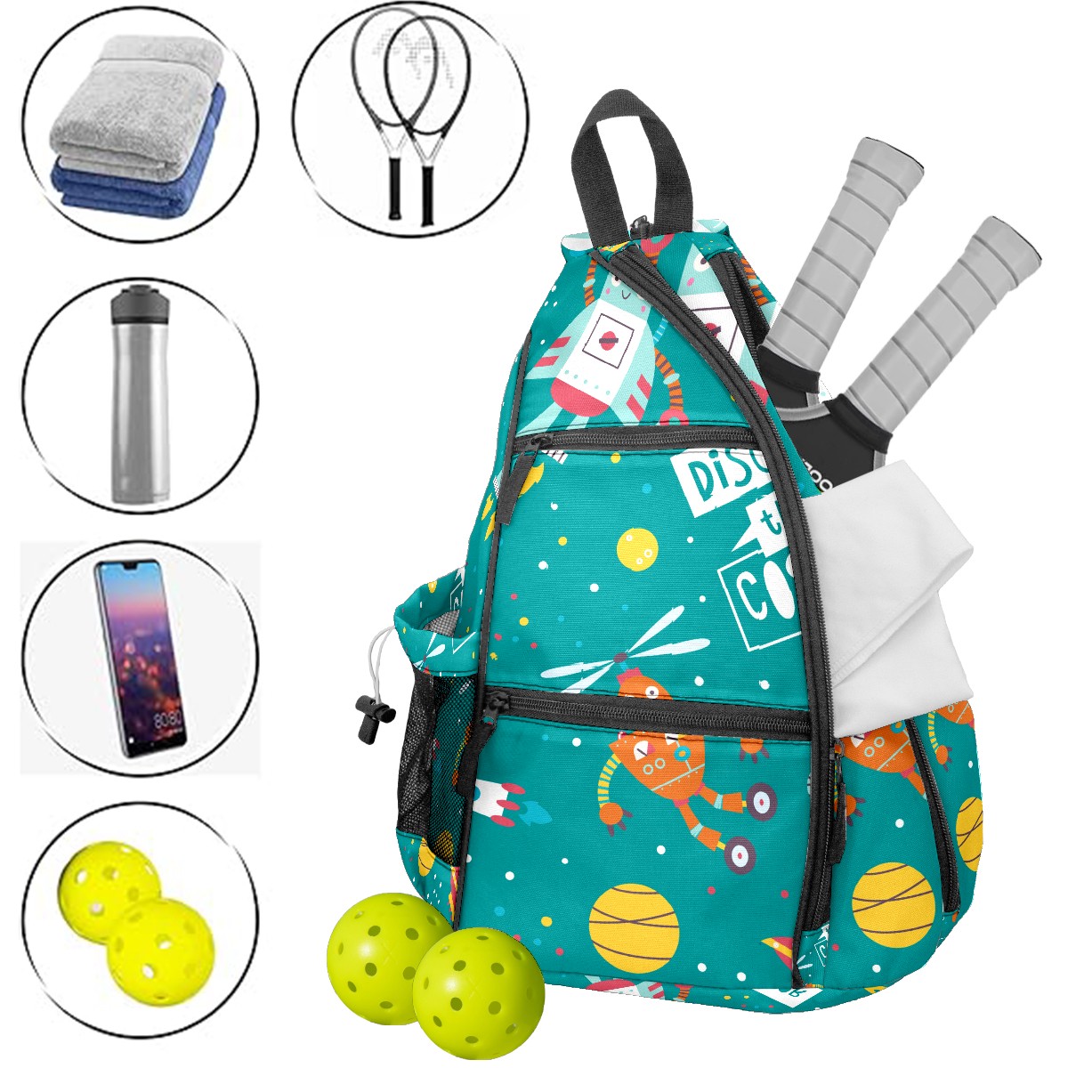 Multifunctional Pickleball Bag,Large Capacity Sports Pickleball Racket Bag, Water Bottle Holder and Fence Hook,Suitable for Both Men Women -Rocket Astronaut