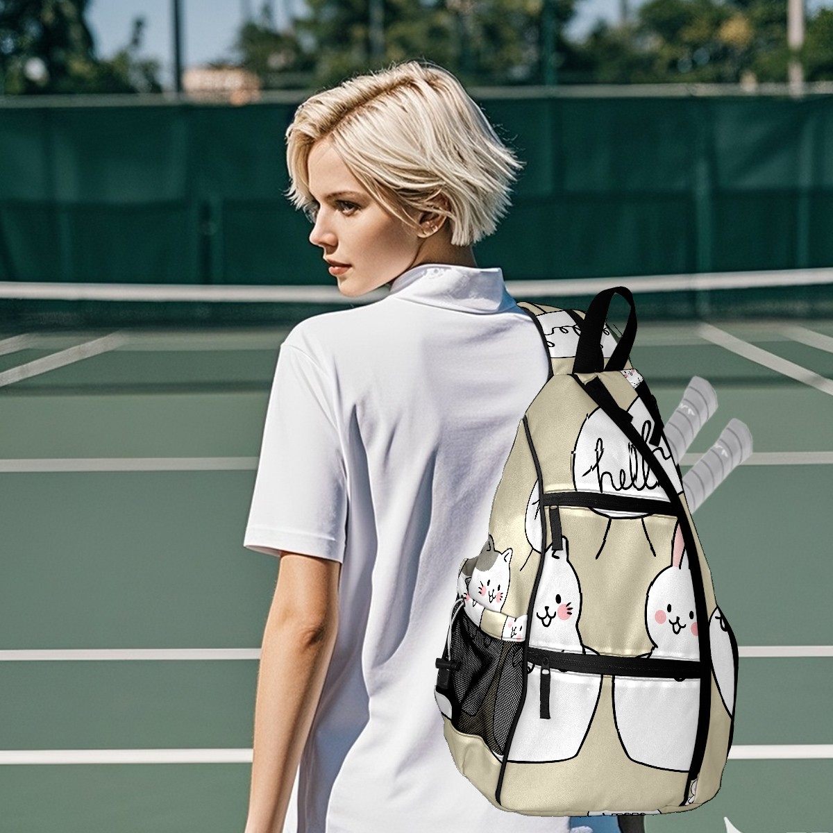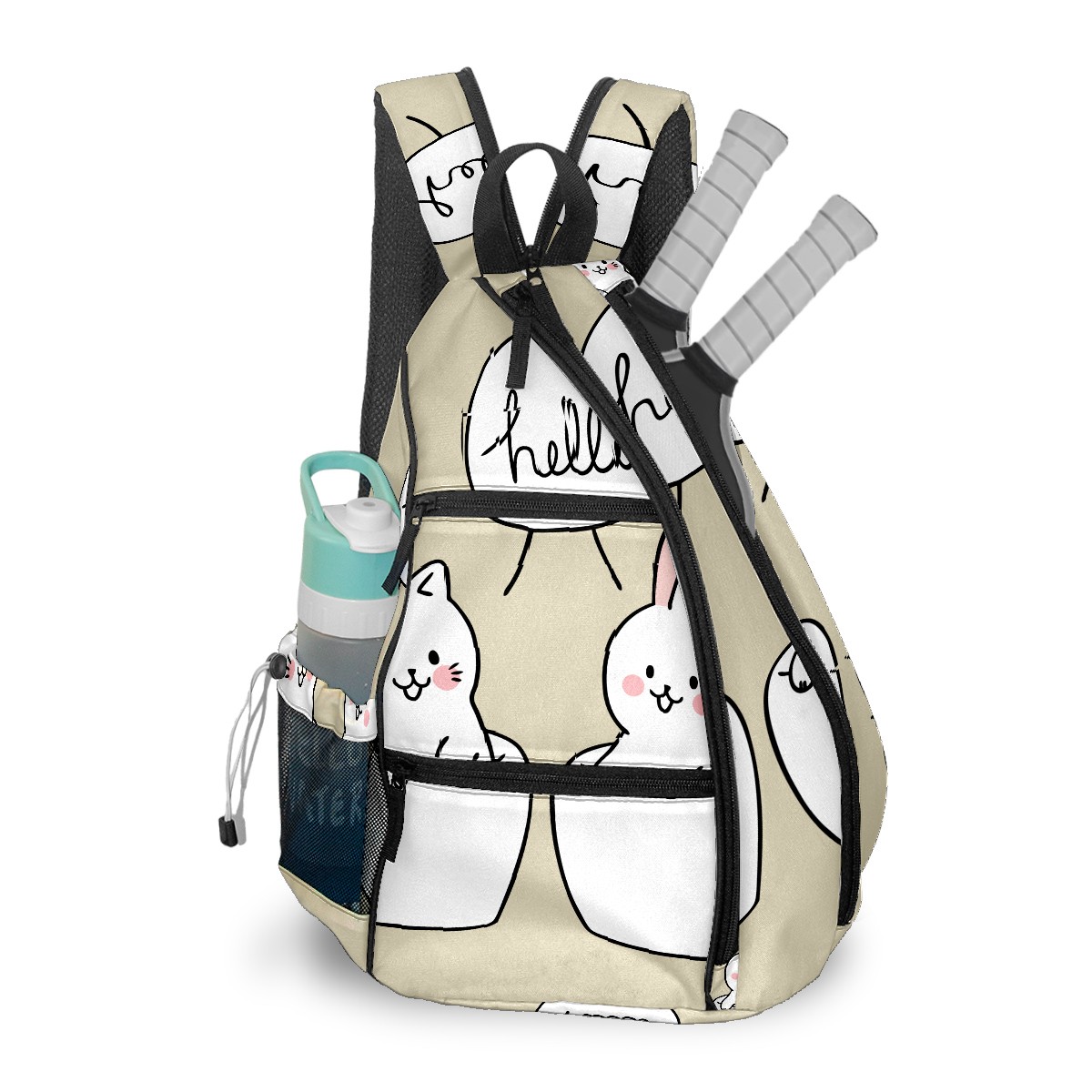 Multifunctional Pickleball Bag,Large Capacity Sports Pickleball Racket Bag, Water Bottle Holder and Fence Hook,Suitable for Both Men Women -Cute Cat And Rabbit