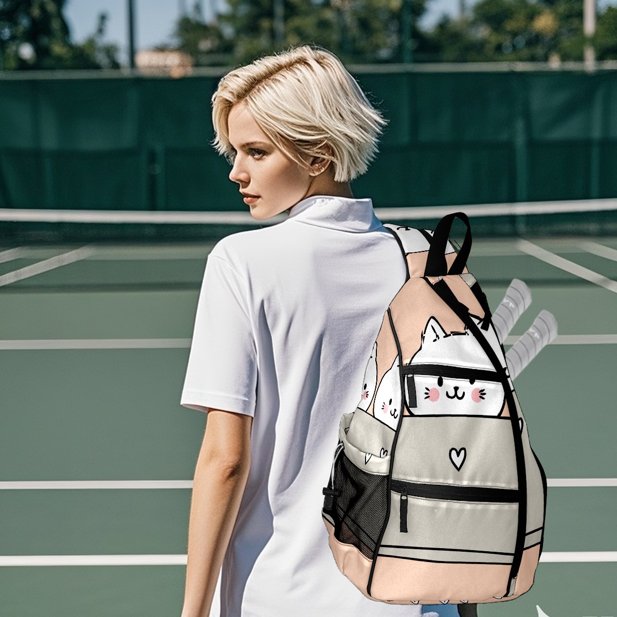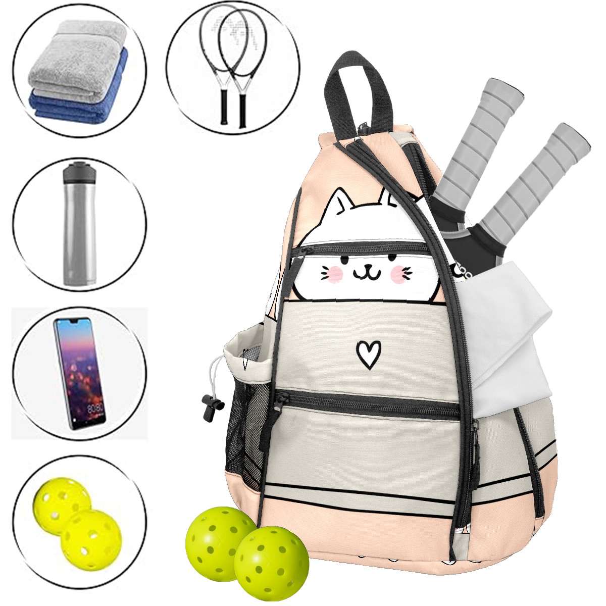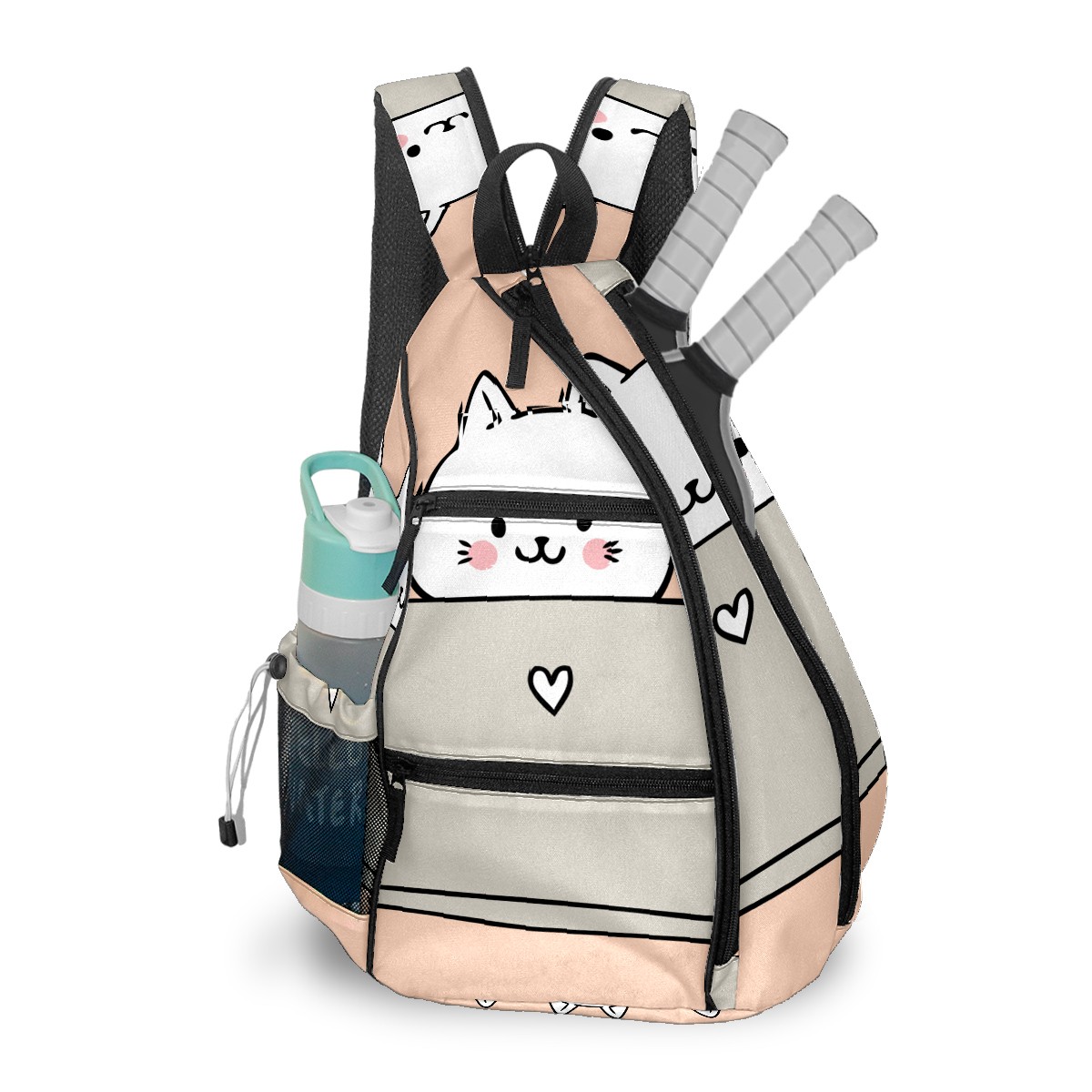 Multifunctional Pickleball Bag,Large Capacity Sports Pickleball Racket Bag, Water Bottle Holder and Fence Hook,Suitable for Both Men Women -Cartoon Cute Cats