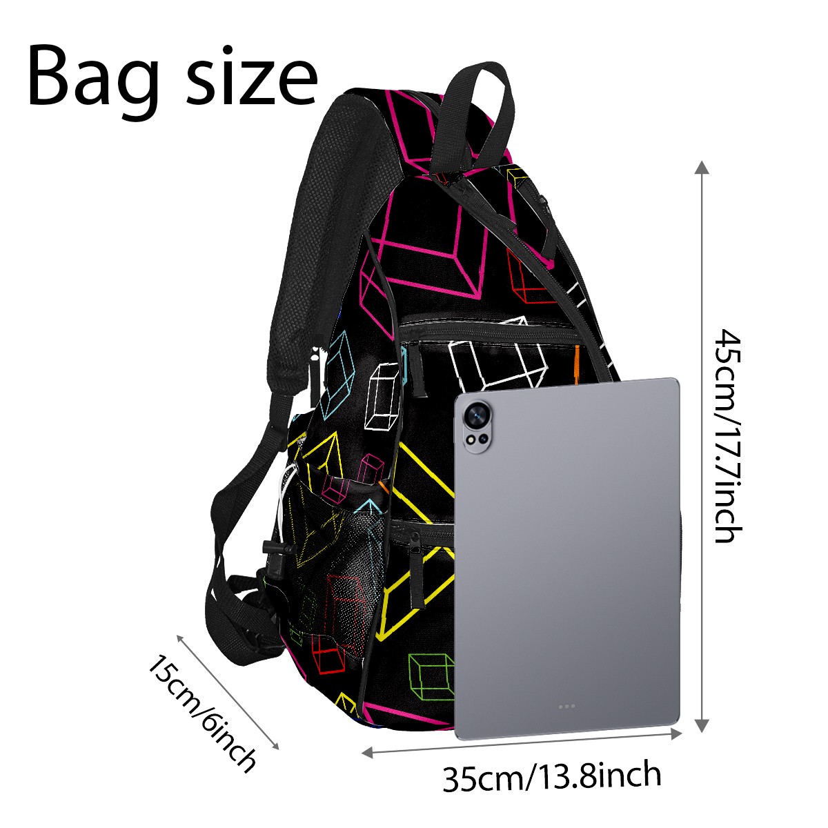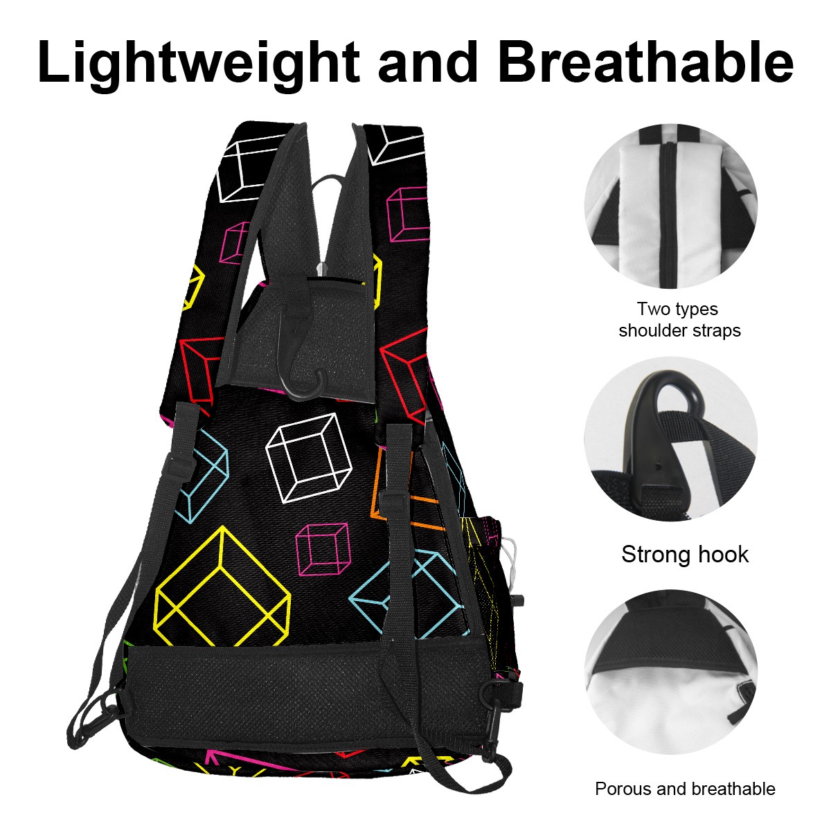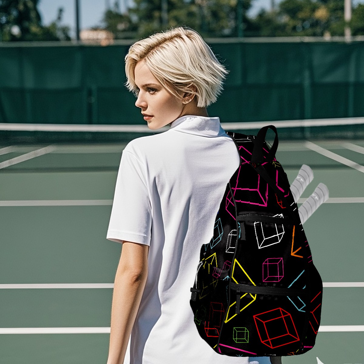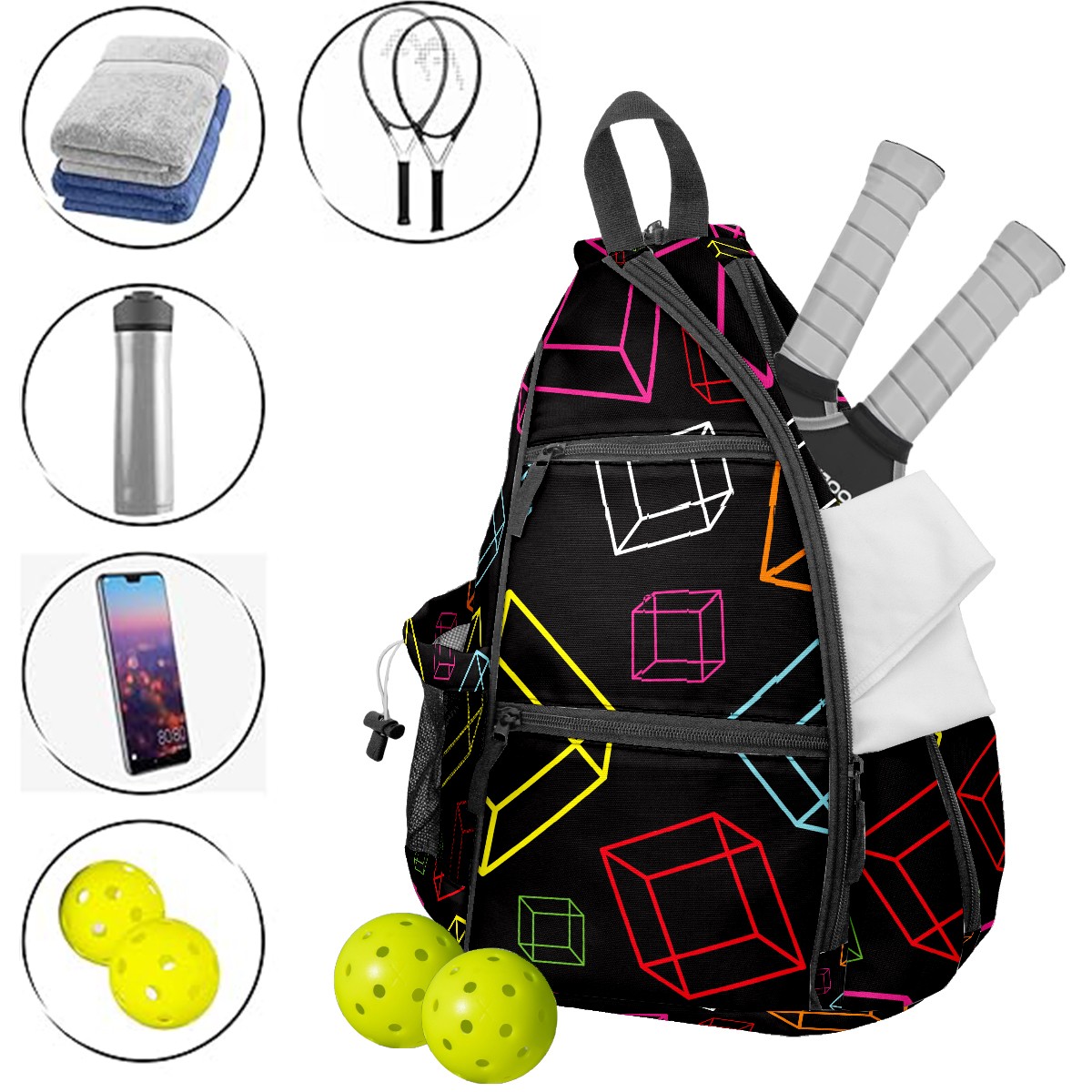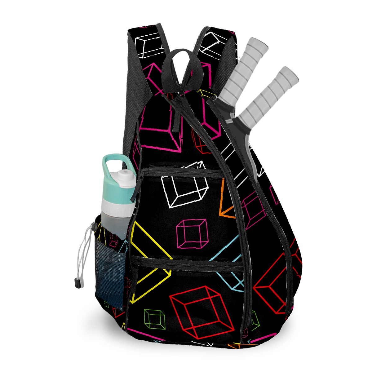 Multifunctional Pickleball Bag,Large Capacity Sports Pickleball Racket Bag, Water Bottle Holder and Fence Hook,Suitable for Both Men Women -Colorful Cube