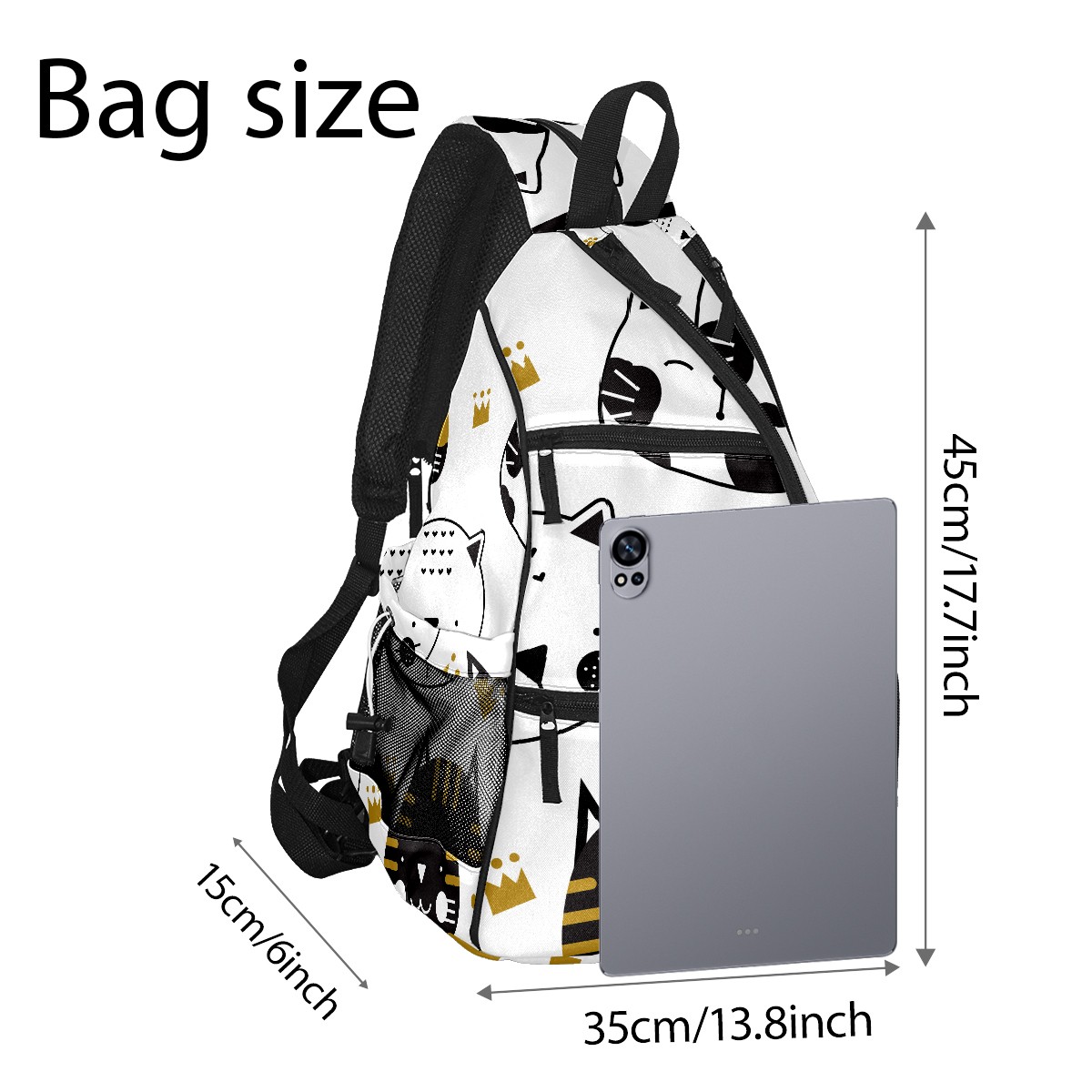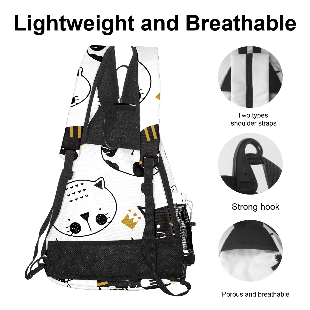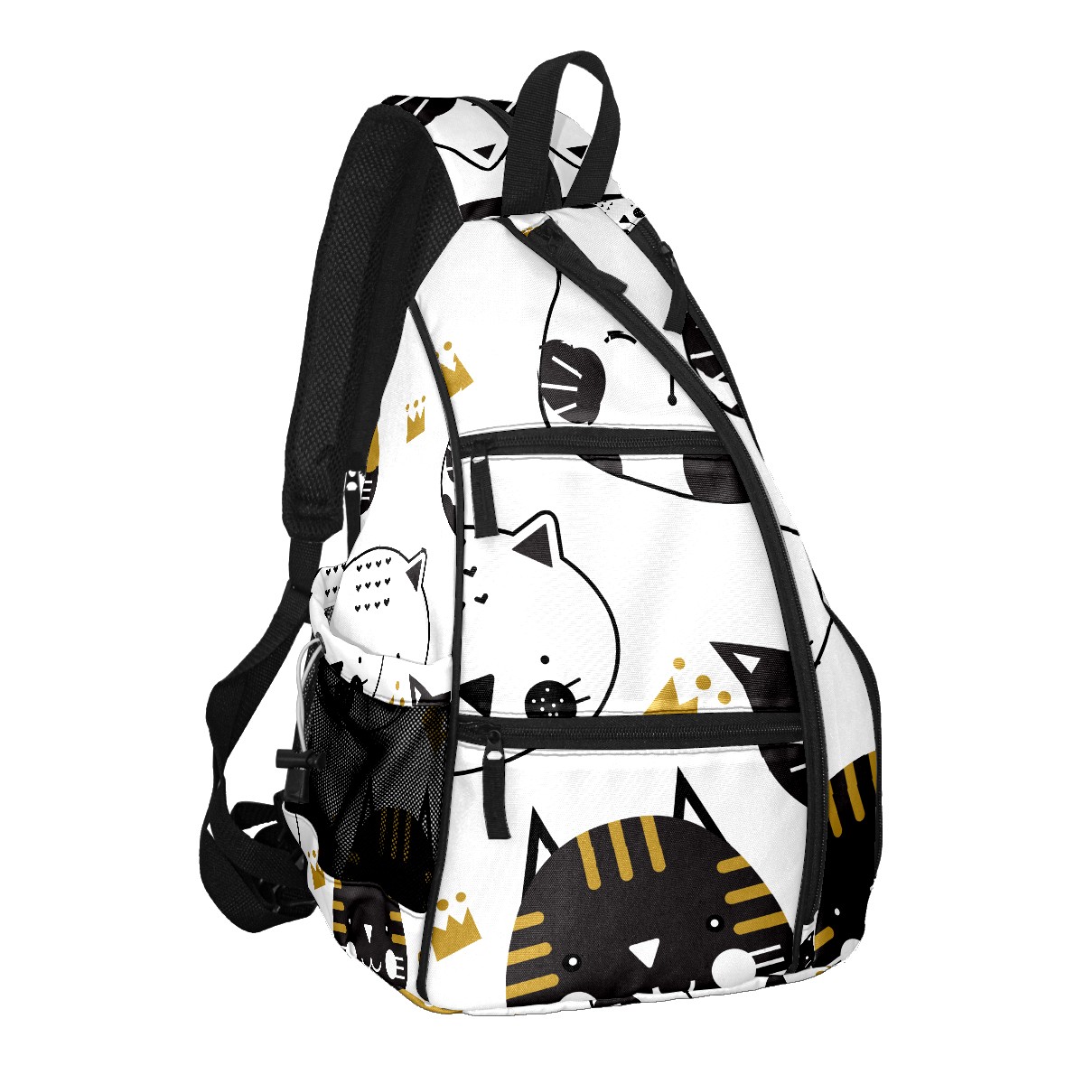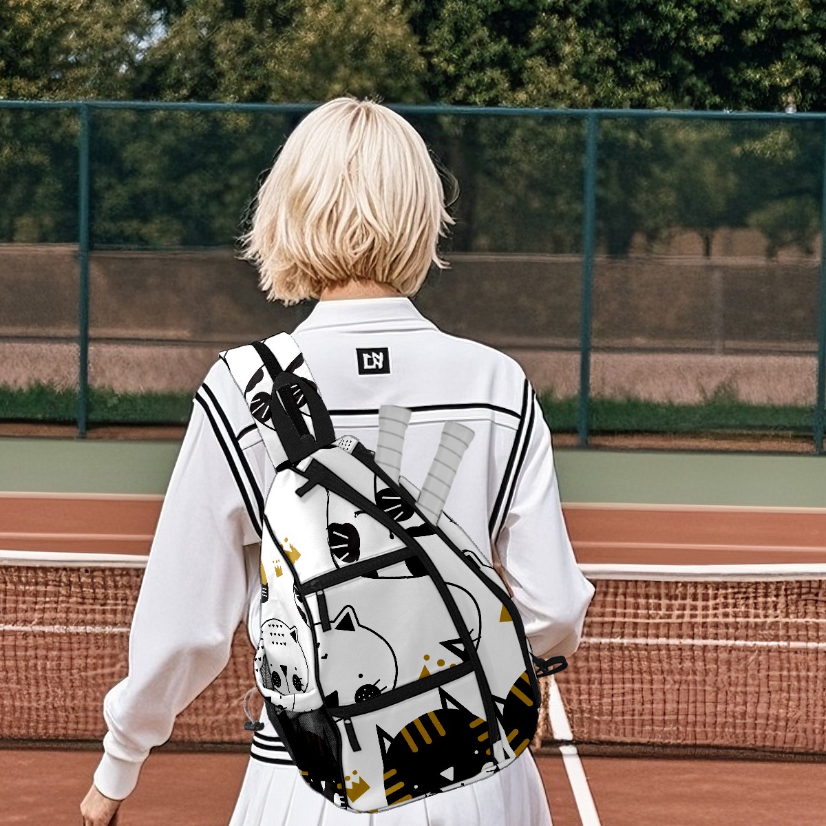 Multifunctional Pickleball Bag,Large Capacity Sports Pickleball Racket Bag, Water Bottle Holder and Fence Hook,Suitable for Both Men Women -Black And White Cats