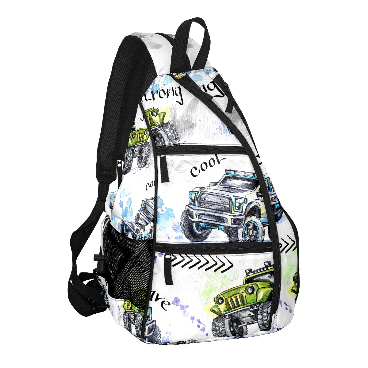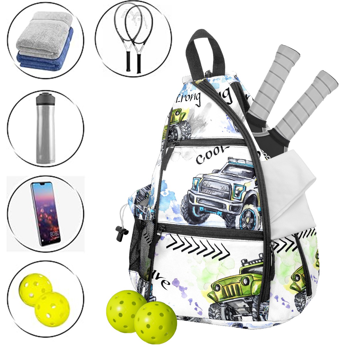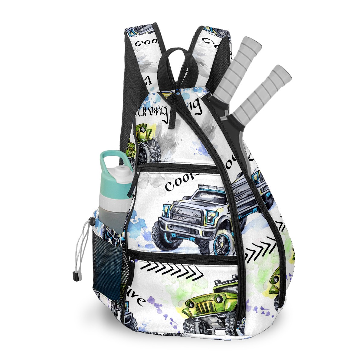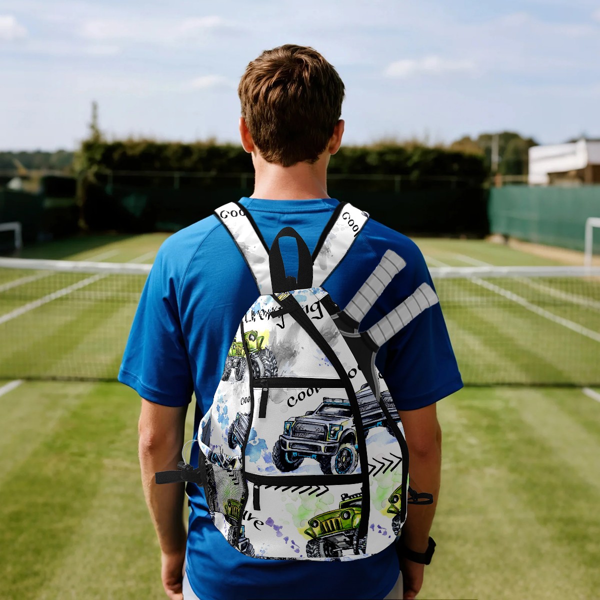 Multifunctional Pickleball Bag,Large Capacity Sports Pickleball Racket Bag, Water Bottle Holder and Fence Hook,Suitable for Both Men Women -Catoon Vehicle