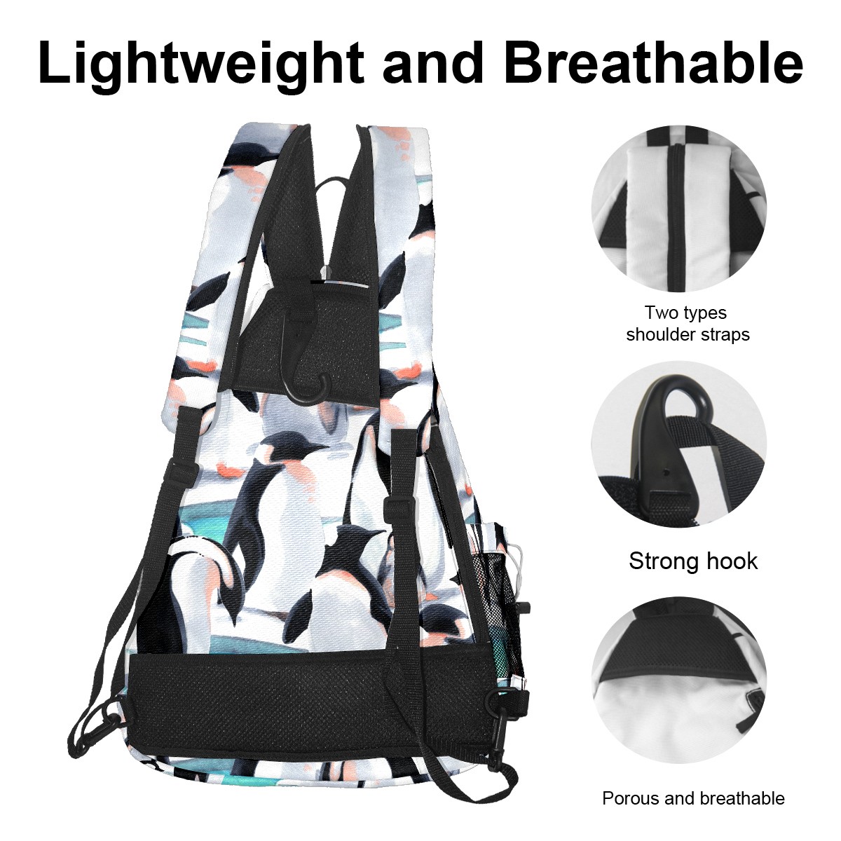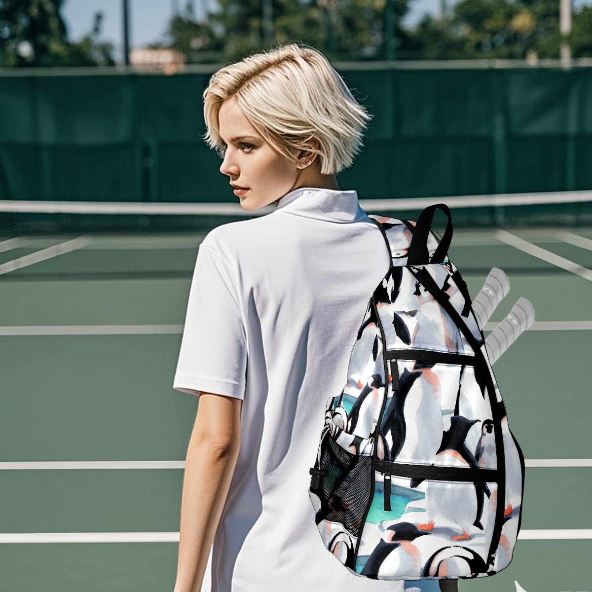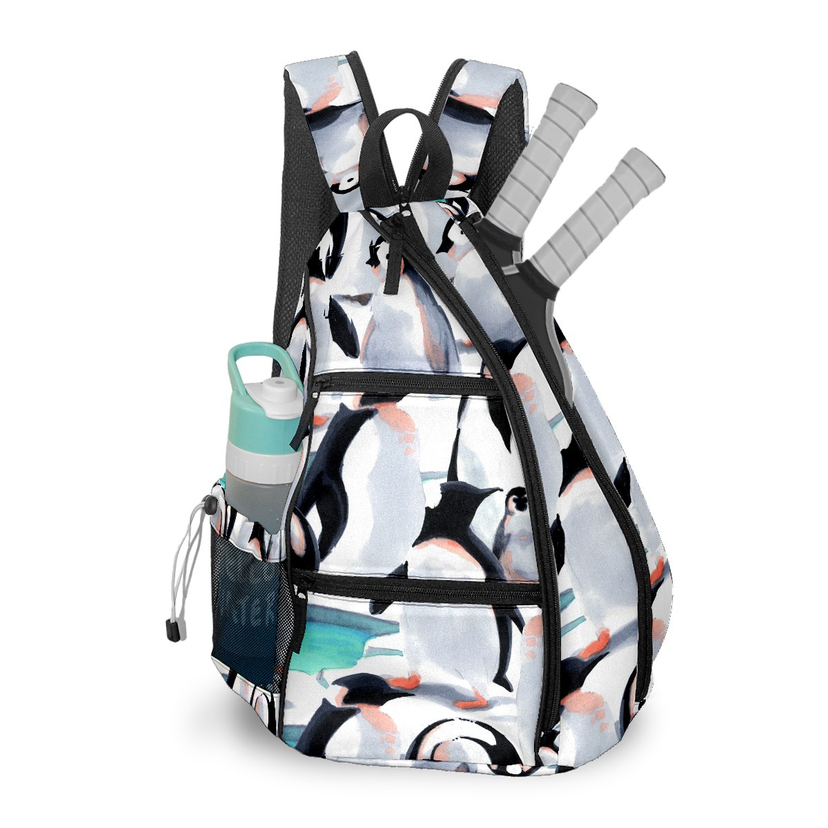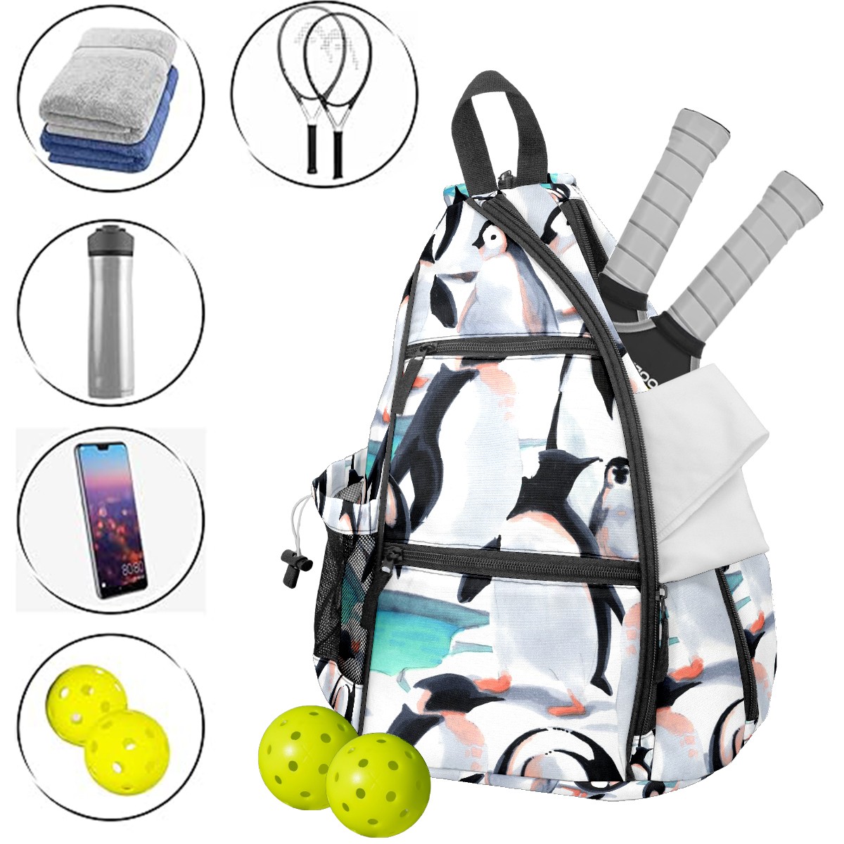 Multifunctional Pickleball Bag,Large Capacity Sports Pickleball Racket Bag, Water Bottle Holder and Fence Hook,Suitable for Both Men Women -Cartooon Penguin