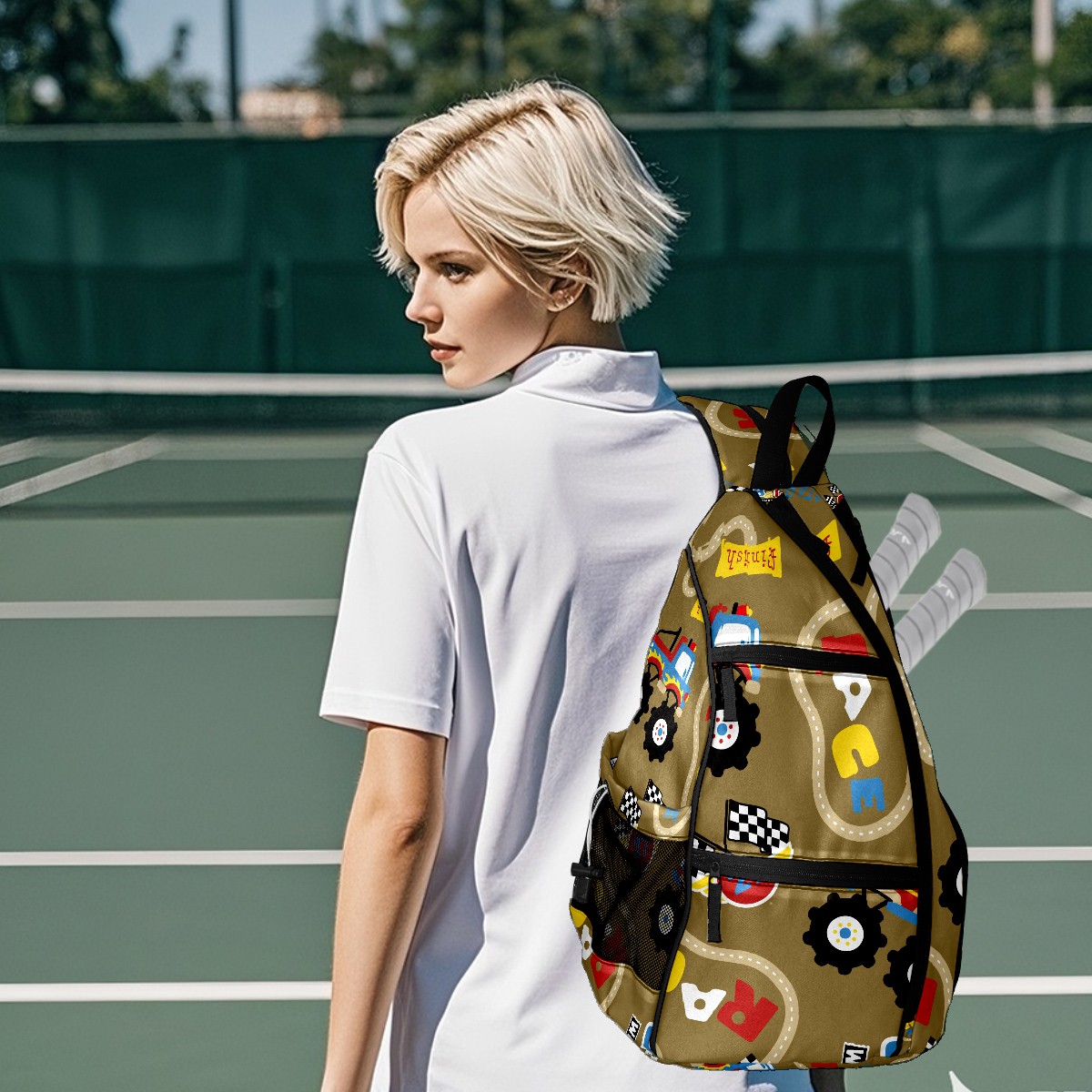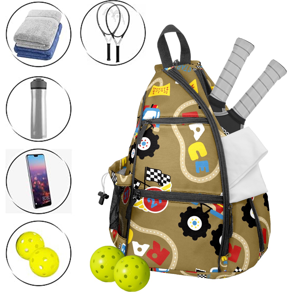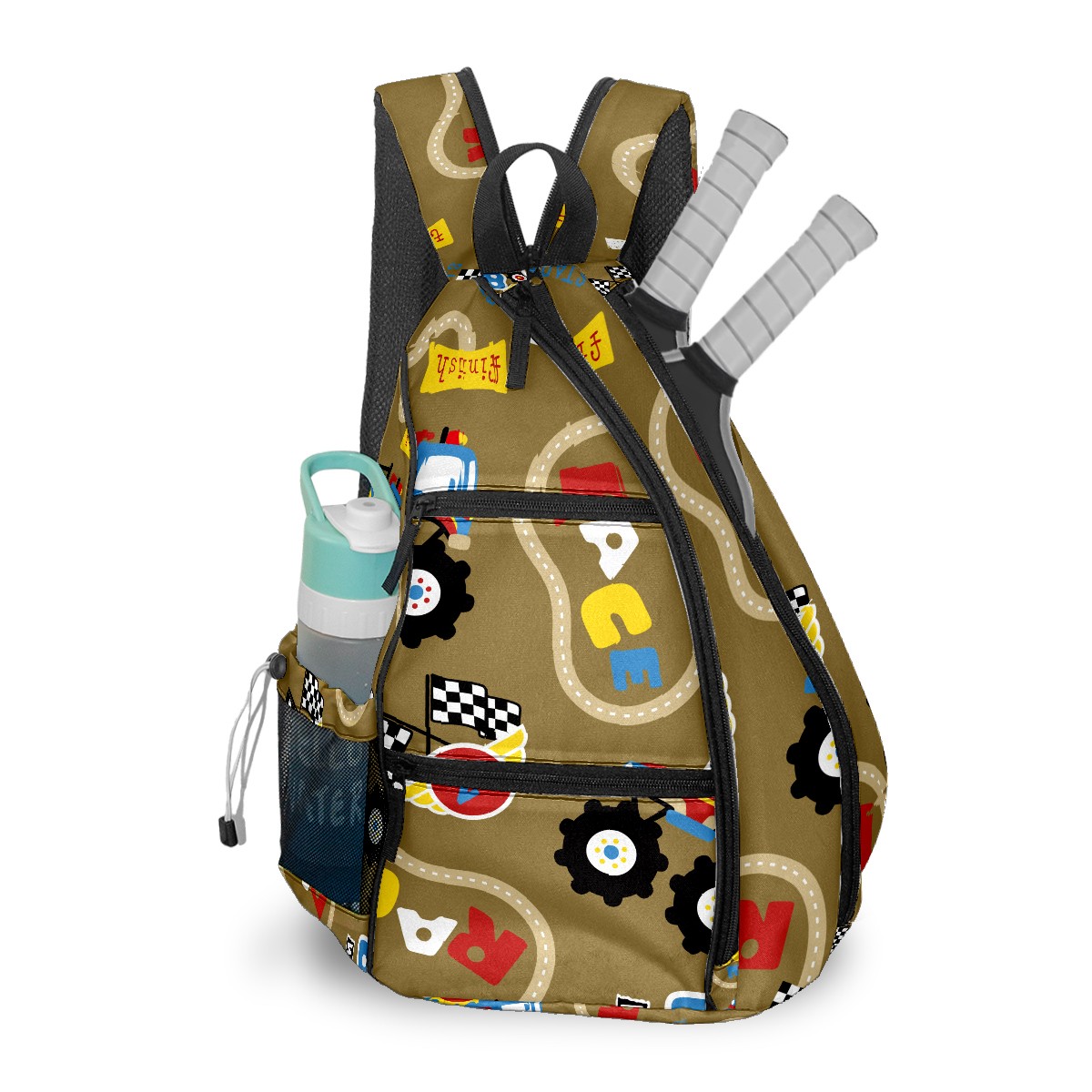 Multifunctional Pickleball Bag,Large Capacity Sports Pickleball Racket Bag, Water Bottle Holder and Fence Hook,Suitable for Both Men Women -Cartoon Race Car