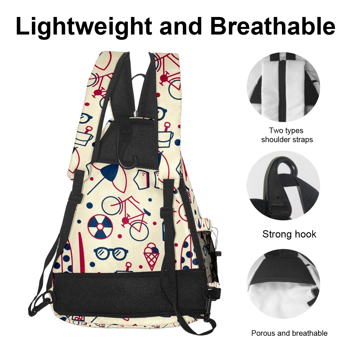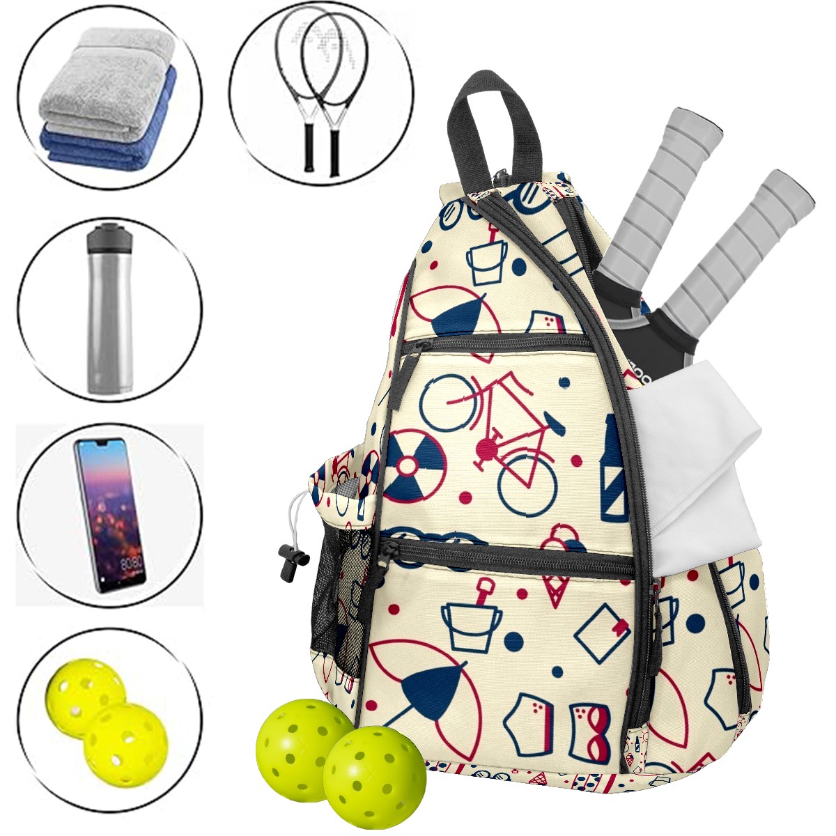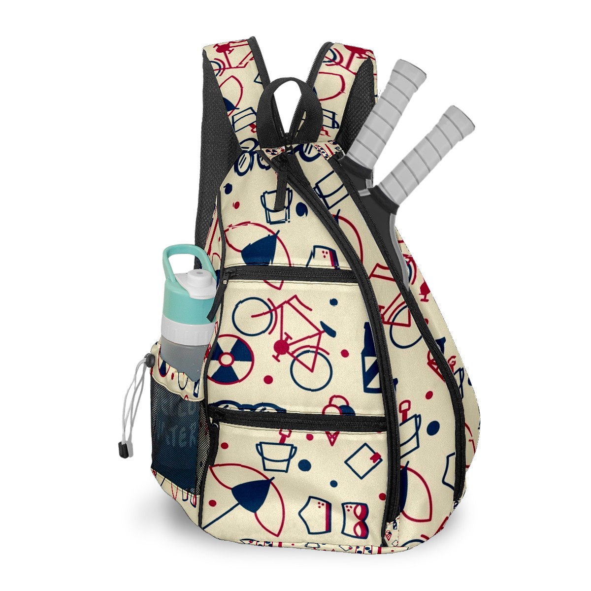 Multifunctional Pickleball Bag,Large Capacity Sports Pickleball Racket Bag, Water Bottle Holder and Fence Hook,Suitable for Both Men Women -Retro Pattern