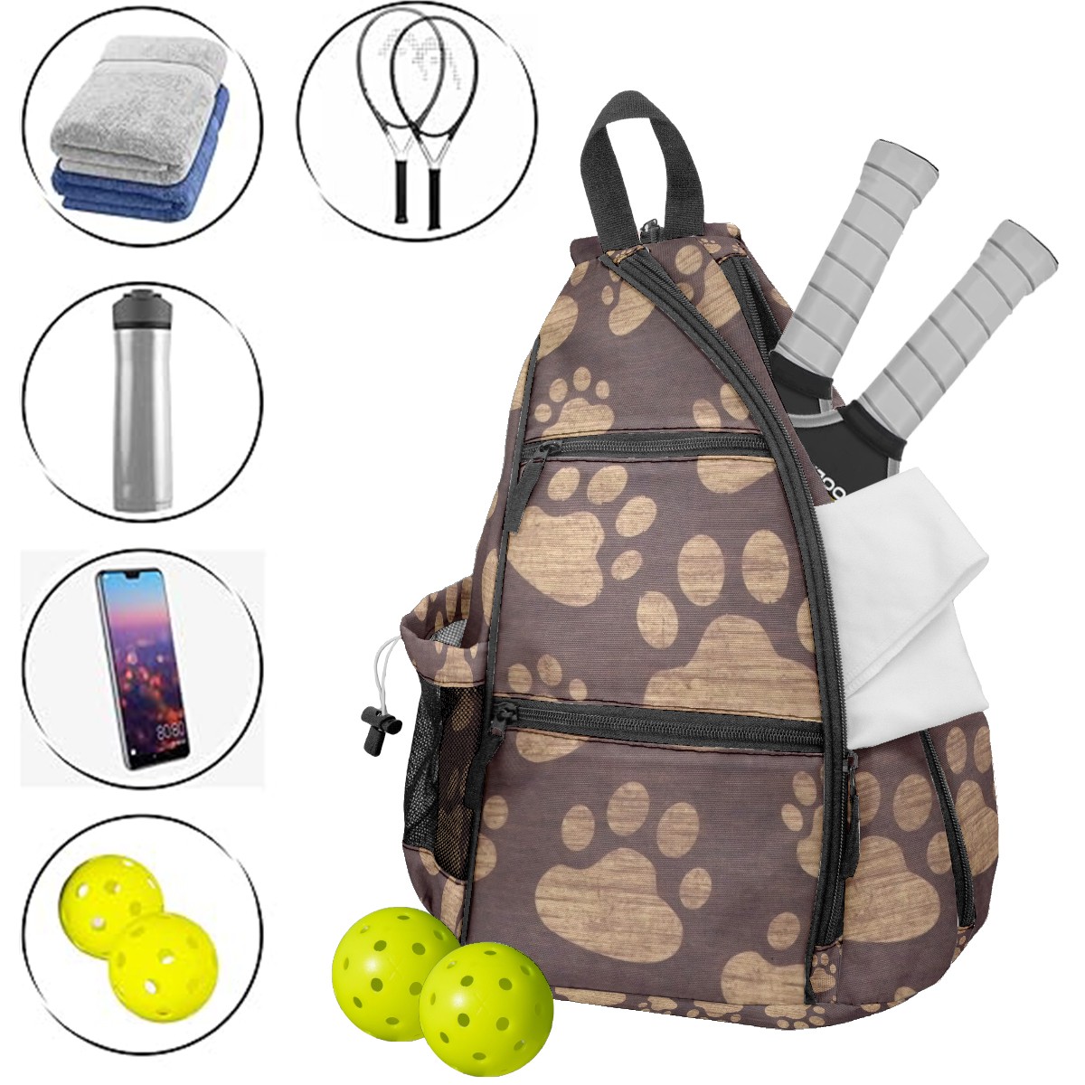 Multifunctional Pickleball Bag,Large Capacity Sports Pickleball Racket Bag, Water Bottle Holder and Fence Hook,Suitable for Both Men Women -Paw Patterns