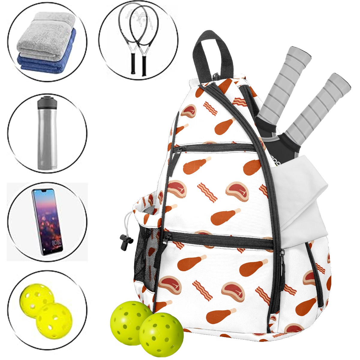 Multifunctional Pickleball Bag,Large Capacity Sports Pickleball Racket Bag, Water Bottle Holder and Fence Hook,Suitable for Both Men Women -Meat Pattern
