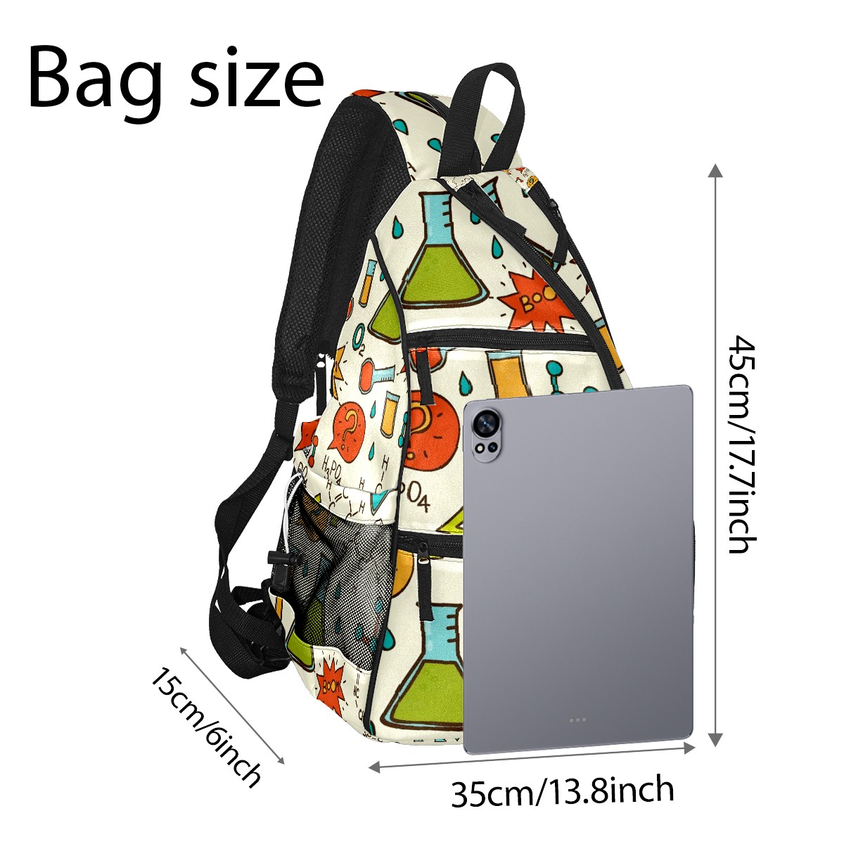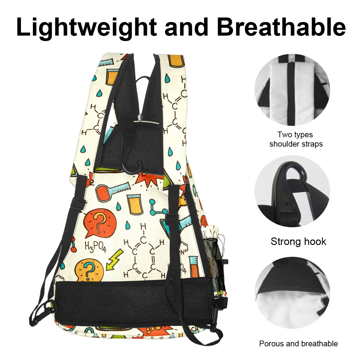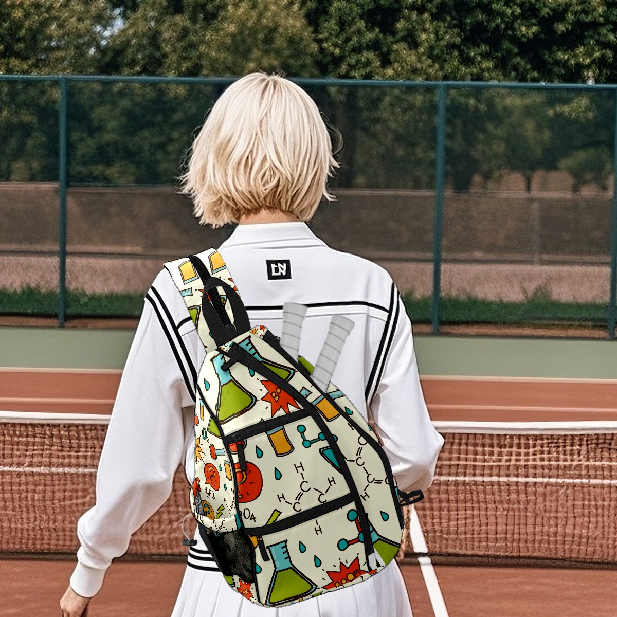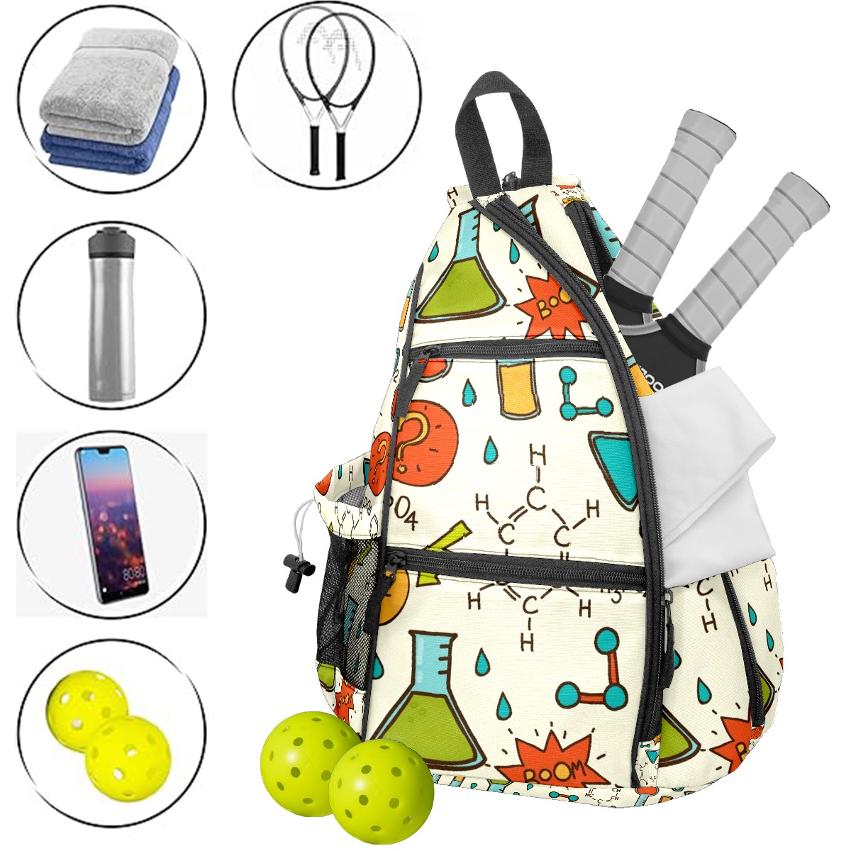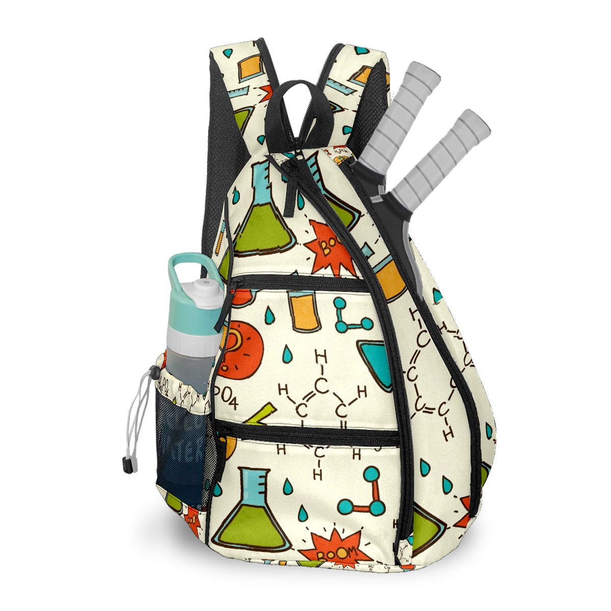 Multifunctional Pickleball Bag,Large Capacity Sports Pickleball Racket Bag, Water Bottle Holder and Fence Hook,Suitable for Both Men Women -Cute Chemistry Pattern