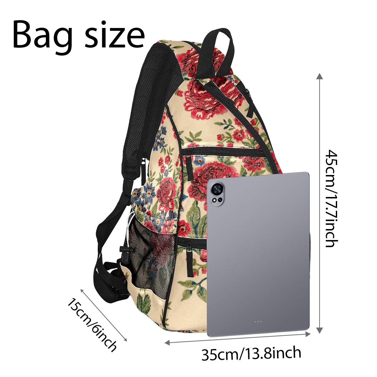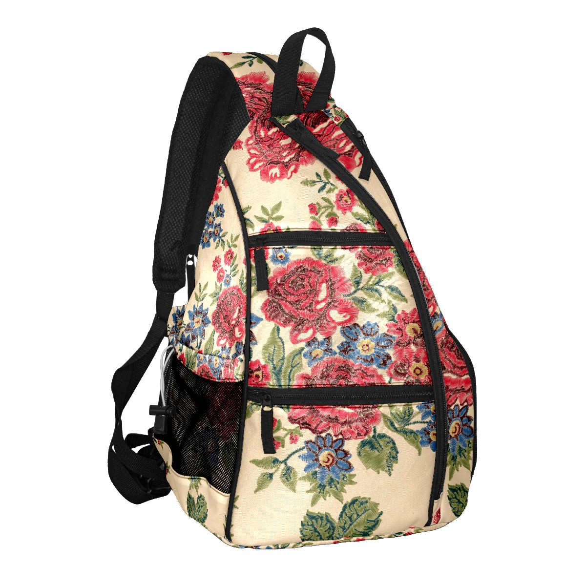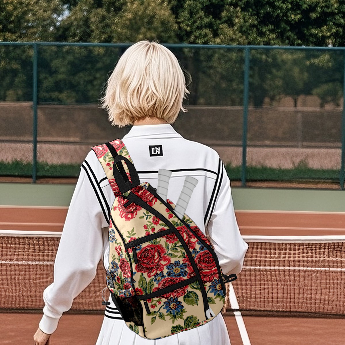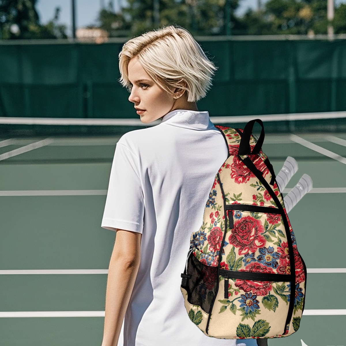 Multifunctional Pickleball Bag,Large Capacity Sports Pickleball Racket Bag, Water Bottle Holder and Fence Hook,Suitable for Both Men Women -Blue And Red Flower
