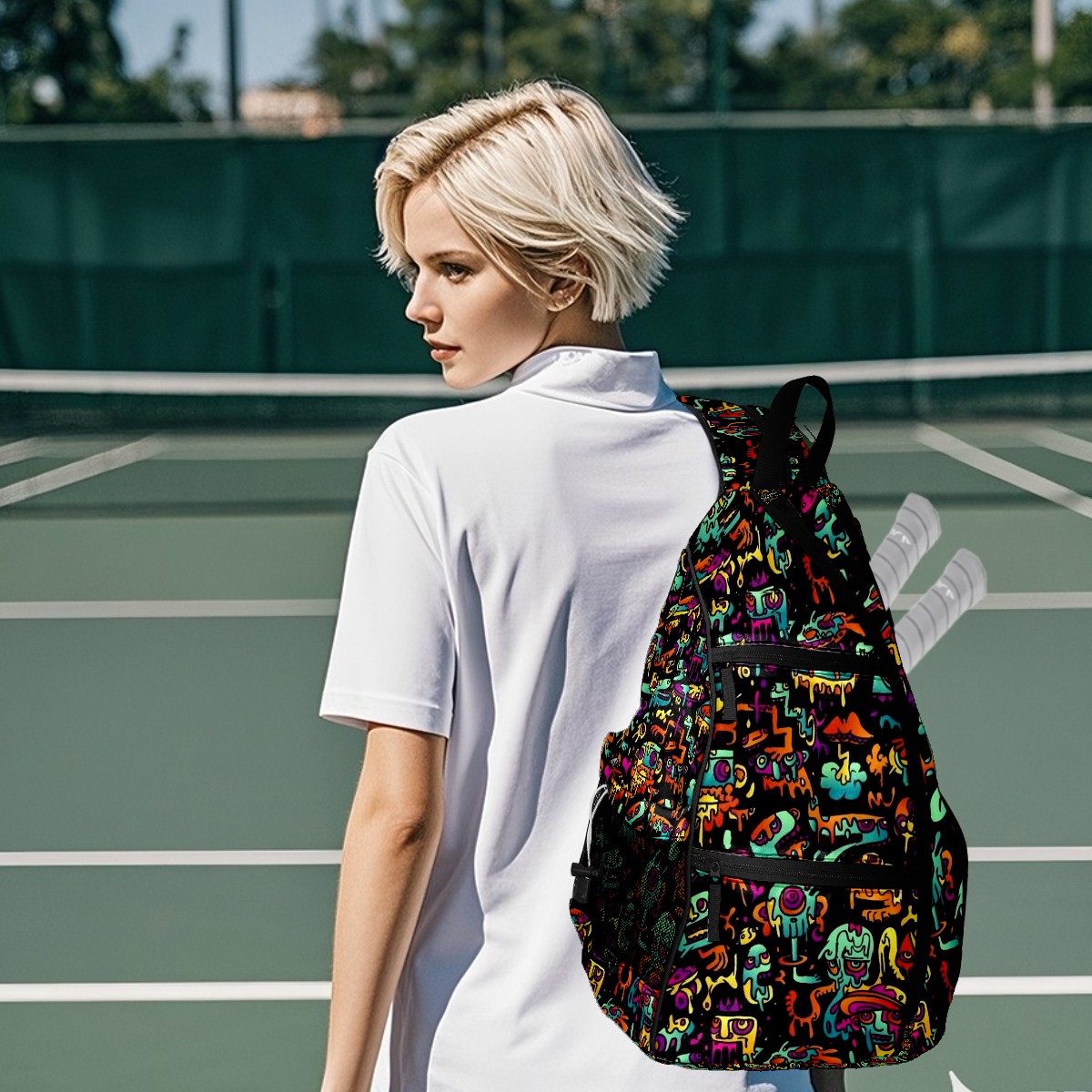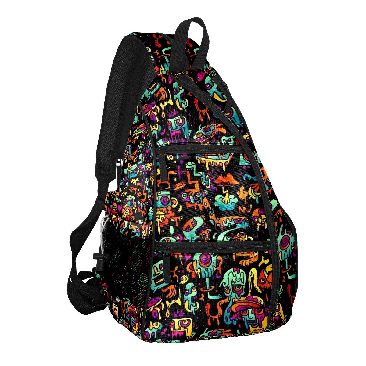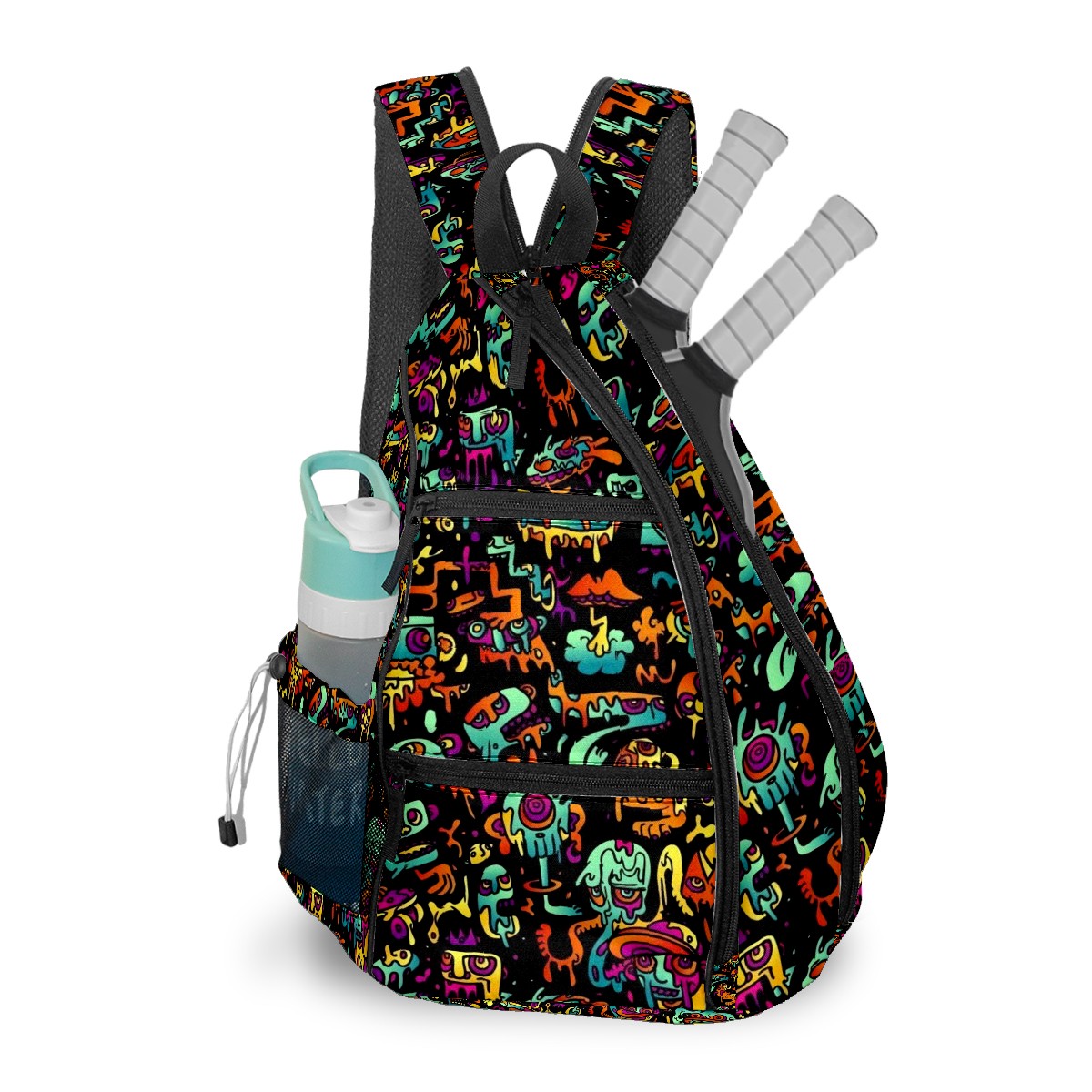 Multifunctional Pickleball Bag,Large Capacity Sports Pickleball Racket Bag, Water Bottle Holder and Fence Hook,Suitable for Both Men Women -Monster Patterns