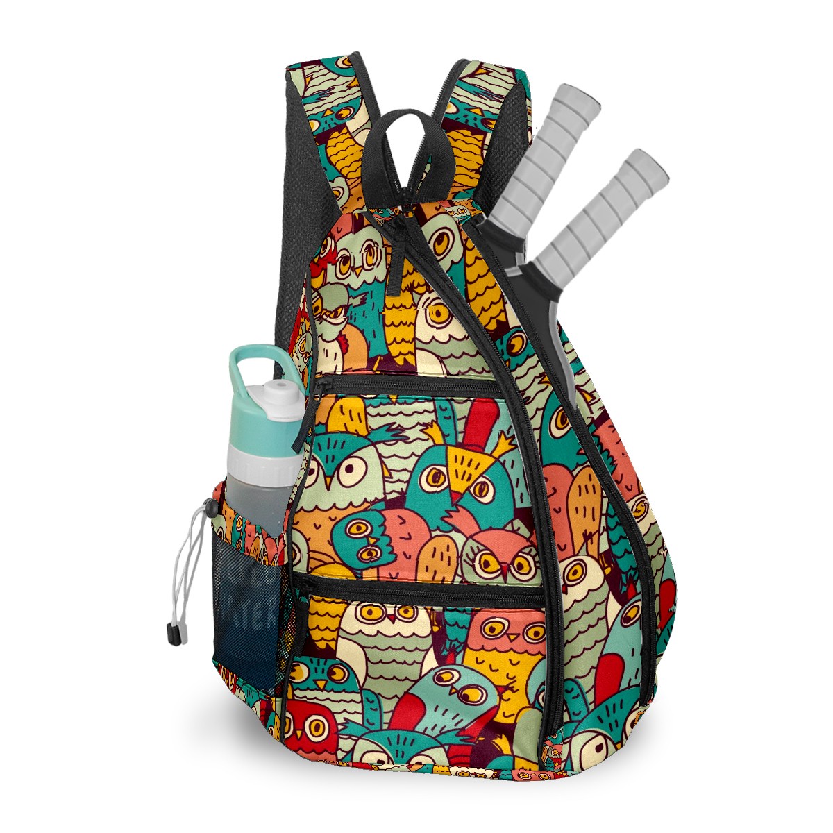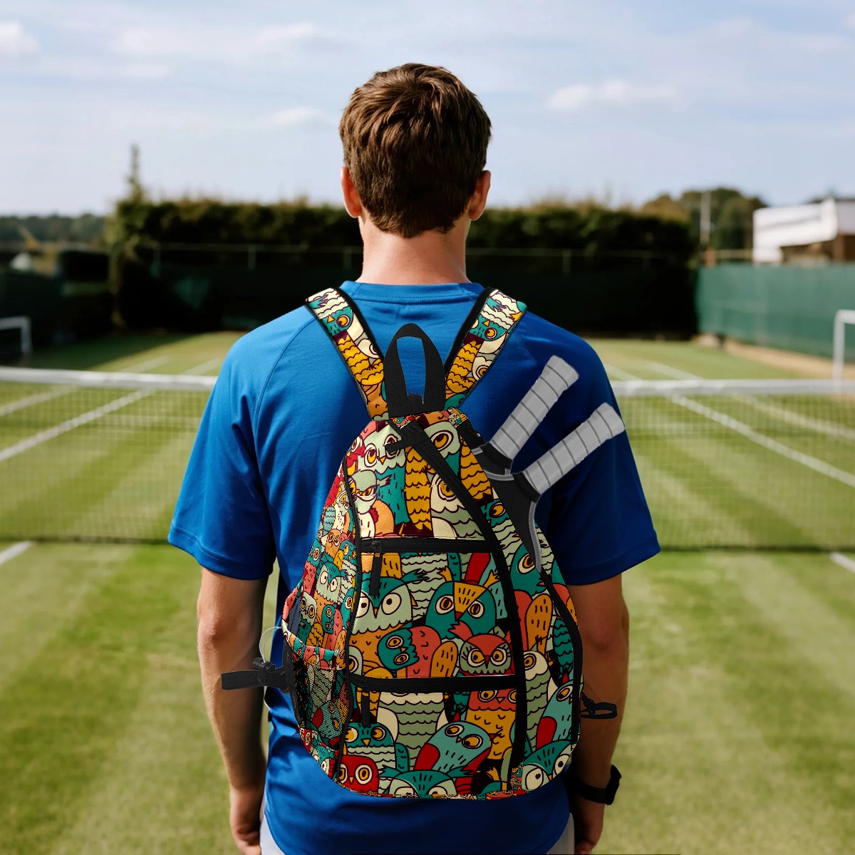 Multifunctional Pickleball Bag,Large Capacity Sports Pickleball Racket Bag, Water Bottle Holder and Fence Hook,Suitable for Both Men Women -Beautiful Owl Pattern