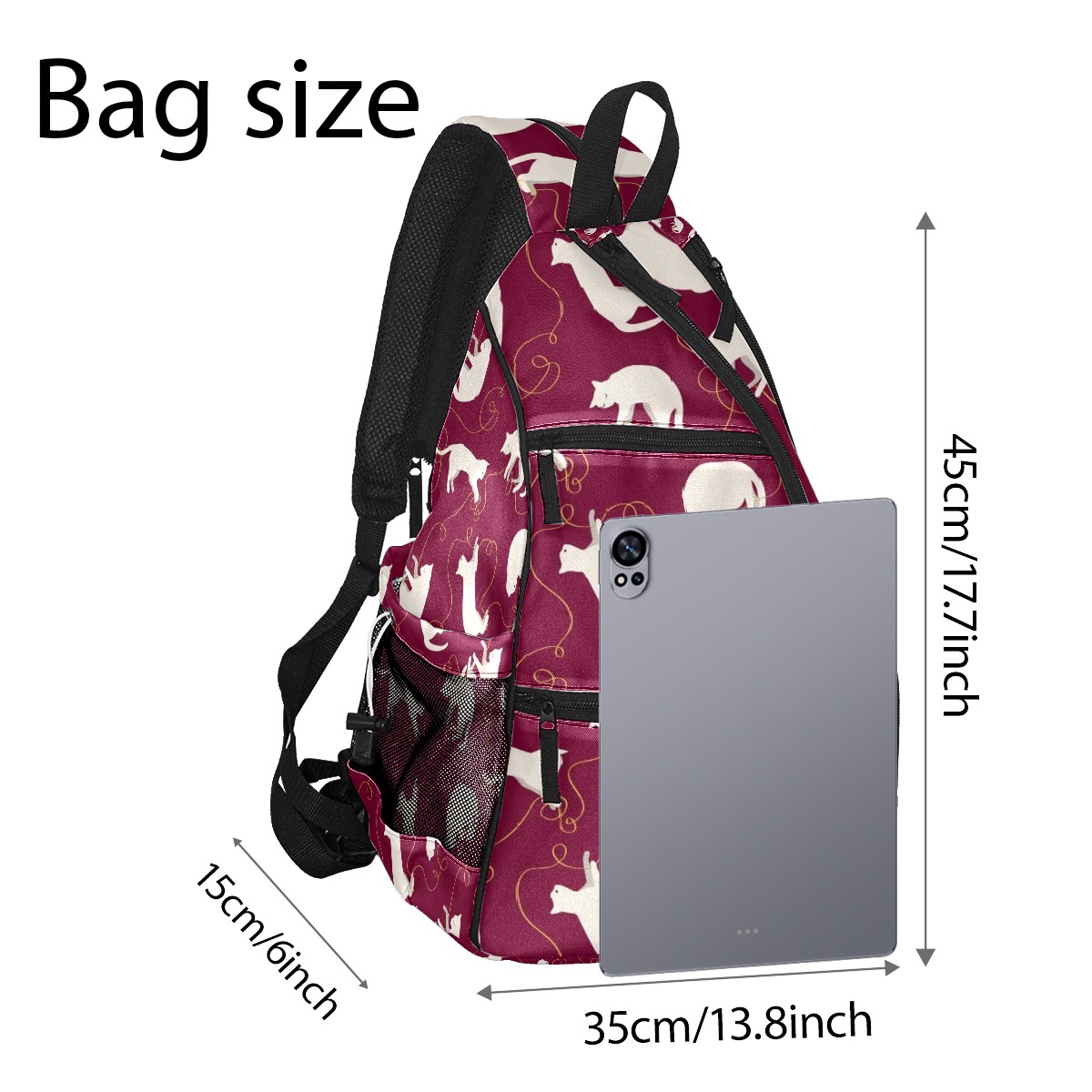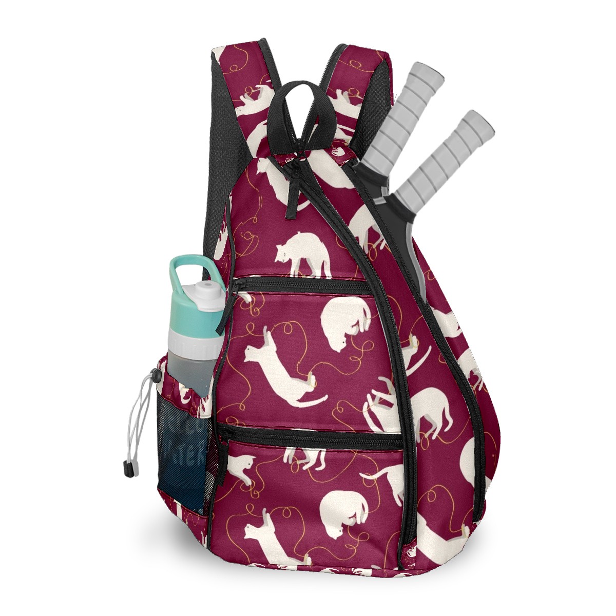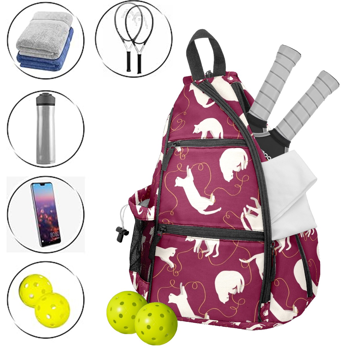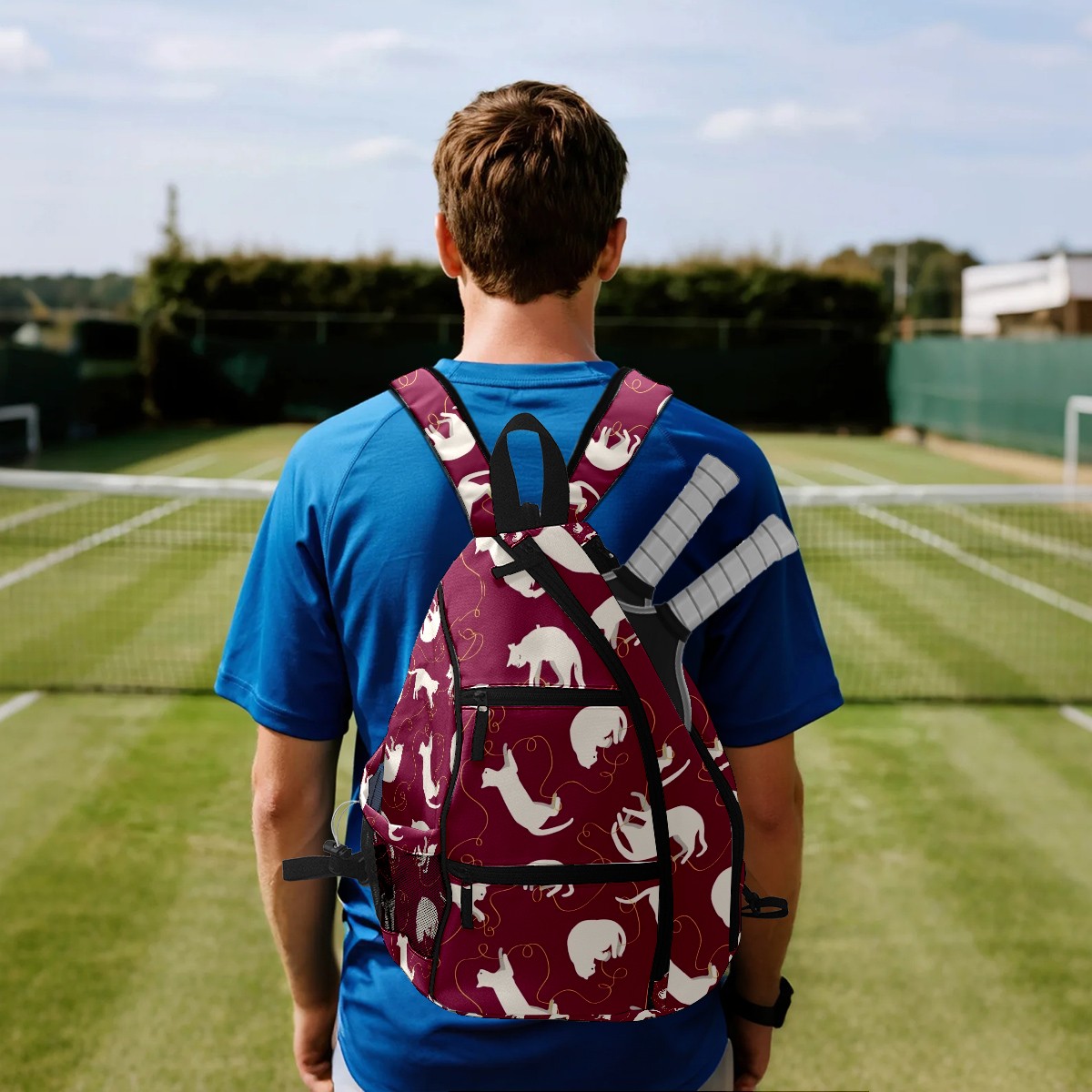 Multifunctional Pickleball Bag,Large Capacity Sports Pickleball Racket Bag, Water Bottle Holder and Fence Hook,Suitable for Both Men Women -Cat Pattern