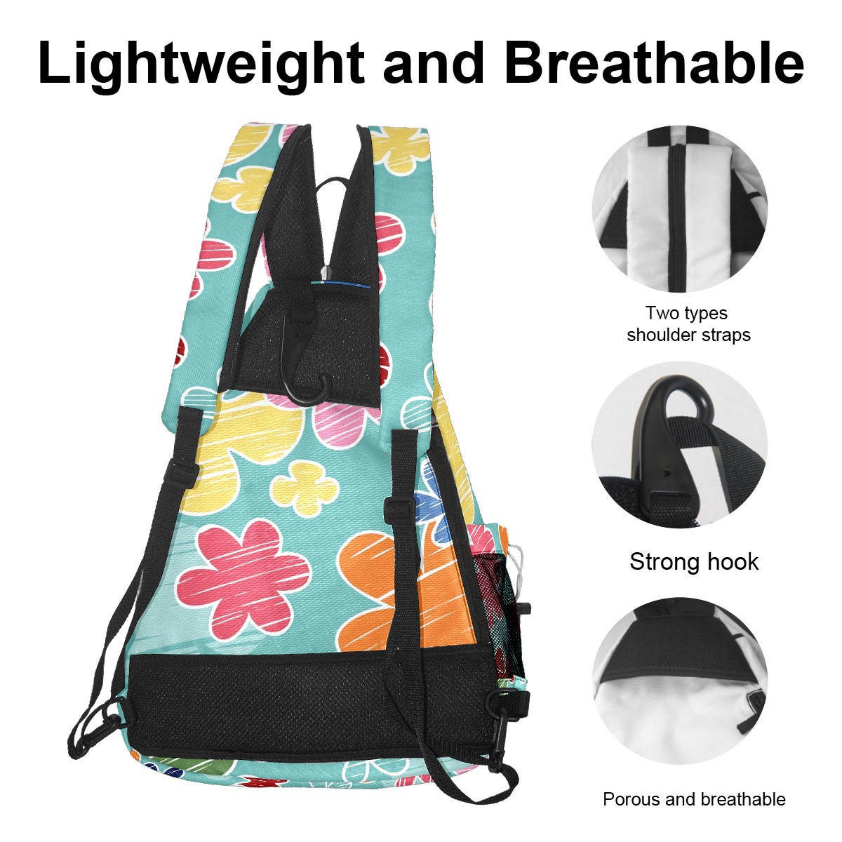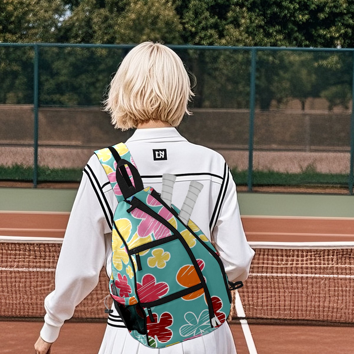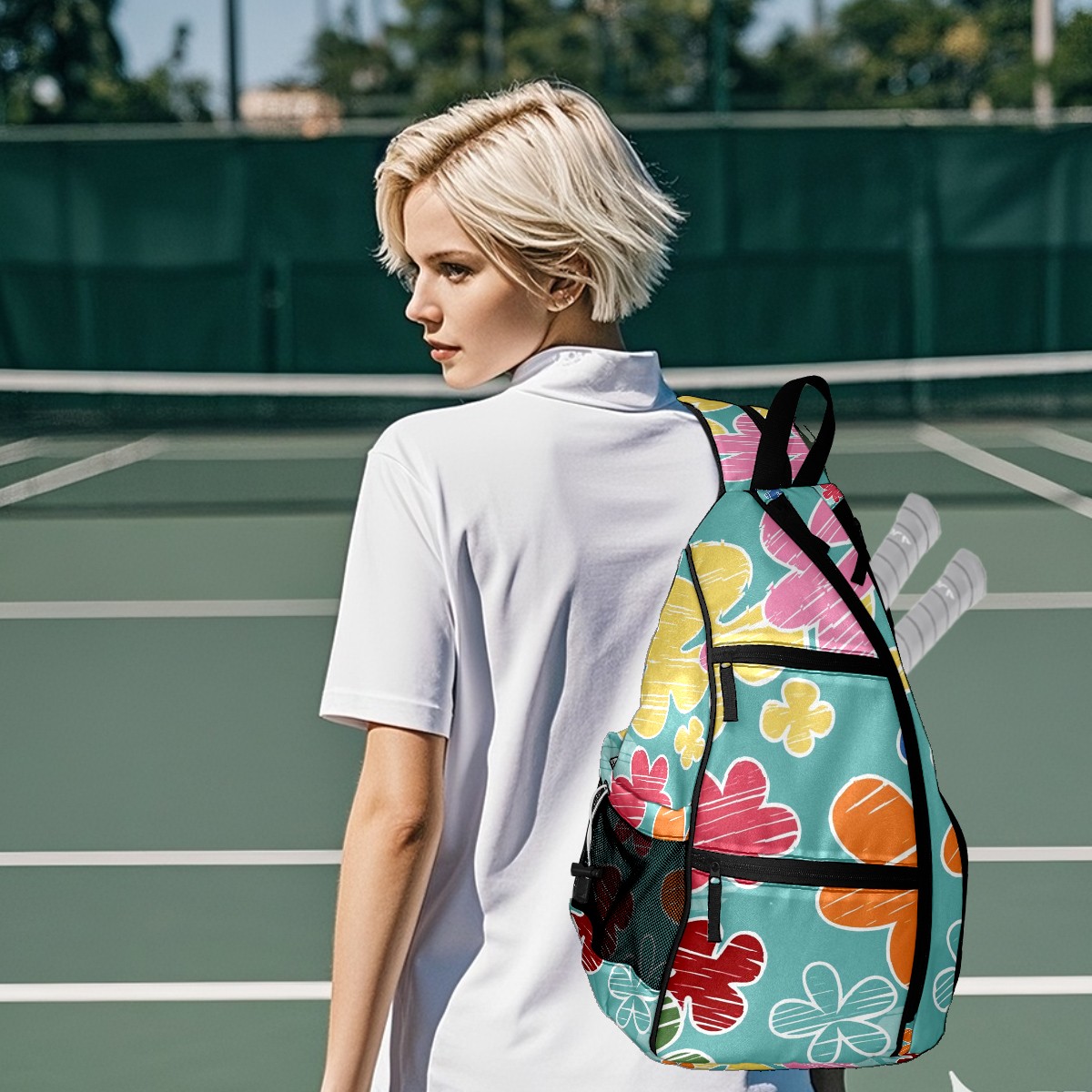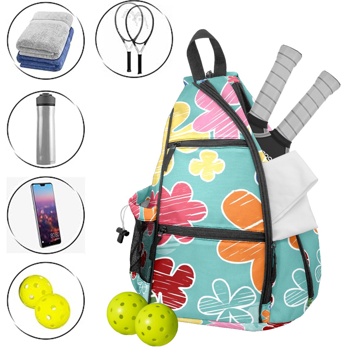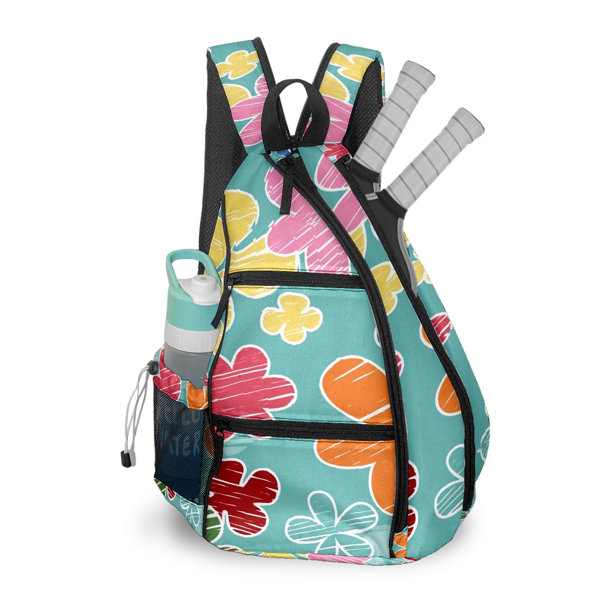 Multifunctional Pickleball Bag,Large Capacity Sports Pickleball Racket Bag, Water Bottle Holder and Fence Hook,Suitable for Both Men Women -Cartoon Flowers