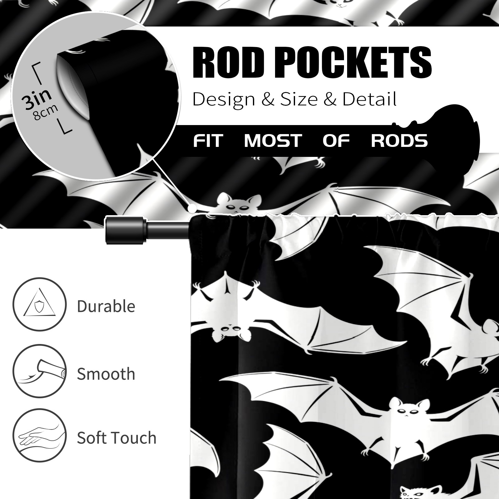 Шторы-панно для дома, декоративные драпировки для гостиной и спальни, легкие и прочные, Bat Silhouettes