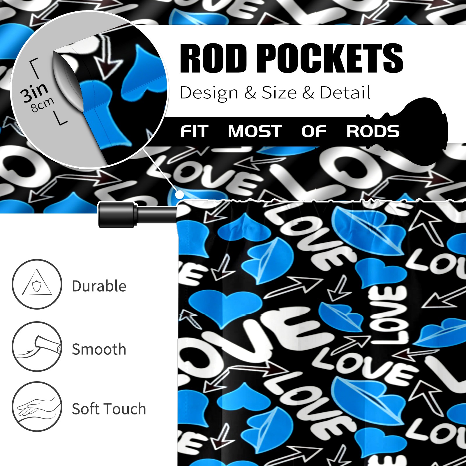 Шторы-панно для дома, декоративные драпировки для гостиной и спальни, легкие и прочные, Cool LOVE Blue